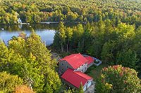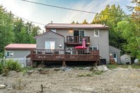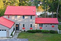 Maine lakefront property for sale in Lincoln, Maine. This home has an attached 2 car garage and sits on 1.3+/- acres with frontage on Upper Cold Stream Pond. On the first floor is a primary bedroom suite with a gas fireplace, jetted tub, walk-in shower