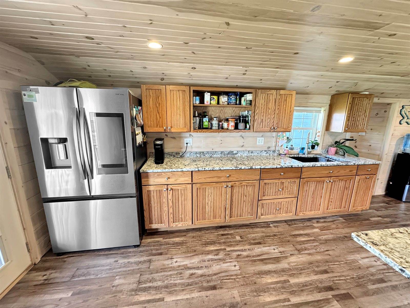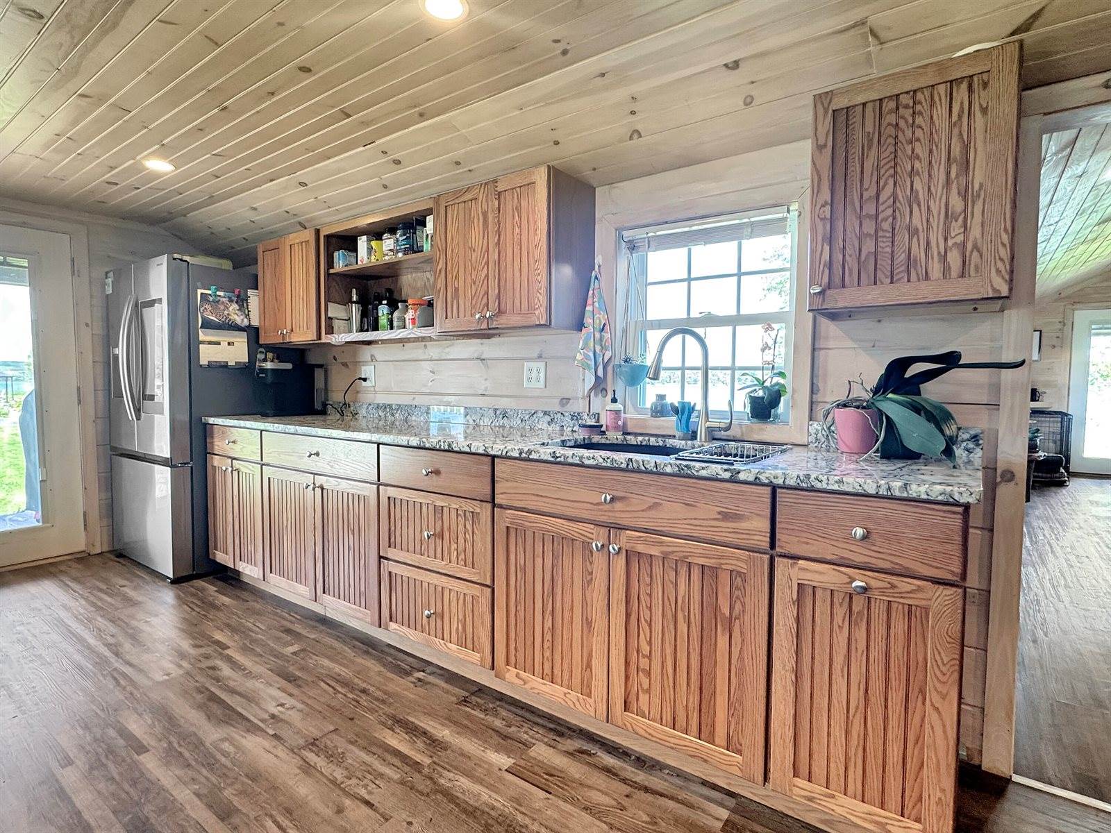 of lake life. There's also a handy extra storage area for all your gear. A major bonus: a brand new garage built in 2023—completely finished inside and out, with an unfinished upper level that's a blank canvas just waiting for your personal touch. Create a