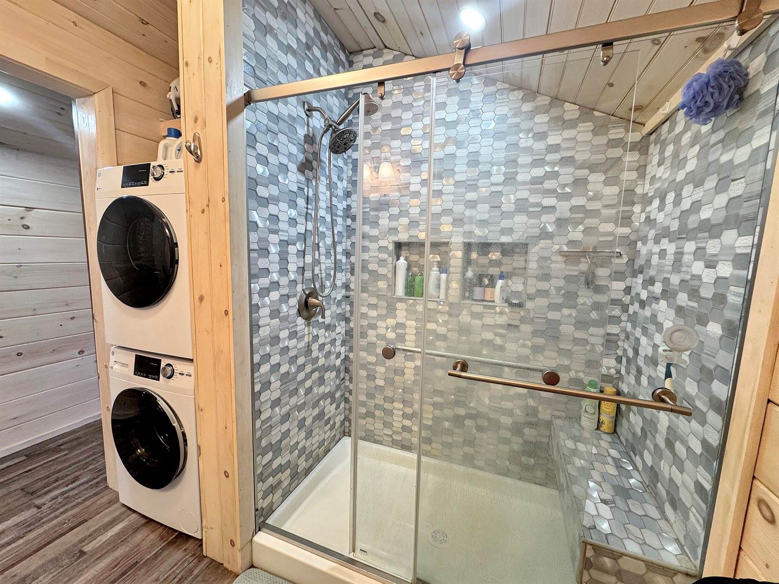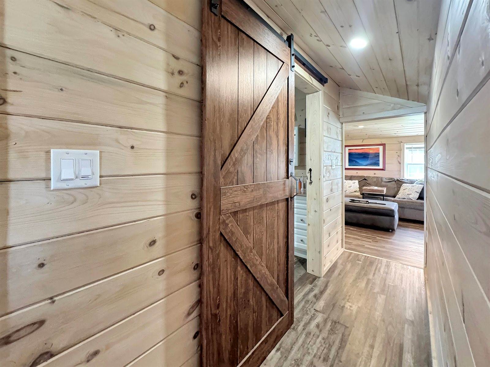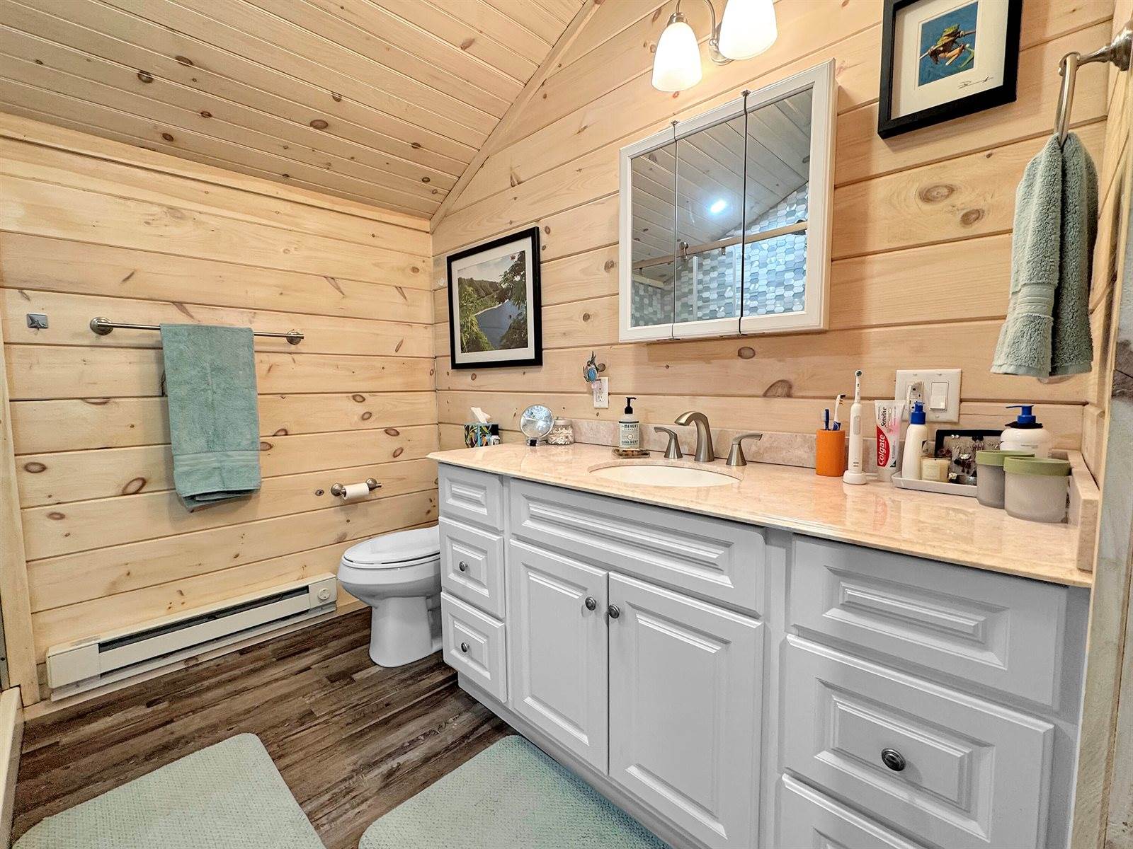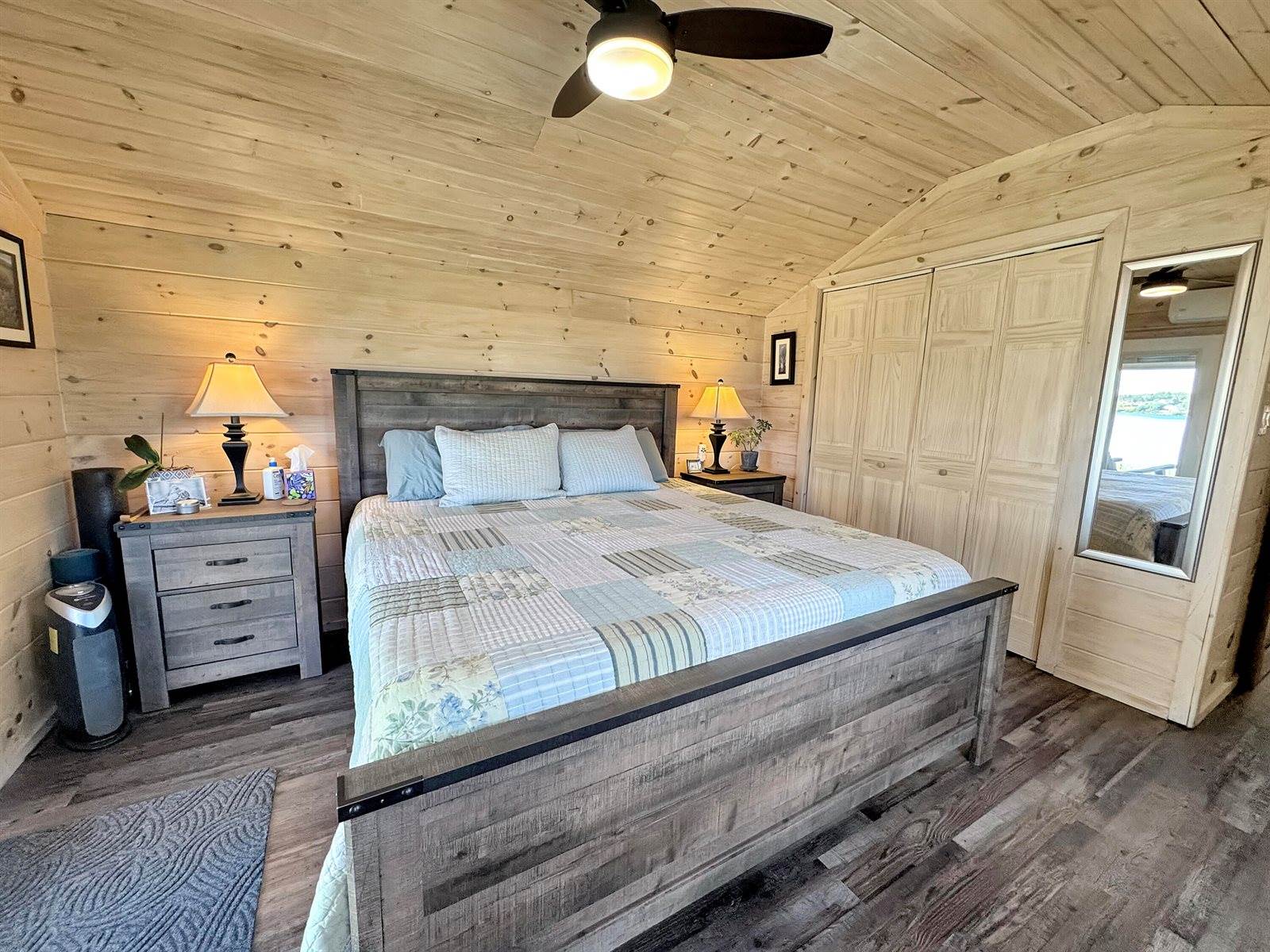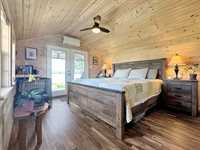 views, peace, and privacy with direct access to Long Lake's waters. Step inside the beautifully maintained camp and fall in love with the lake-facing bedroom that wakes up to water views, a spacious bathroom featuring a custom-tiled walk-in shower, and an