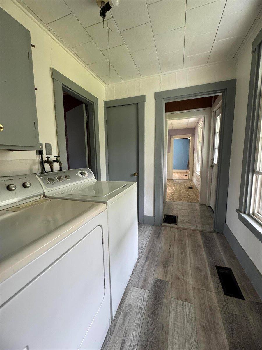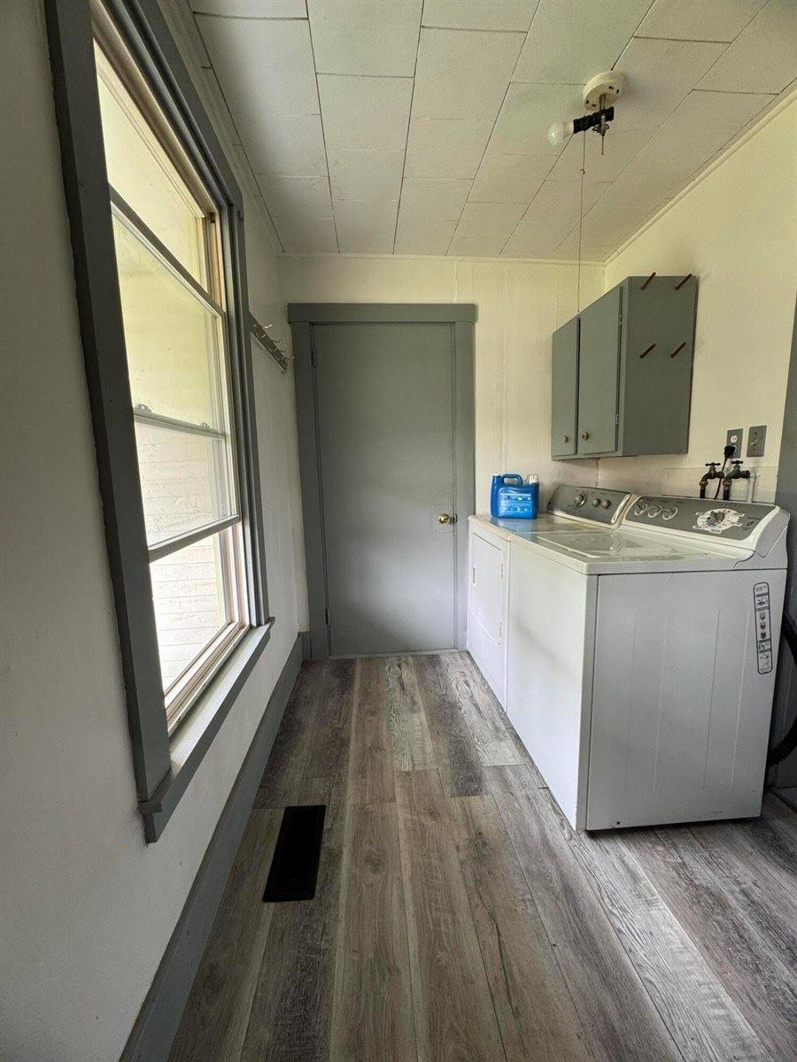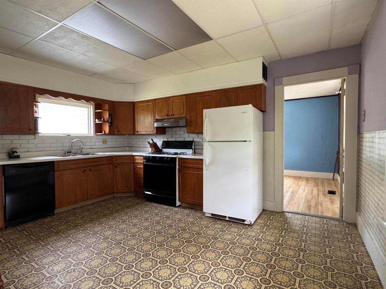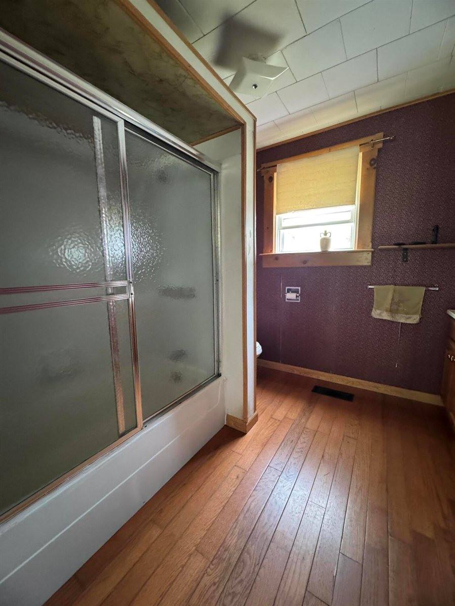 space and versatility. Inside you will find a laundry area, full bathroom, kitchen, dining room and large living room with a fireplace. Upstairs there are three bedrooms and in the basement, there is a partially finished room which would be perfect for a toy