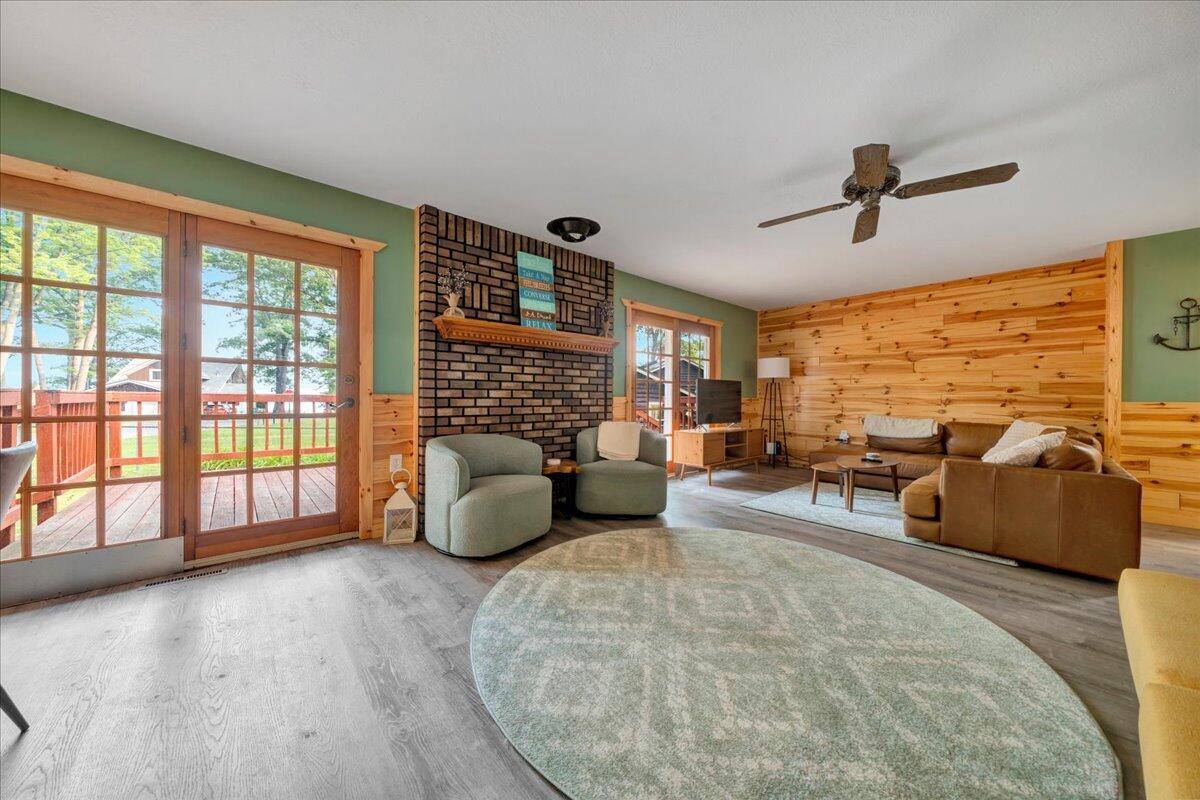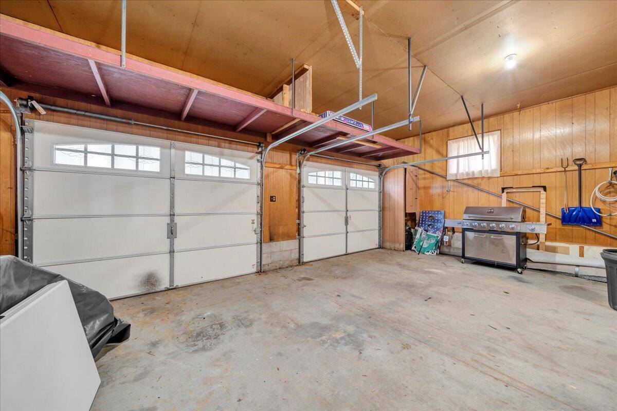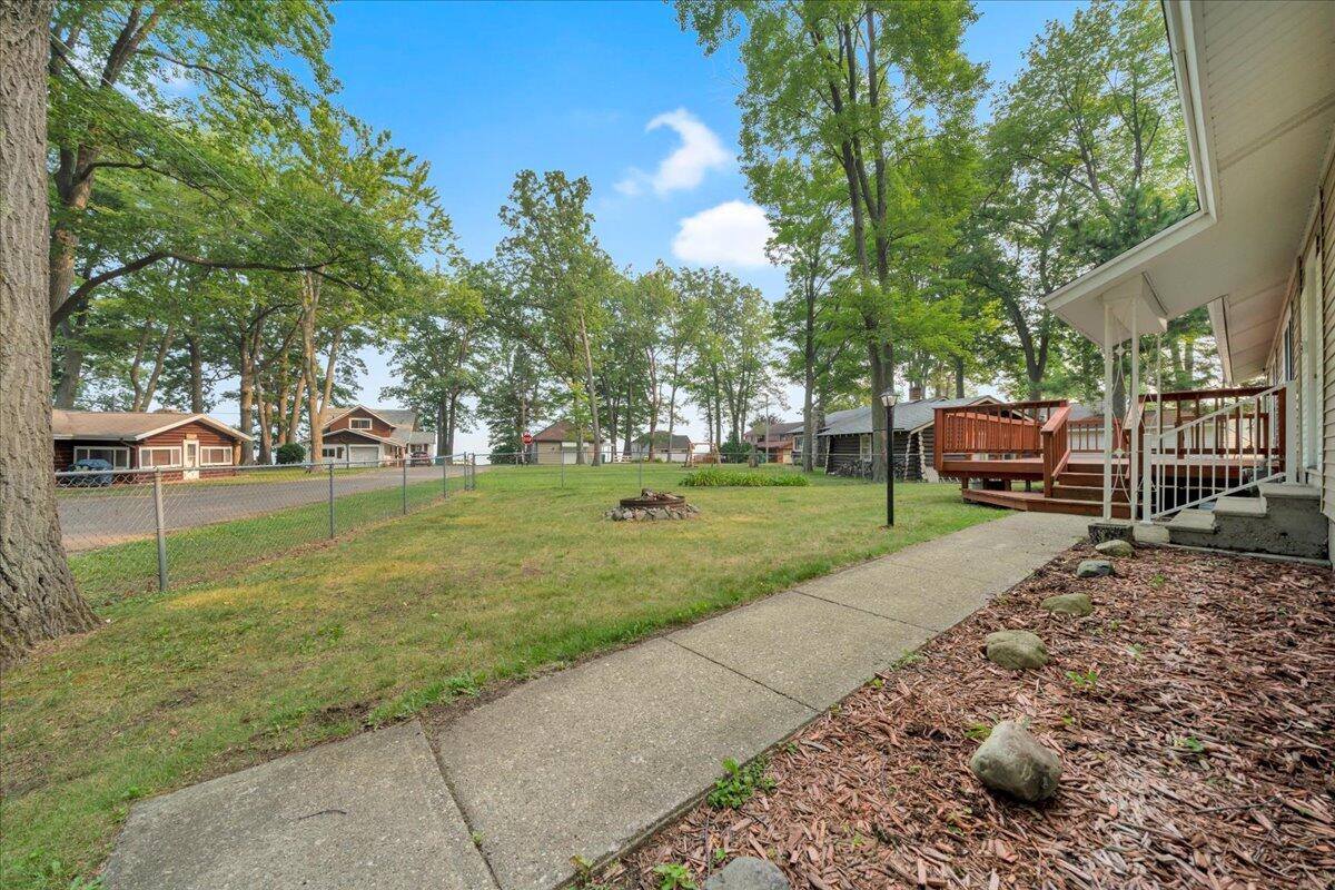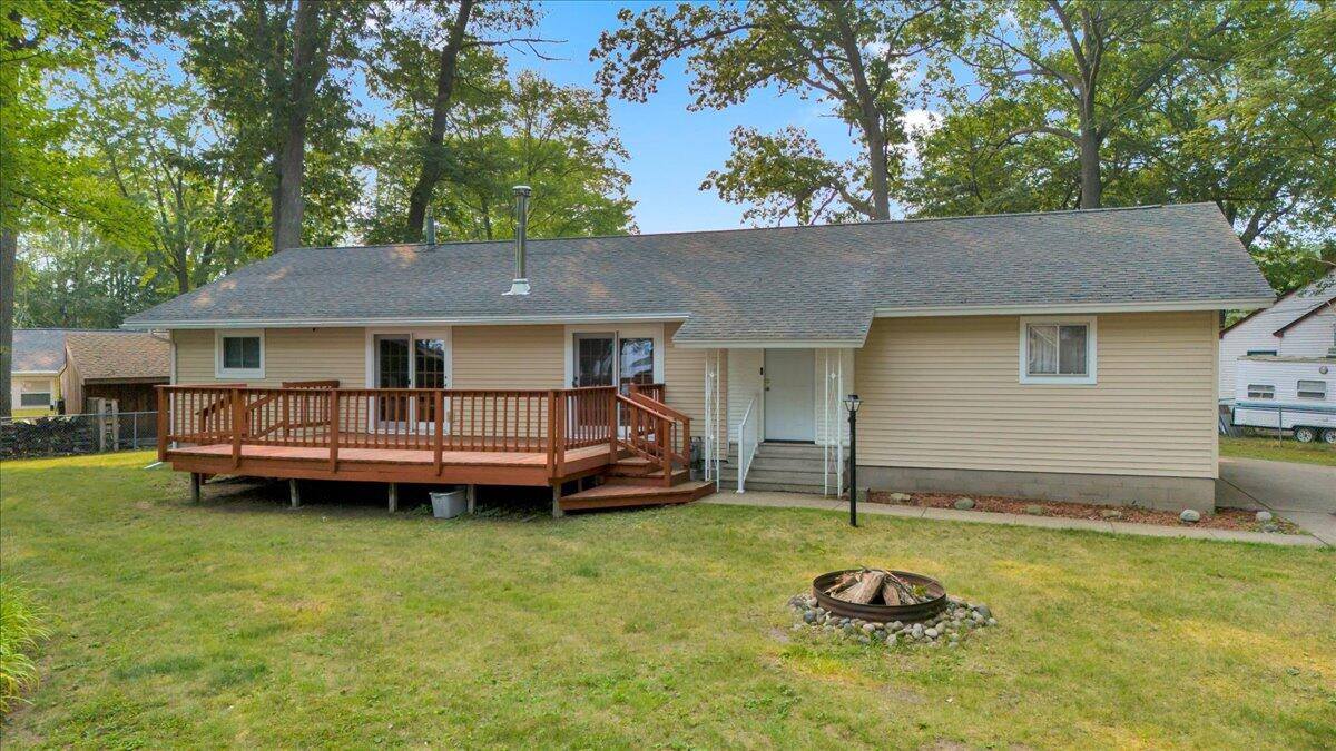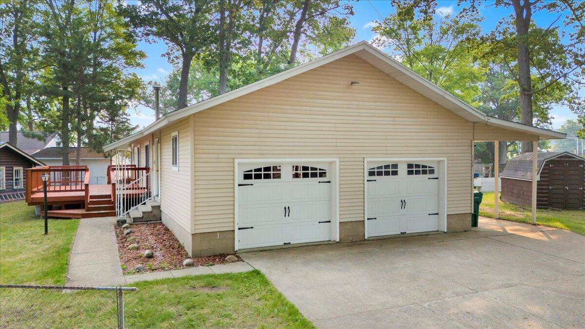 as a cottage, year-round home, or investment property. The oversized 2.5-car garage offers plenty of room for all your toys, plus extra parking space. An expansive deck with lake views, and a fenced yard with fire pit—perfect for peaceful summer evenings by