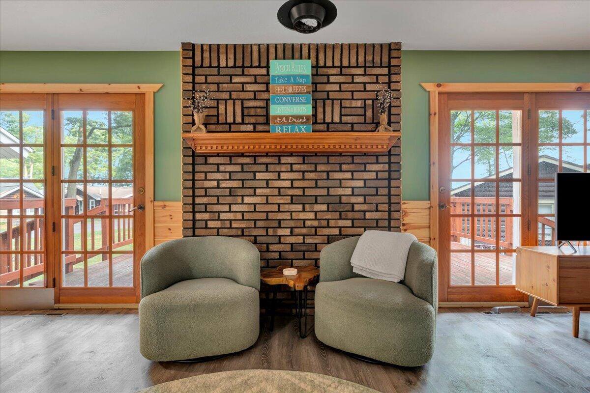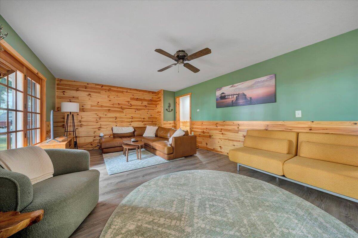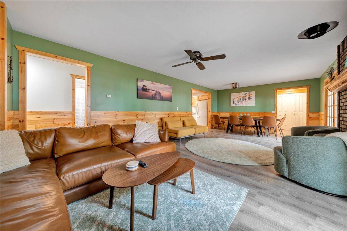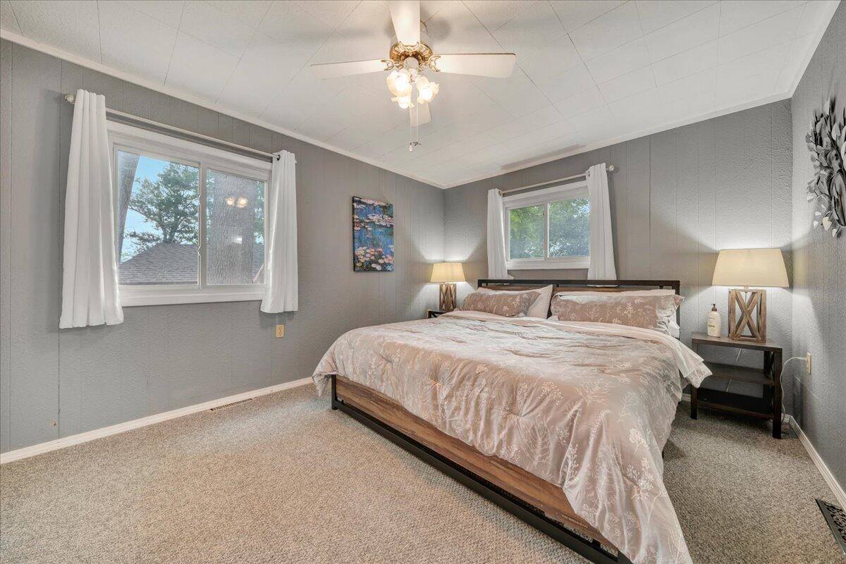 as a cottage, year-round home, or investment property. The oversized 2.5-car garage offers plenty of room for all your toys, plus extra parking space. An expansive deck with lake views, and a fenced yard with fire pit—perfect for peaceful summer evenings by