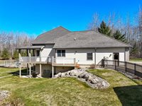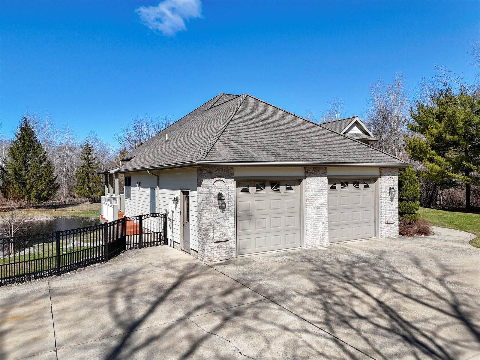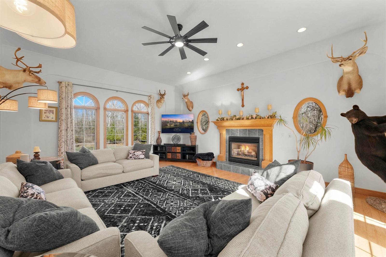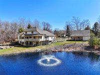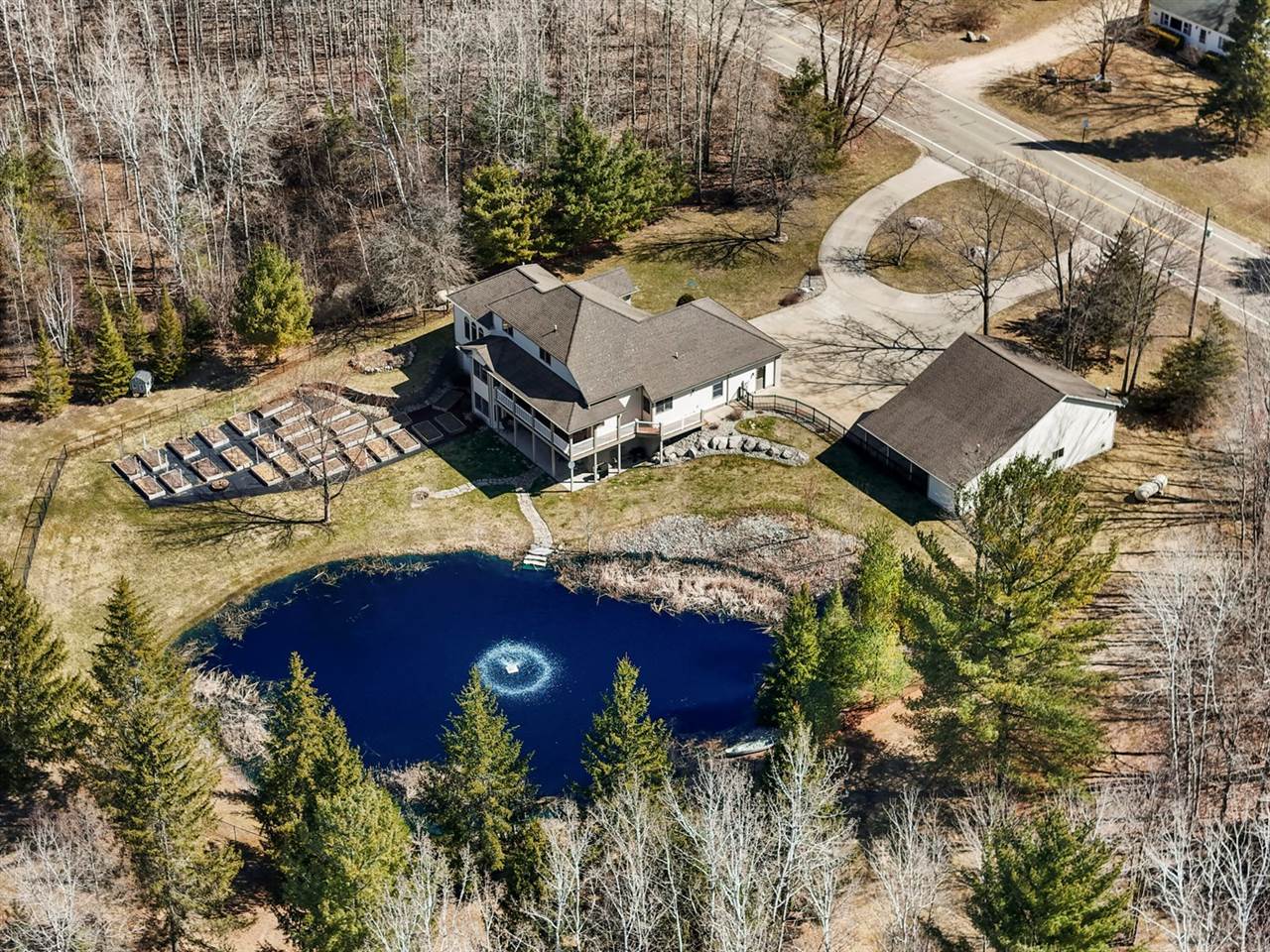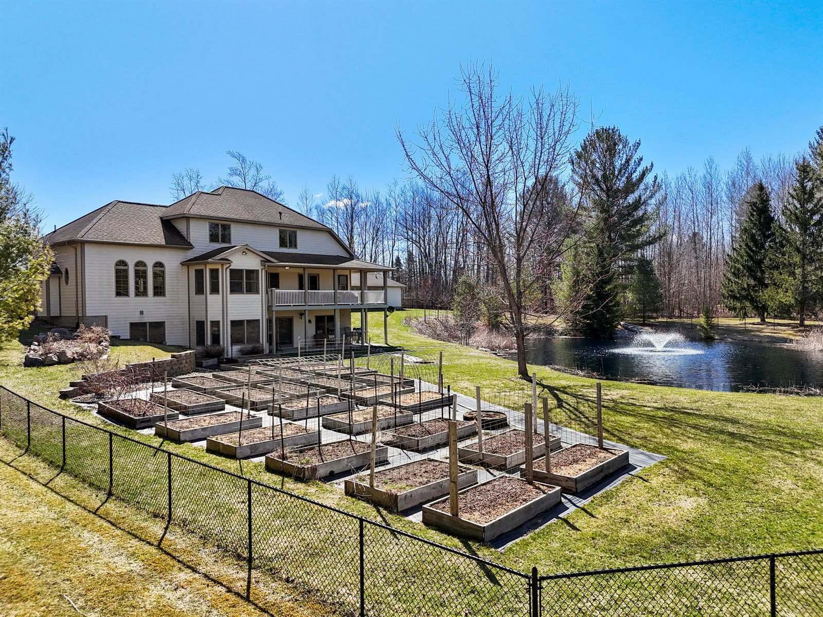 This custom-built home offers over 3,800 square feet of living space across three levels, including a fully finished walkout basement, all nestled on 7 beautiful acres. Inside, you'll find a thoughtfully designed layout with hardwood floors, ceramic tile, new carpet upstairs, and updated flooring in the spacious main-floor master suite. The master also features a walk-in closet, large en suite bath, and French doors that open to a covered back porch overlooking a peaceful, stocked pond with a fountain and raised garden beds--your own private retreat.The main level boasts a welcoming living room with a gas fireplace and an open kitchen with granite countertops, quality cabinetry, and plenty of prep space. White oak trim and doors run throughout the home, adding warmth and character.