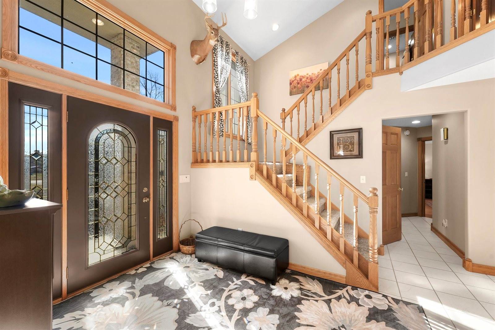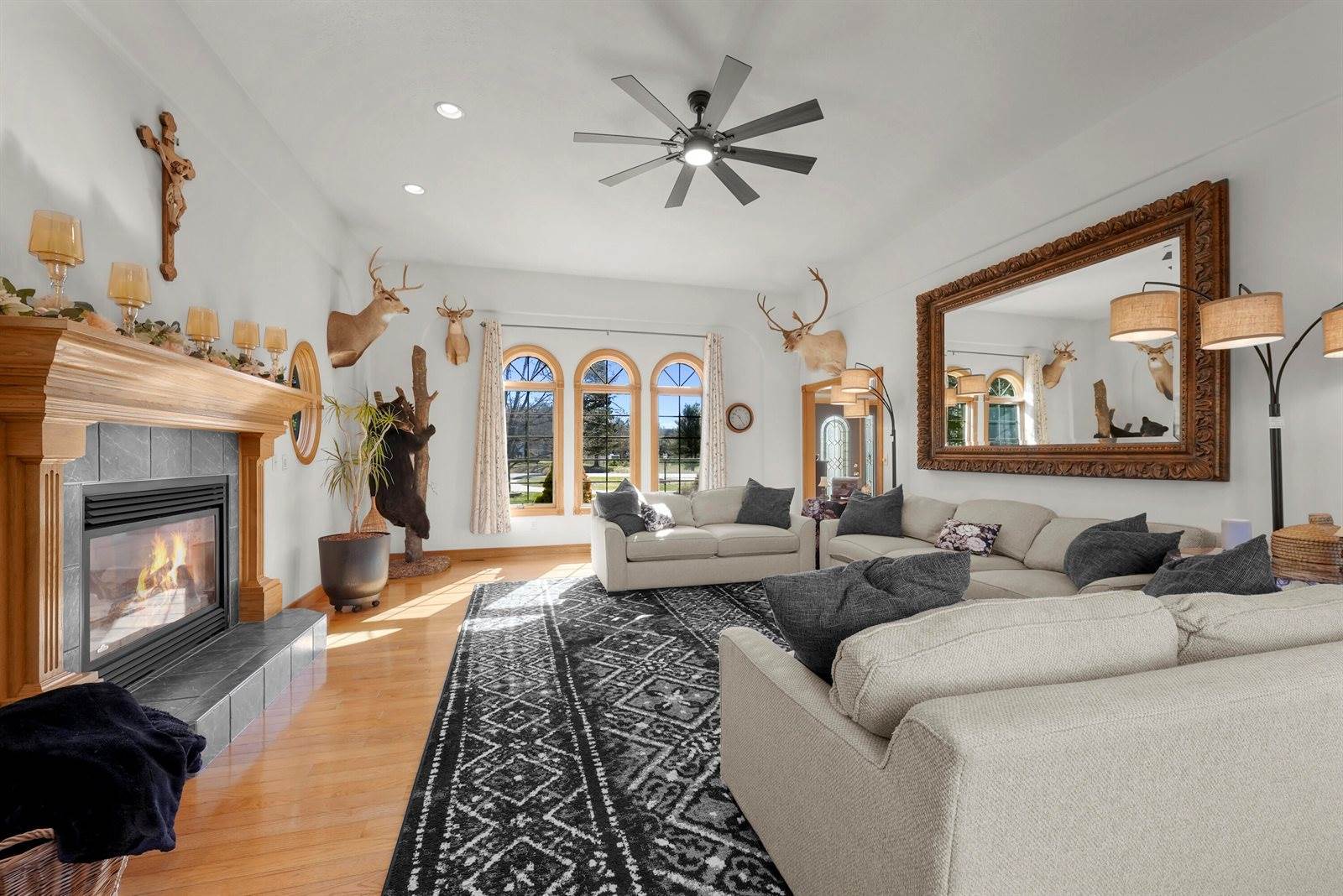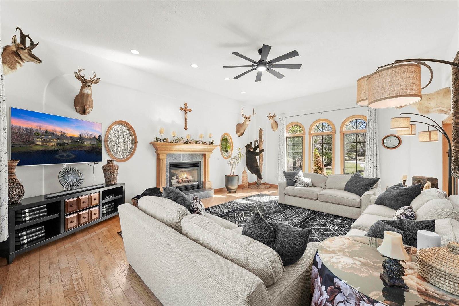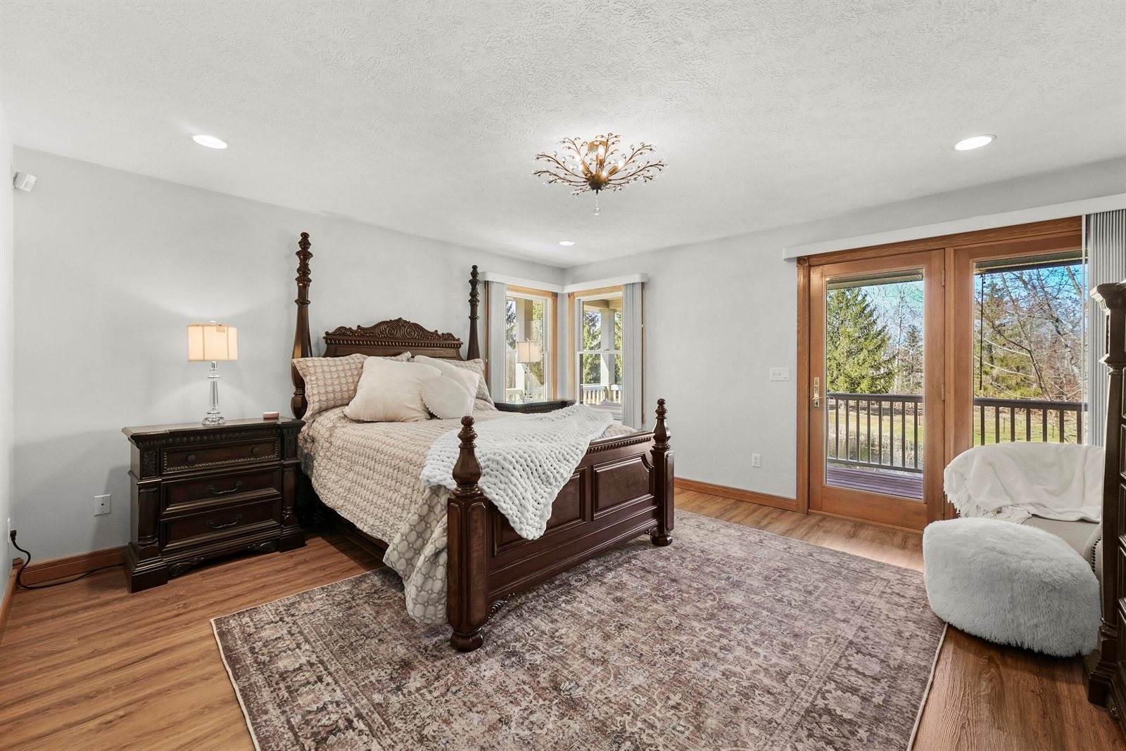 This custom-built home offers over 3,800 square feet of living space across three levels, including a fully finished walkout basement, all nestled on 7 beautiful acres. Inside, you'll find a thoughtfully designed layout with hardwood floors, ceramic tile, new carpet upstairs, and updated flooring in the spacious main-floor master suite. The master also features a walk-in closet, large en suite bath, and French doors that open to a covered back porch overlooking a peaceful, stocked pond with a fountain and raised garden beds--your own private retreat.The main level boasts a welcoming living room with a gas fireplace and an open kitchen with granite countertops, quality cabinetry, and plenty of prep space. White oak trim and doors run throughout the home, adding warmth and character.