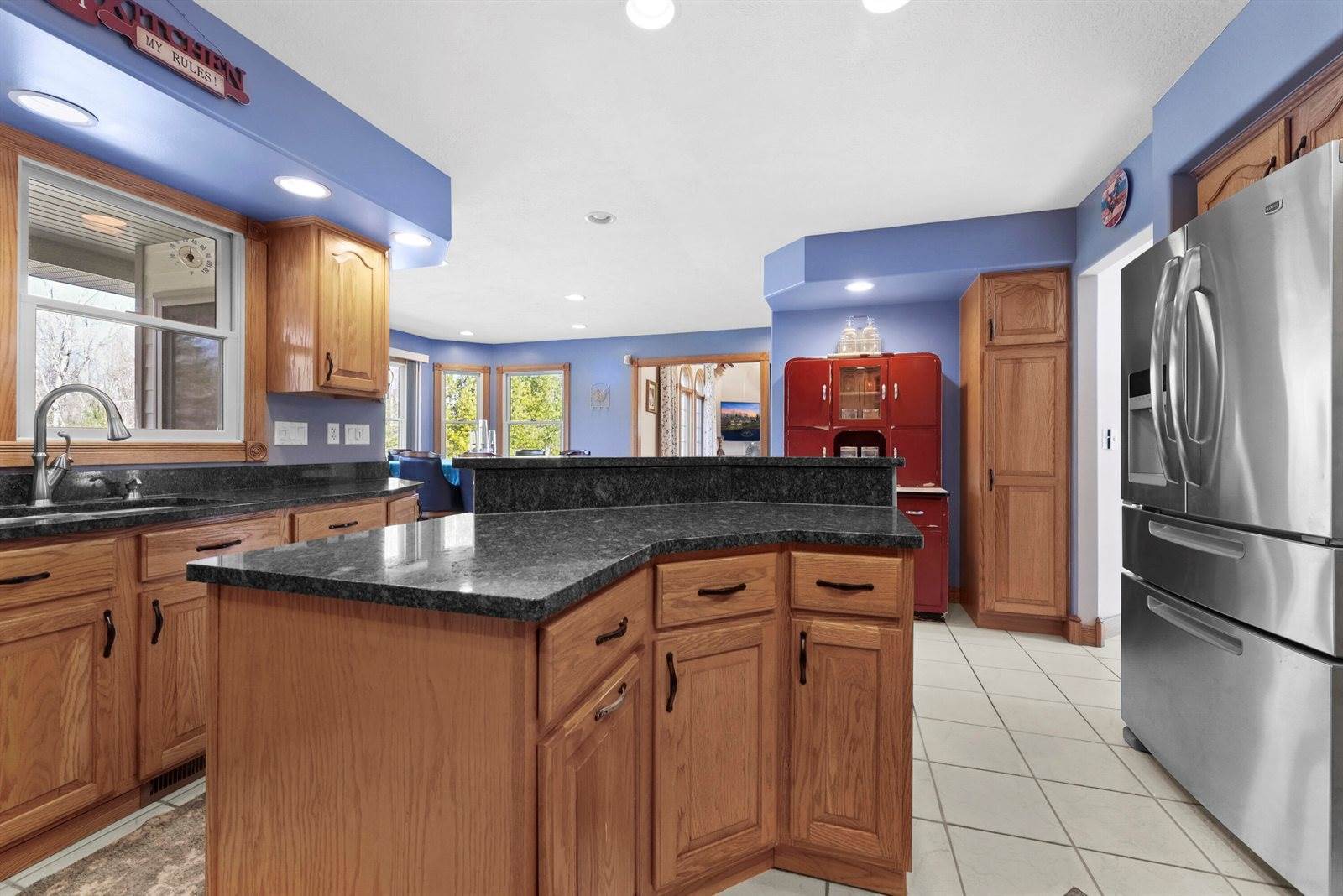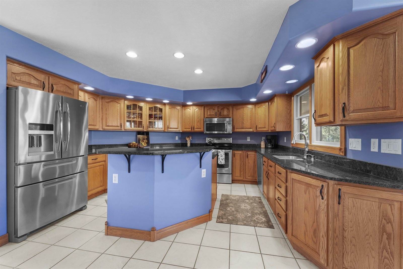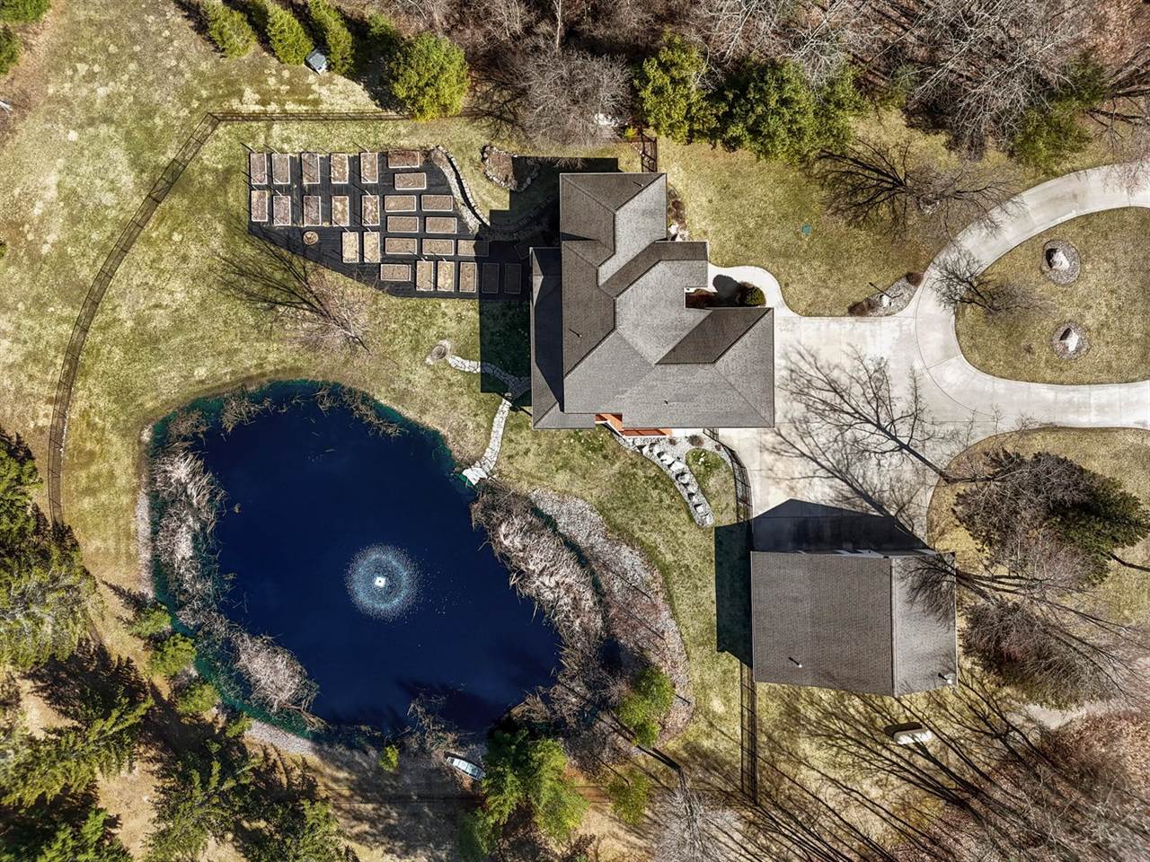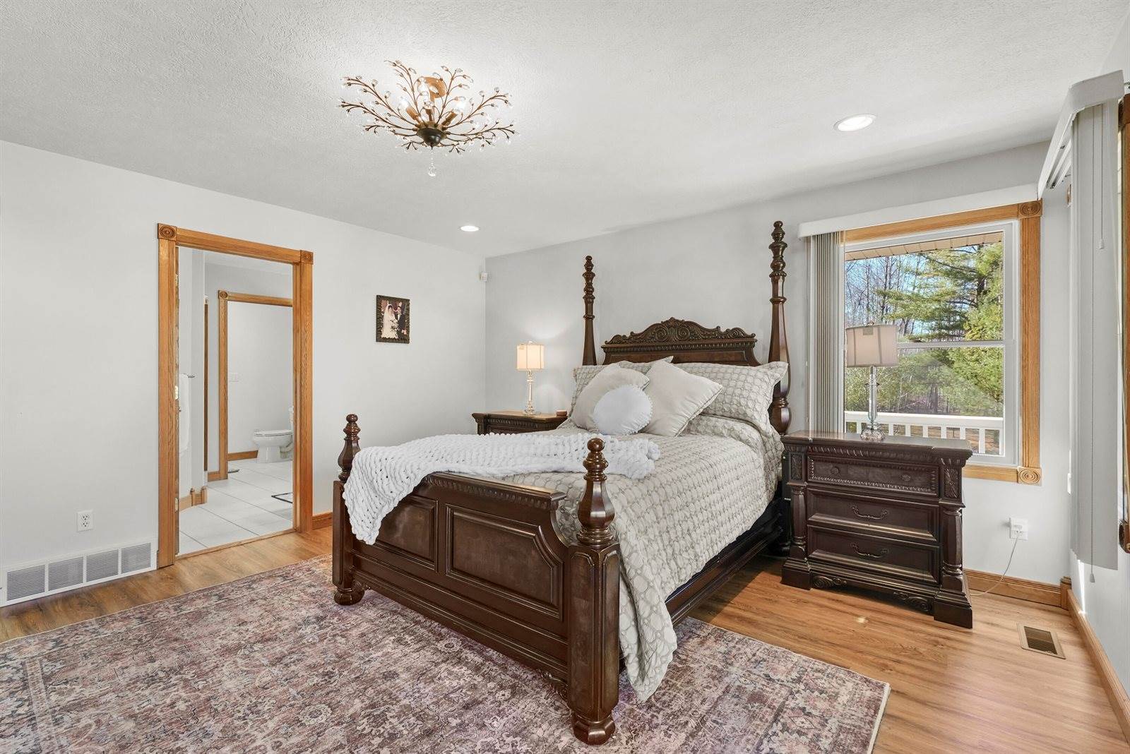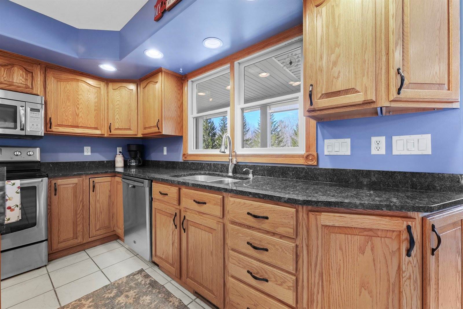 This custom-built home offers over 3,800 square feet of living space across three levels, including a fully finished walkout basement, all nestled on 7 beautiful acres. Inside, you'll find a thoughtfully designed layout with hardwood floors, ceramic tile, new carpet upstairs, and updated flooring in the spacious main-floor master suite. The master also features a walk-in closet, large en suite bath, and French doors that open to a covered back porch overlooking a peaceful, stocked pond with a fountain and raised garden beds--your own private retreat.The main level boasts a welcoming living room with a gas fireplace and an open kitchen with granite countertops, quality cabinetry, and plenty of prep space. White oak trim and doors run throughout the home, adding warmth and character.