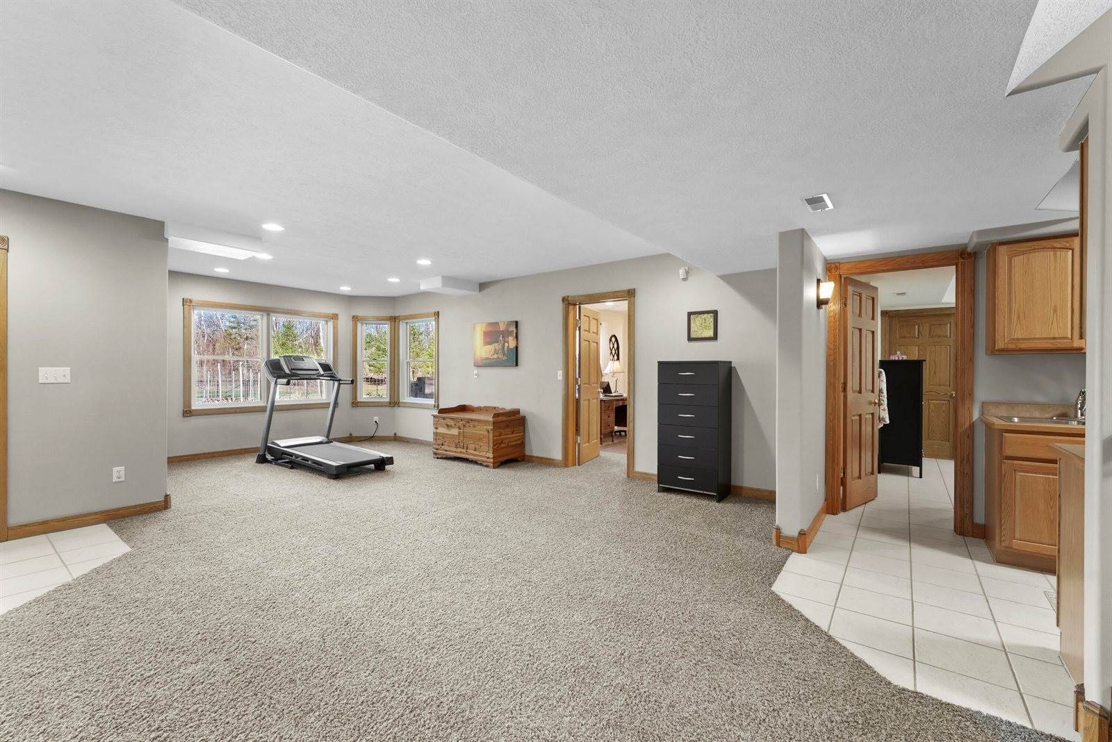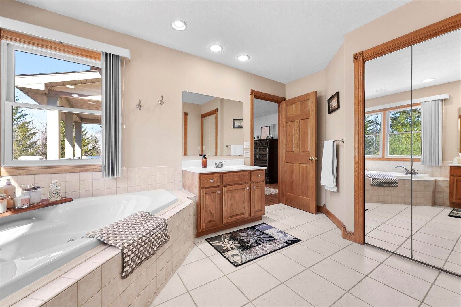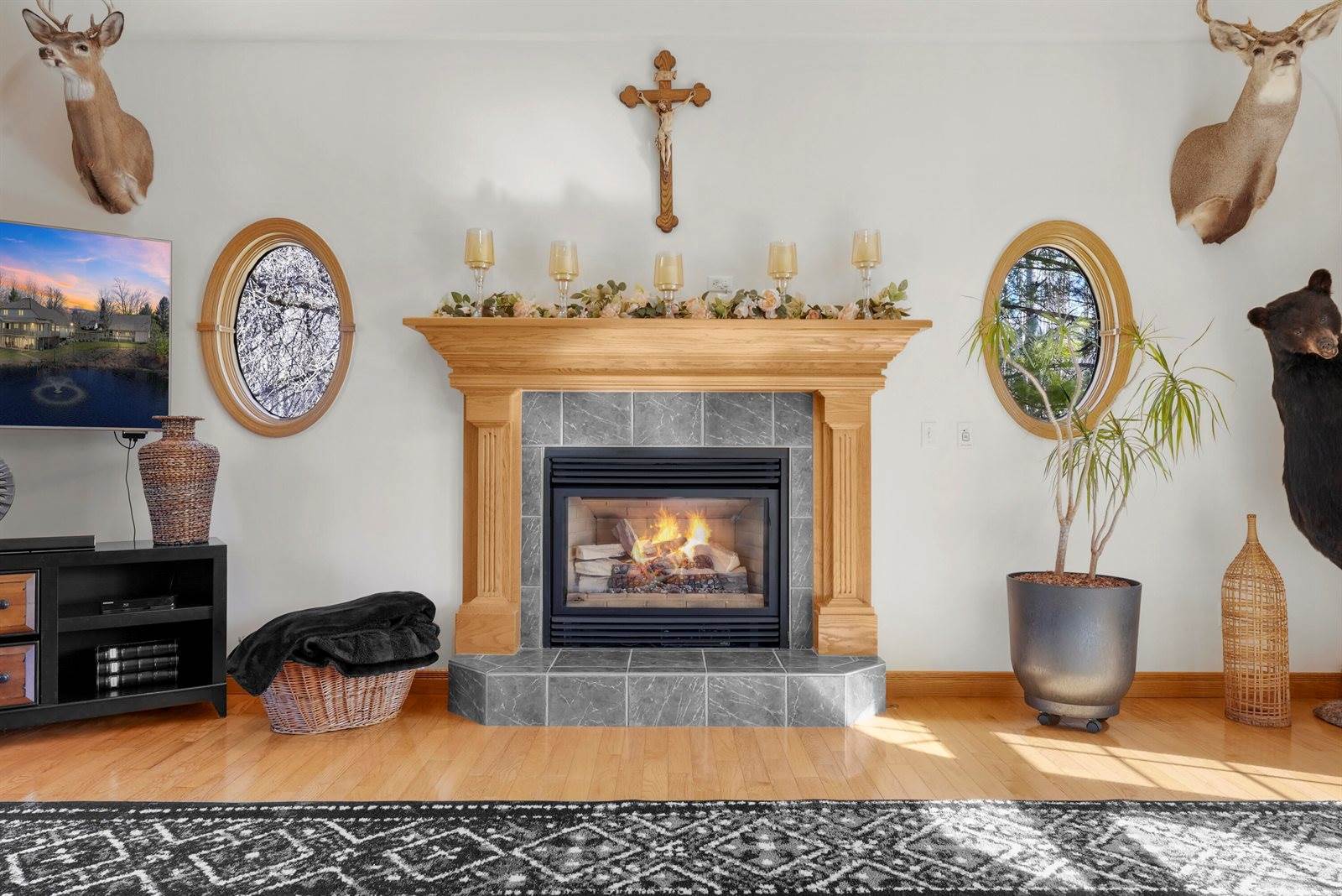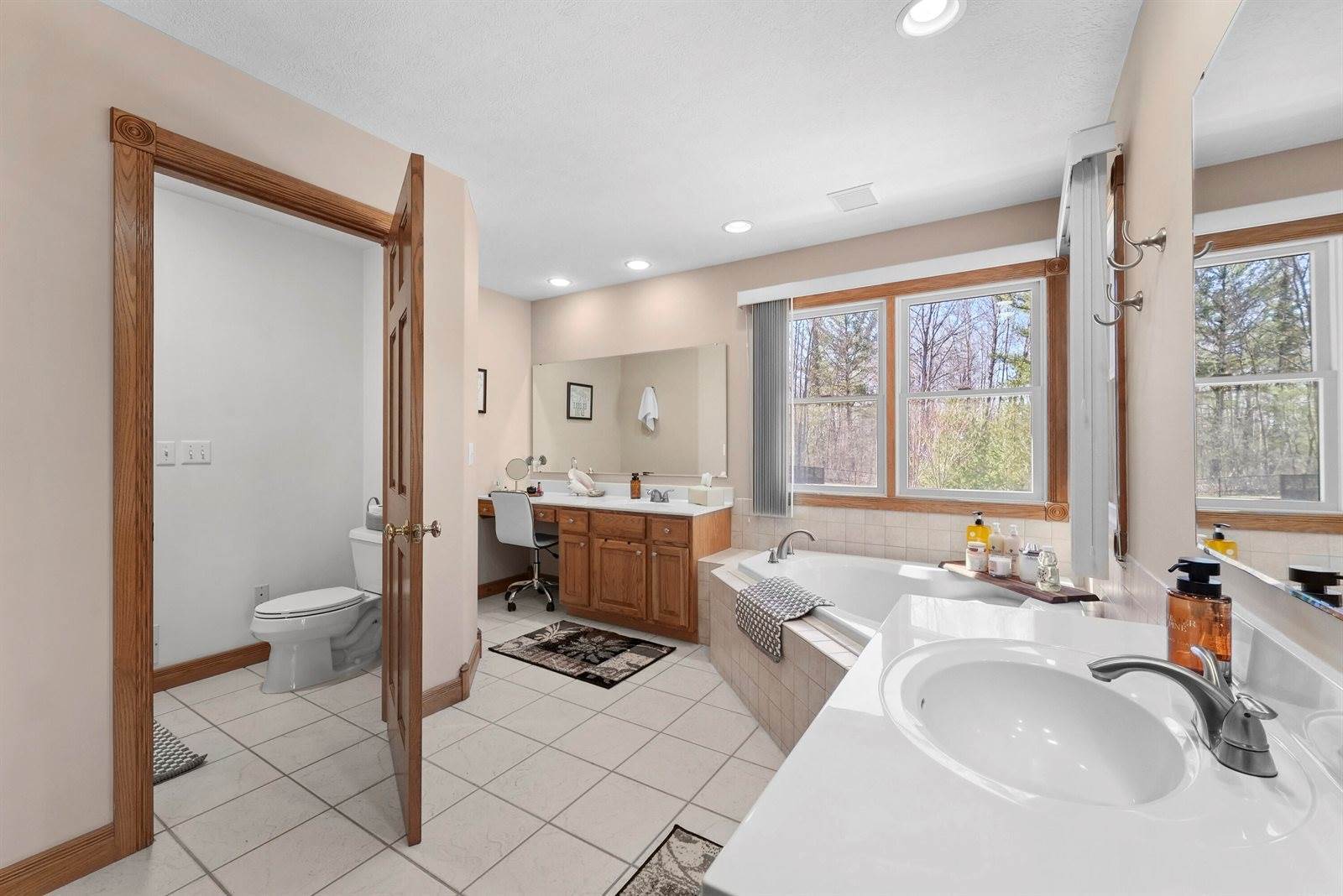 This custom-built home offers over 3,800 square feet of living space across three levels, including a fully finished walkout basement, all nestled on 7 beautiful acres. Inside, you'll find a thoughtfully designed layout with hardwood floors, ceramic tile, new carpet upstairs, and updated flooring in the spacious main-floor master suite. The master also features a walk-in closet, large en suite bath, and French doors that open to a covered back porch overlooking a peaceful, stocked pond with a fountain and raised garden beds--your own private retreat.The main level boasts a welcoming living room with a gas fireplace and an open kitchen with granite countertops, quality cabinetry, and plenty of prep space. White oak trim and doors run throughout the home, adding warmth and character.