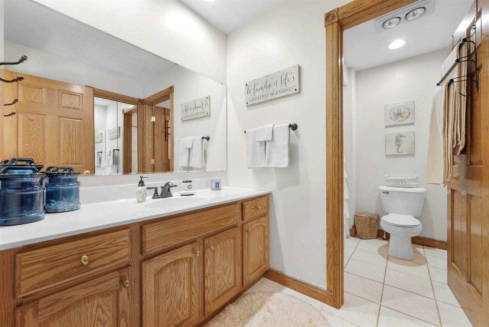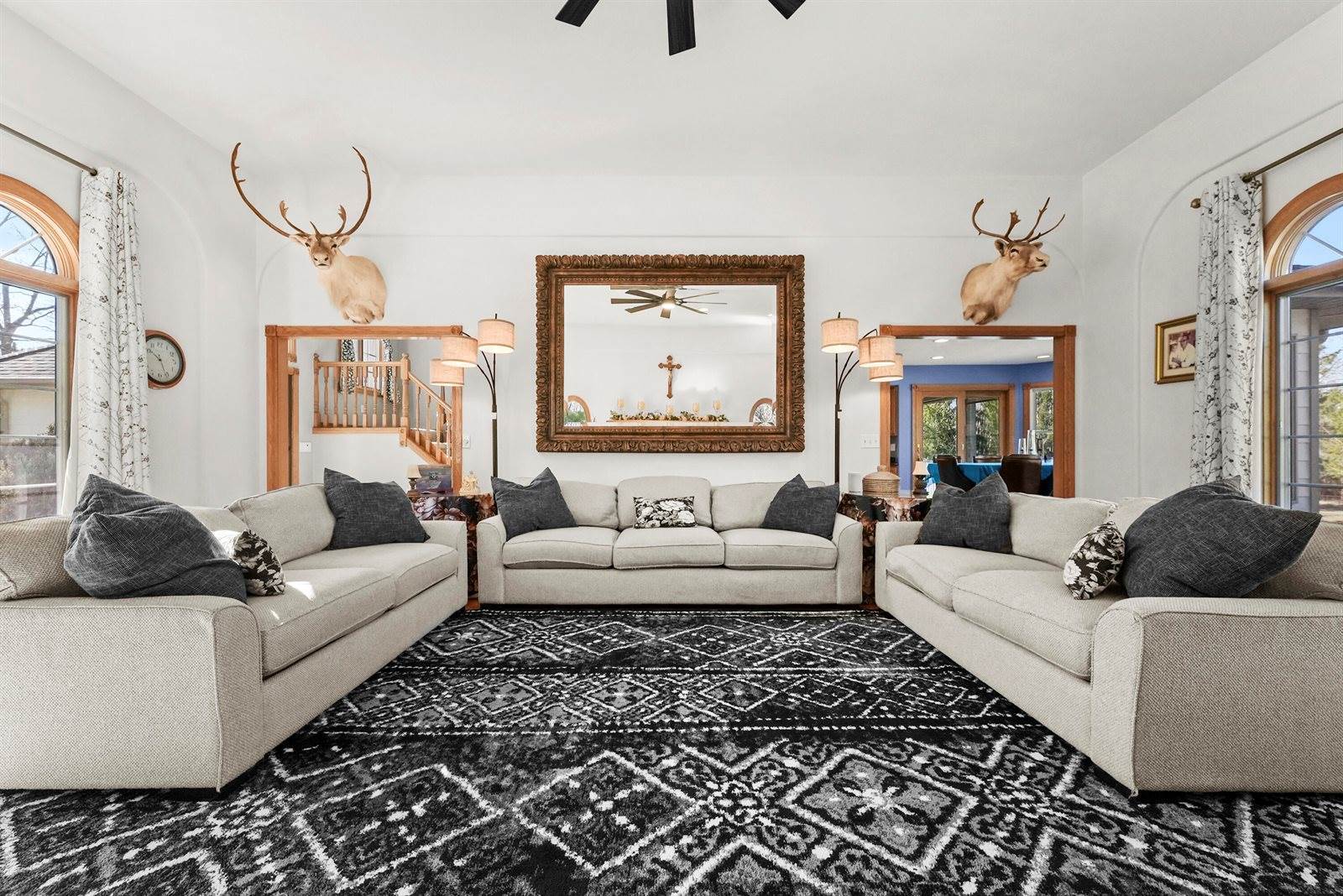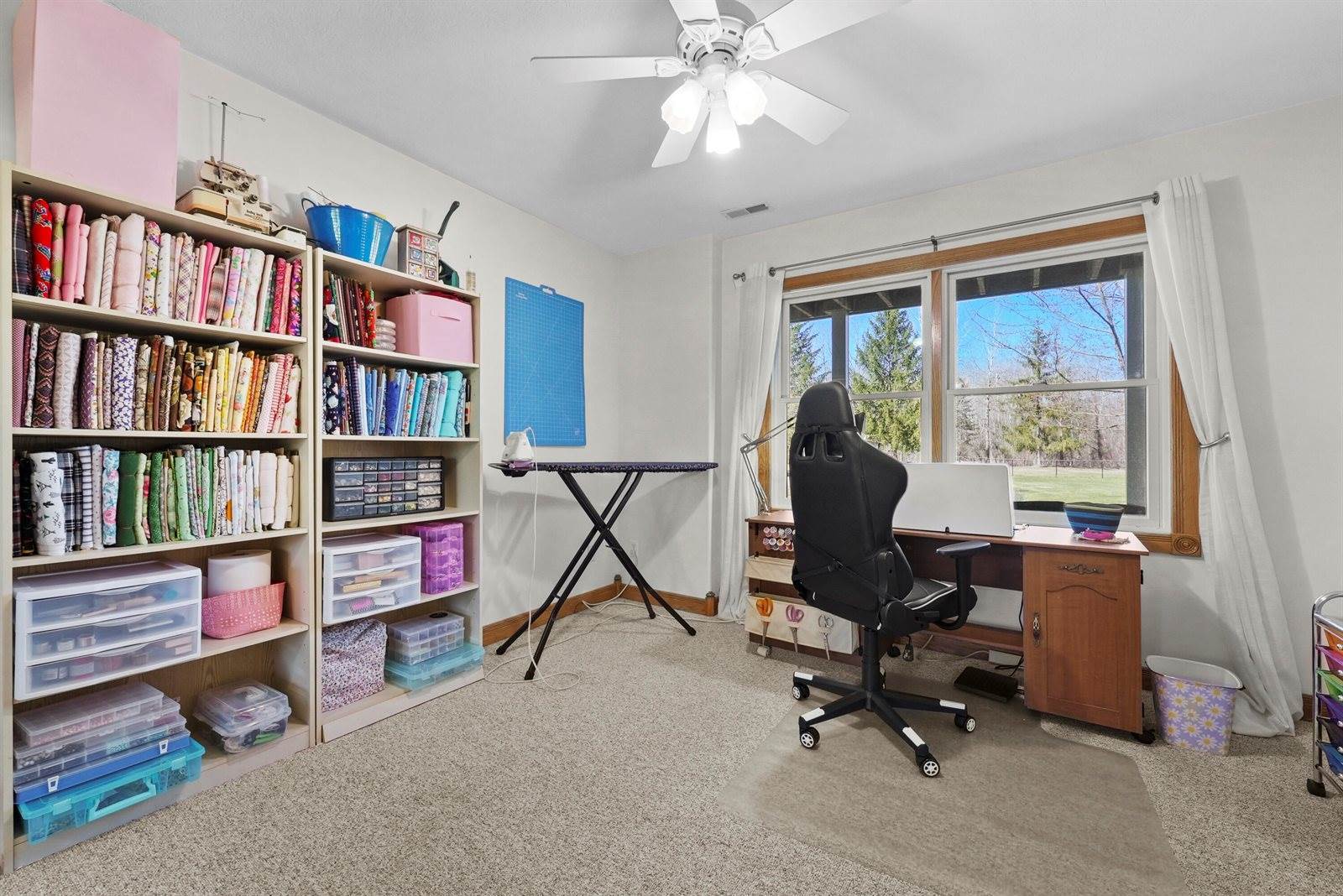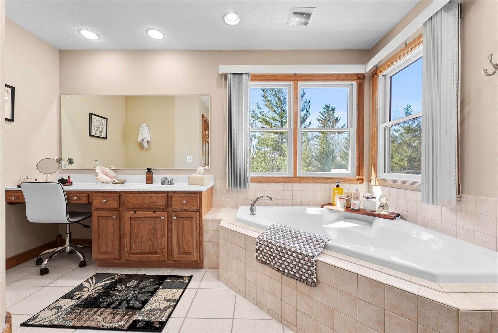 This custom-built home offers over 3,800 square feet of living space across three levels, including a fully finished walkout basement, all nestled on 7 beautiful acres. Inside, you'll find a thoughtfully designed layout with hardwood floors, ceramic tile, new carpet upstairs, and updated flooring in the spacious main-floor master suite. The master also features a walk-in closet, large en suite bath, and French doors that open to a covered back porch overlooking a peaceful, stocked pond with a fountain and raised garden beds--your own private retreat.The main level boasts a welcoming living room with a gas fireplace and an open kitchen with granite countertops, quality cabinetry, and plenty of prep space. White oak trim and doors run throughout the home, adding warmth and character.