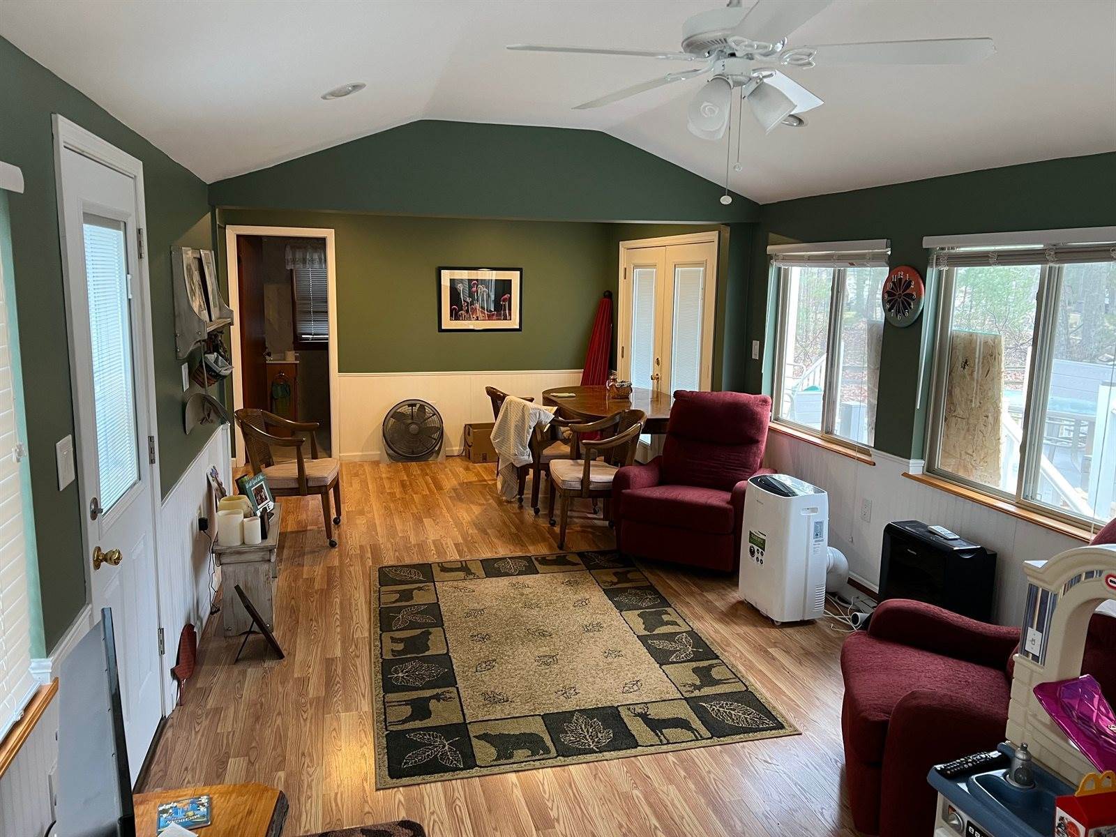 Welcome to this charming 2-bedroom, 1-bath cottage nestled in the heart of Au Gres, MI! This home features two spacious living rooms—perfect for hosting family and friends, or just relaxing in comfort. Natural light floods the space through an abundance of windows, creating a warm and inviting atmosphere year-round. Step outside and enjoy the gorgeous Trex deck with built-in seating, a brick patio with a cozy built-in firepit, and a handy backyard shed. City water and a septic tank offer convenience, while high-speed internet is available for modern living. Located just a short walk down 8th Street to the public access beach on stunning Lake Huron, and less than 7 miles from the Au Gres Marina. Spend your days golfing at Huron Breeze, disc golfing at the nearby abandoned airport, or exploring the charm of downtown Au Gres. You're also just about 30 minutes from both Tawas and Standish, with easy access via main paved roads. Whether you're looking for a serene summer escape or a peaceful winter retreat, this cottage offers the perfect blend of comfort, location, and outdoor living.