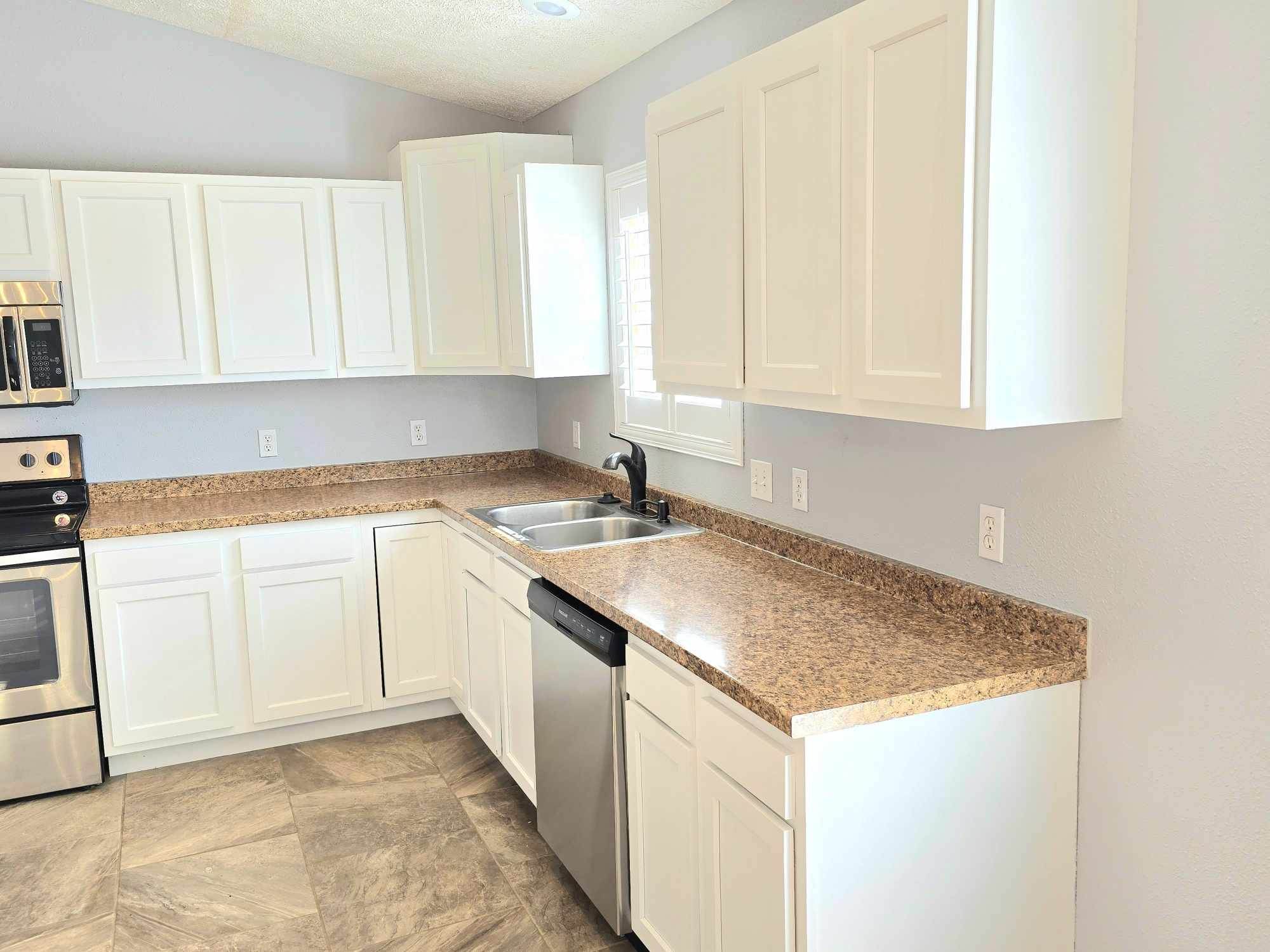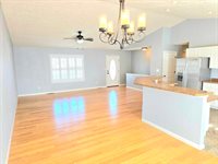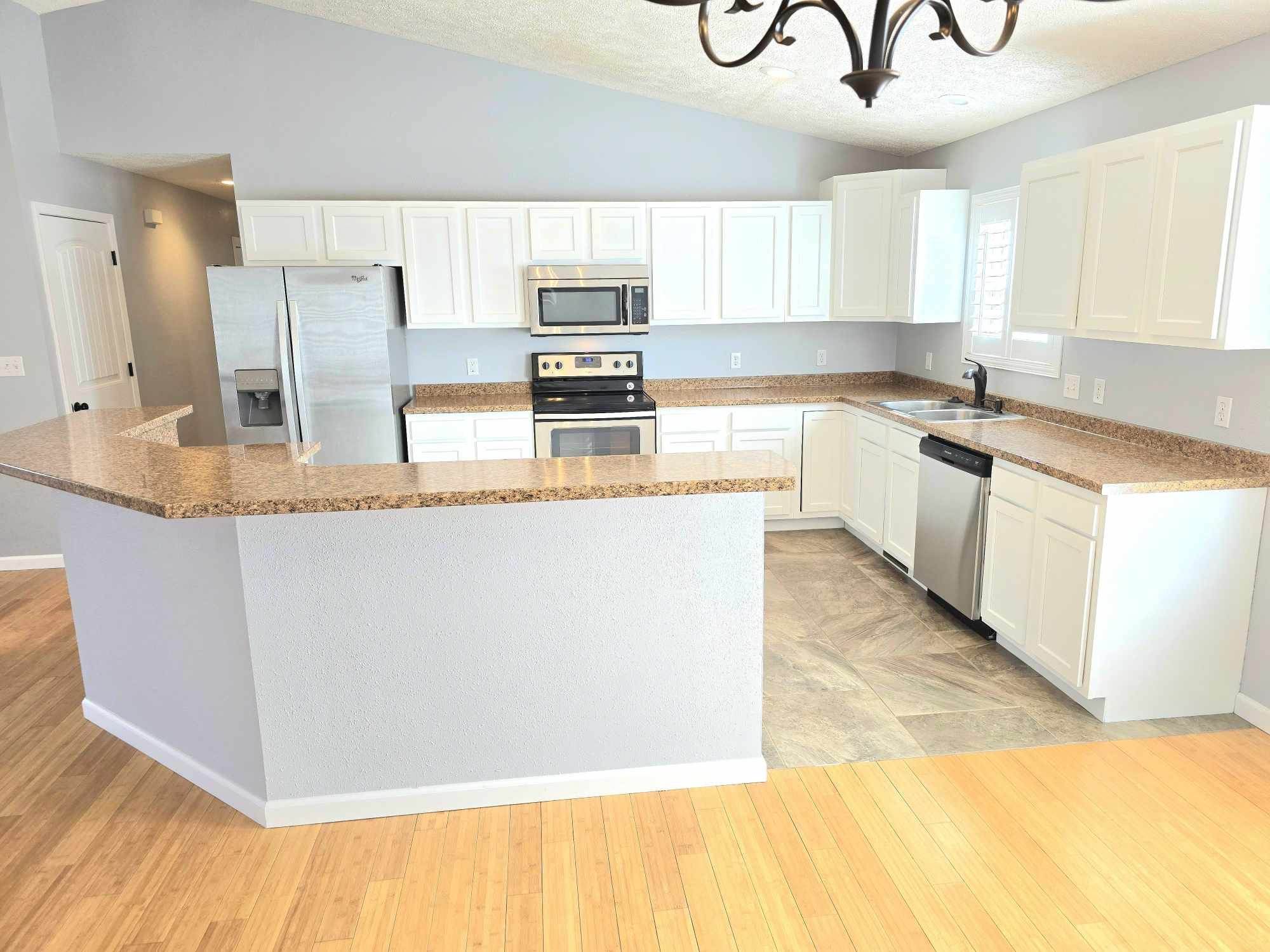 This charming 4-bedroom, 2-bathroom ranch home offers over 2,800 sq. ft. of living space in a peaceful neighborhood, just minutes from Fort Leonard Wood and within the desirable Waynesville School District. The spacious living room features vaulted ceilings and sleek laminate flooring, creating a warm, inviting atmosphere. The kitchen and dining area are perfect for everyday living, with easy-to-clean laminate floors, white cabinetry, an island, and stainless steel appliances. The master suite boasts a tray ceiling, and walk-in closet, while the en-suite bathroom offers a double vanity, jetted tub, and tiled walk-in shower. Two additional bedrooms and a full guest bathroom complete the main level. The finished basement includes a family room, ideal for entertaining, plus a guest bedroom and an unfinished bathroom for future customization. Enjoy the single deck and two-car garage. Additional features include plantation shutters for privacy and style.