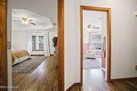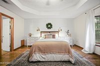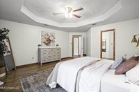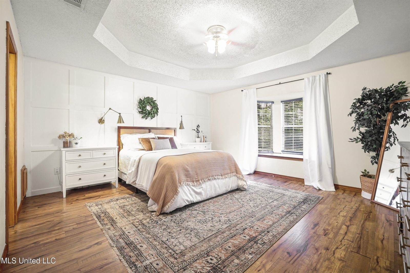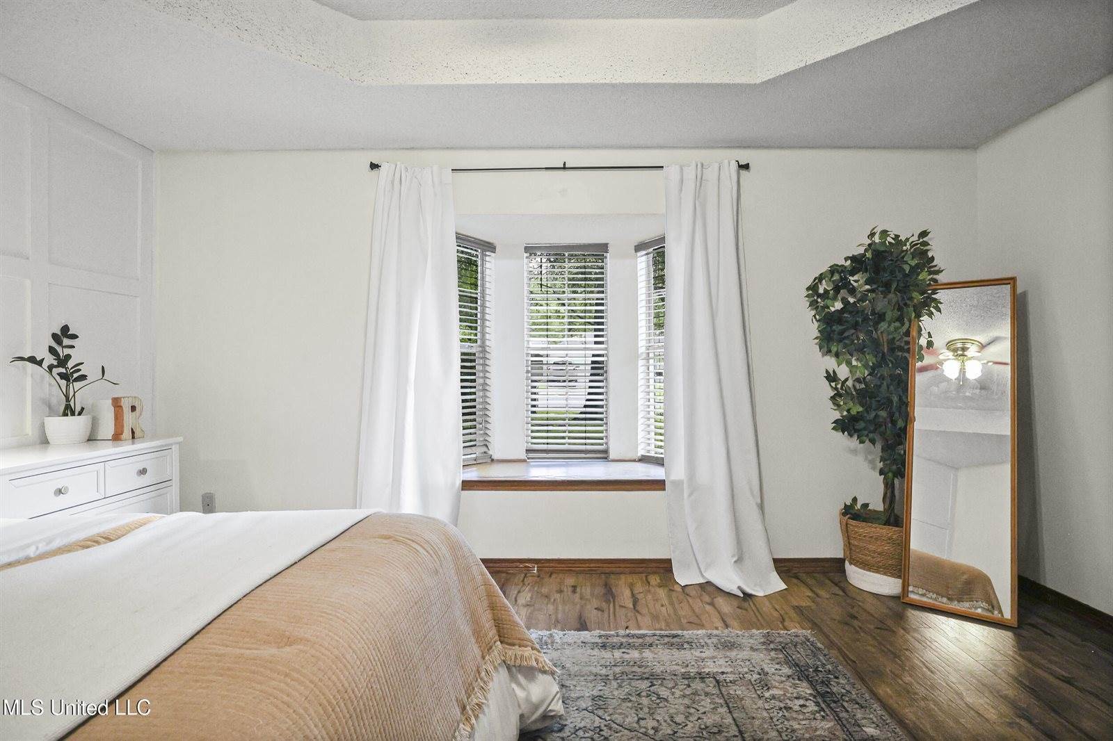 The primary suite is a true retreat with a Bay Window with sitting area, tray ceilings, a large walk-in closet, and an ensuite bathroom that includes double vanities, a soaker tub, and a beautifully tiled stand-up shower. Three additional generously sized bedrooms and a second full bathroom provide plenty of space for family, guests, or hobbies.