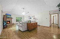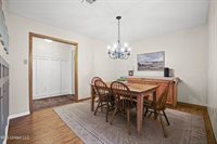 As you walk through the home, you'll notice custom features and updates throughout. To your left as you enter the home, a versatile formal dining room offers the perfect space for entertaining, or it can easily be transformed into a home office, playroom, or flex space to suit your needs. The spacious living room features high ceilings and a cozy corner brick FIREPLACE, creating a warm and inviting atmosphere. Just beyond, the kitchen offers ample counter space, abundant natural light, a breakfast nook, and plenty of room to cook and gather.