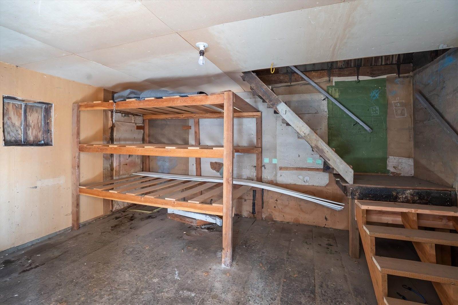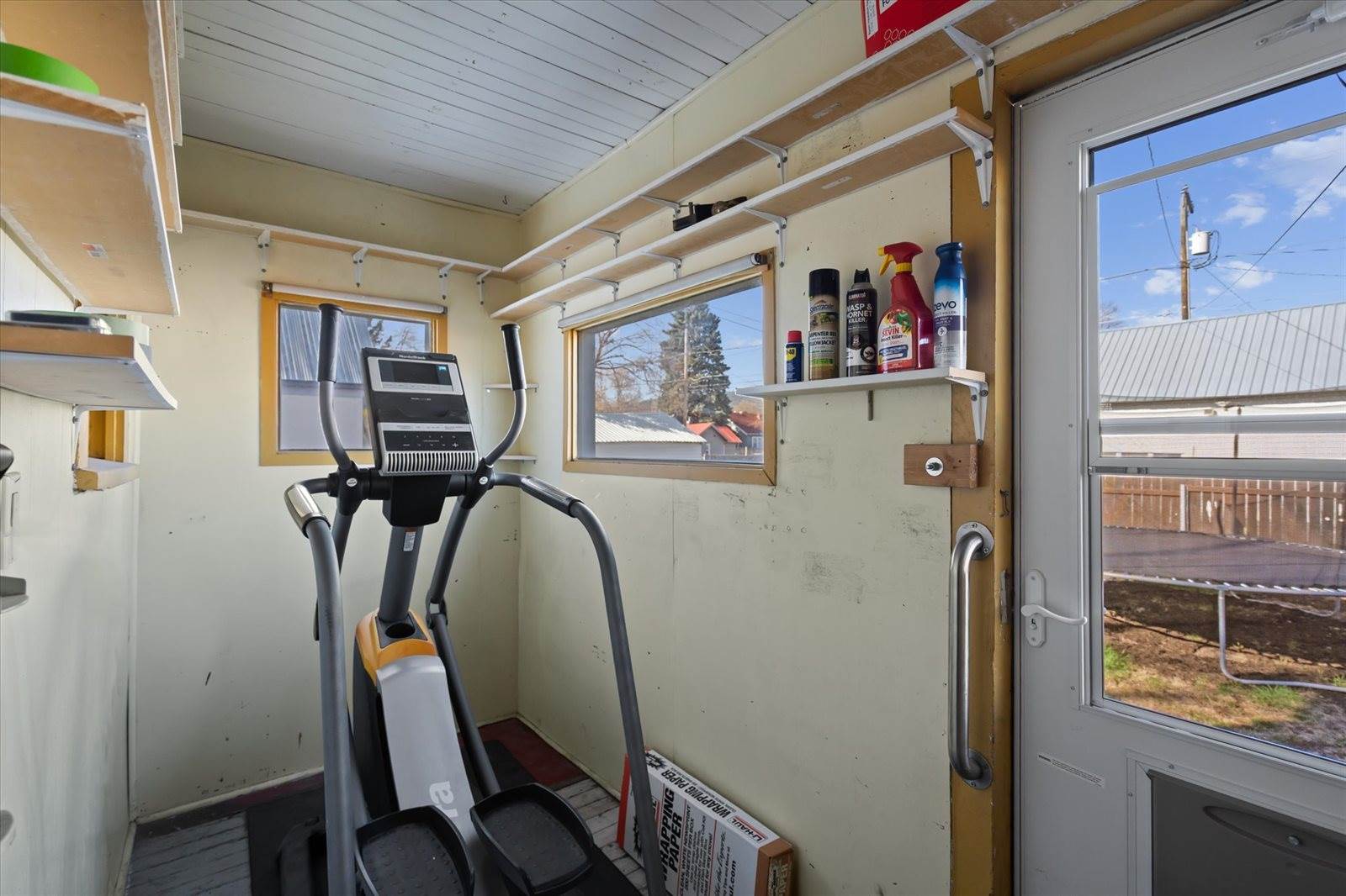 a large living room with fireplace, one bedroom on the main floor, three bedrooms on the upper, plus an additional hobby/den space. The basement offers additional storage and a secondary laundry hook-up. Out back, you will find the 2-level 16'x48' garage/shop