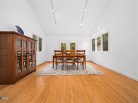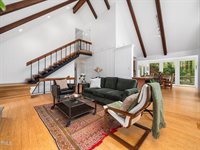 Discover this spectacular one of a kind home which is nestled on 1.39 acres of wooded privacy in desirable Cary. Expansive windows bring in stunning natural views and abundant natural light, you typically only find in the mountains. This thoughtfully designed home features a flexible floor plan —providing multiple options for home offices, recreation rooms, a fitness room, or a playroom. With 1500 sq feet over two levels of deck and distance from neighbors, this house is great for both entertaining and privacy. The property offers an additional flex room off the garage which is perfect for those wanting a private office, artist studio, or fitness room - the options are endless. The lower level provides a private large living area, with separate entrance from the lower deck, two additional flex rooms, and a full bathroom. Enjoy peace of mind with a brand-new septic tank and a reverse osmosis water filtration system. Fresh paint enhances the inviting atmosphere. With no HOA, this home offers you the freedom to make this home and property truly your own. Experience privacy, space, and convenience all in one—schedule your showing today!