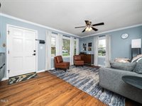 Rare opportunity to own a spacious 4-bedroom RANCH home with finished basement near Main Street in Garner! This home features beautifully refinished hardwoods in the living room and first floor bedrooms. The updated kitchen offers a desirable layout and a blend of functionality with modern touches. A versatile lower level provides endless possibilities- home office, playroom, or guest space! Don't miss the gorgeous bedroom, full bathroom, and large closet on the lower level. Natural light pours through the many windows, creating a bright and airy atmosphere. Step outside to a large backyard with a patio and outdoor fireplace, ideal for gatherings and relaxation. Imagine strolling to the park, community center, and local shops and restaurants, all within a mile! Get to Downtown Raleigh in just 10 minutes! Schedule your showing today - before it's gone!