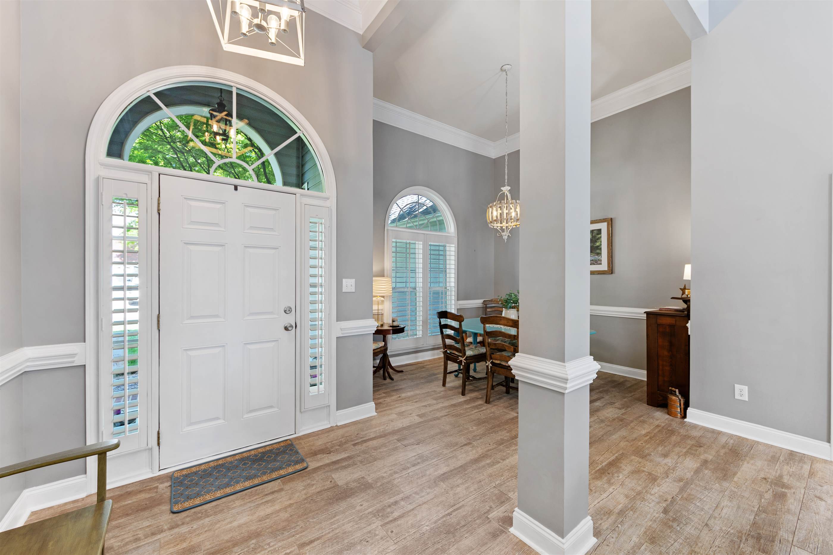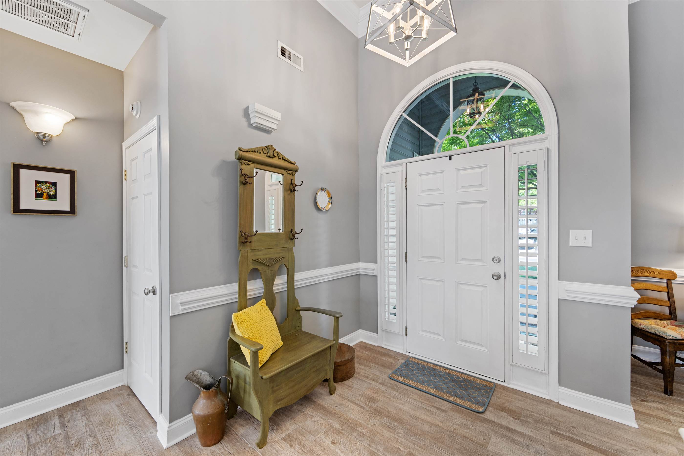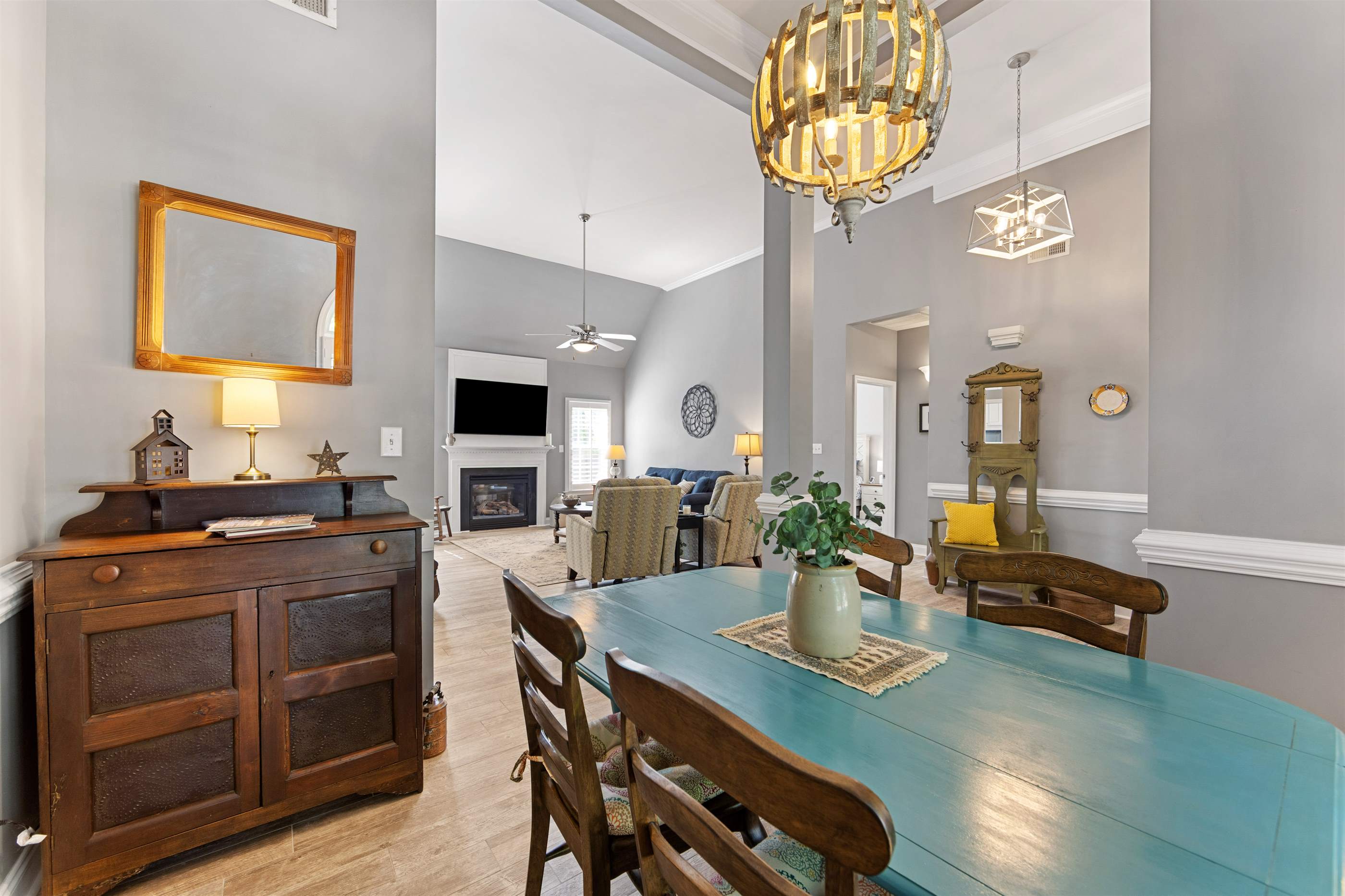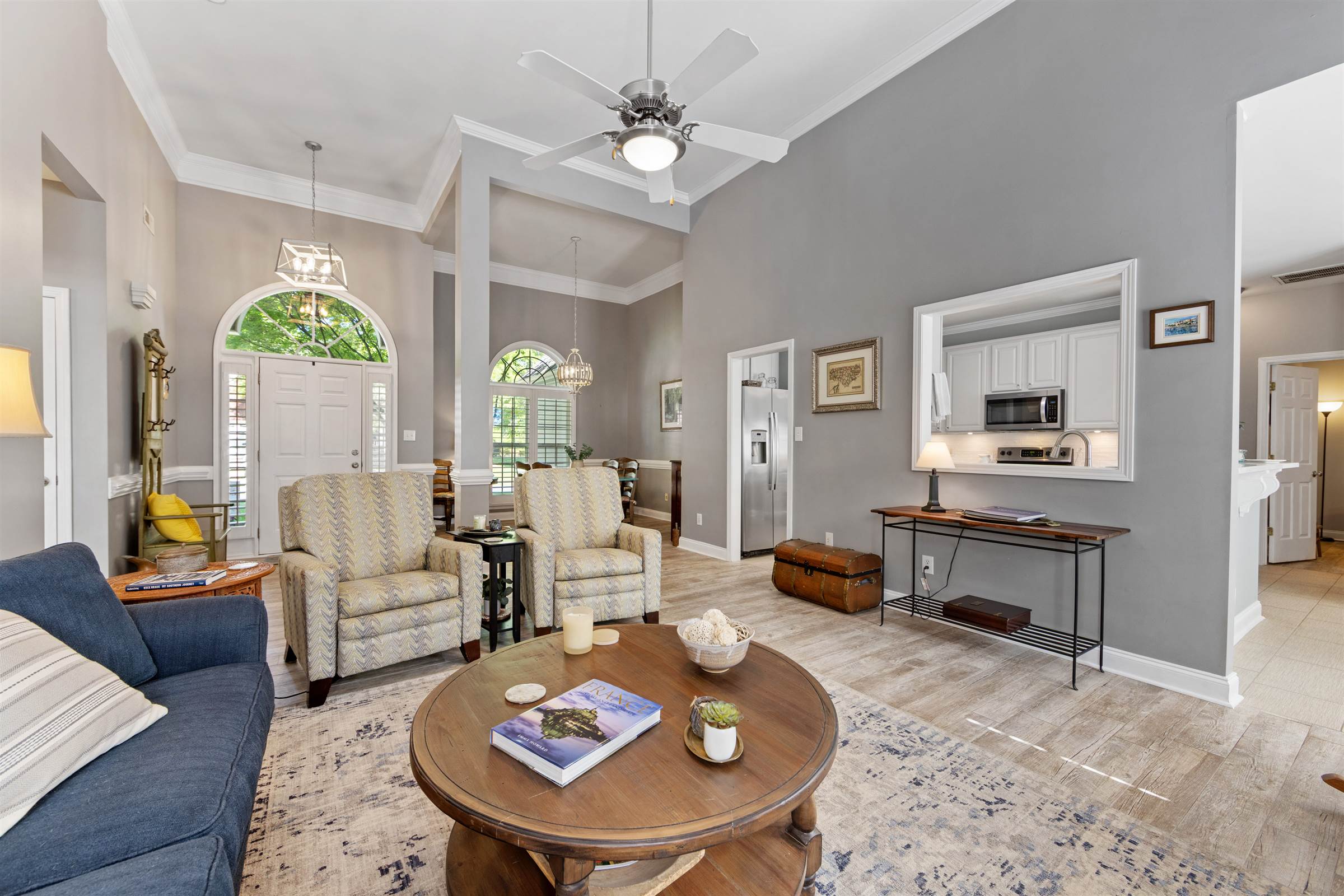 Soaring ceilings in the great room create an airy, open feel, filled with natural sunlight. The fenced back yard is your perfect retreat. Boasting a fire pit, paved patio and a charming pergola, its the kind of outdoor space you'll look forward to coming home