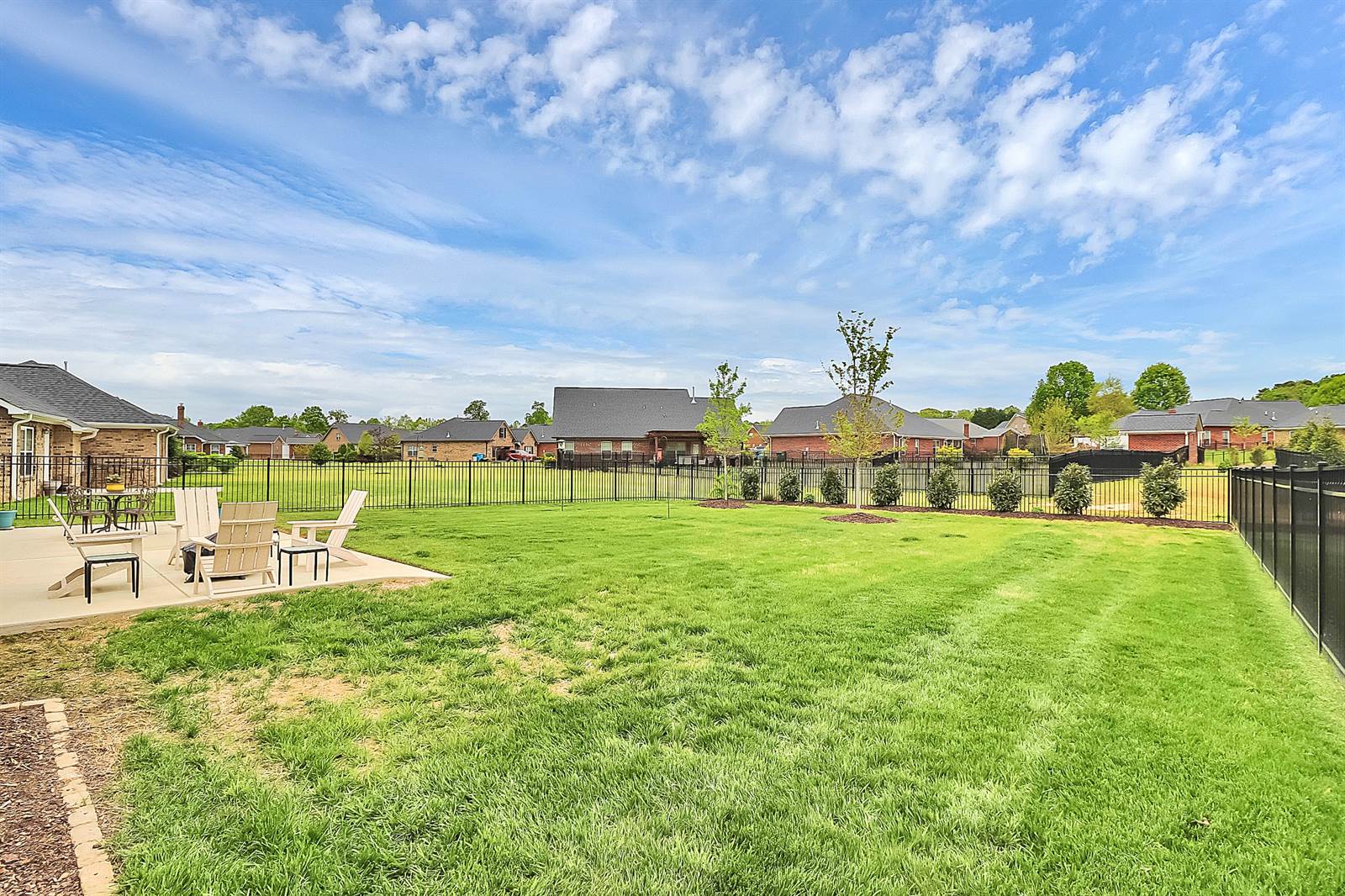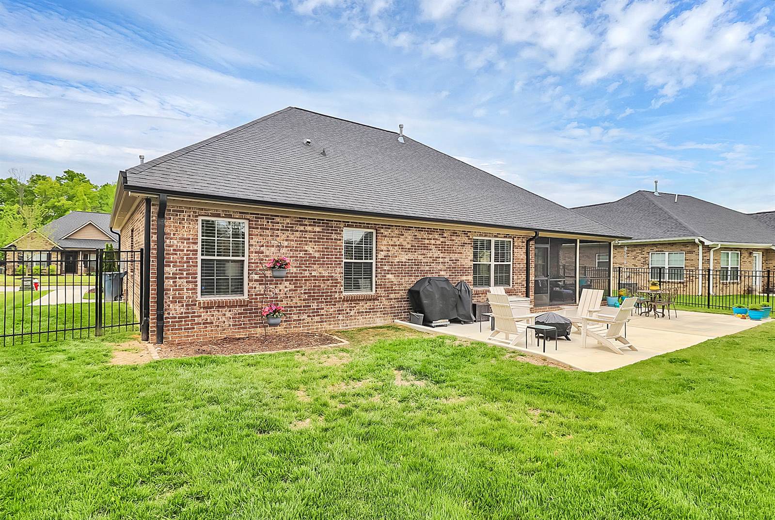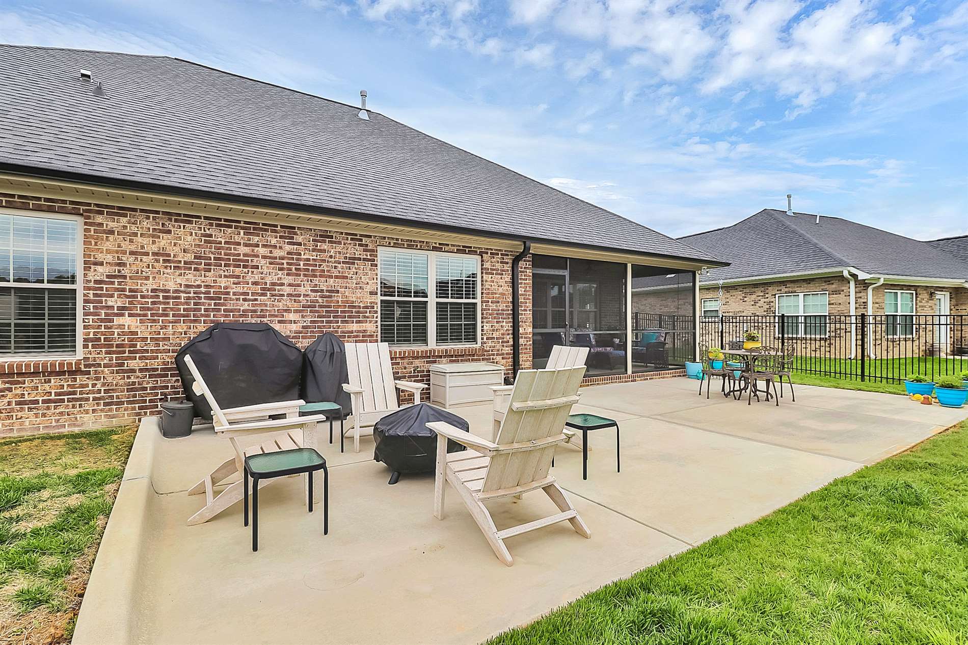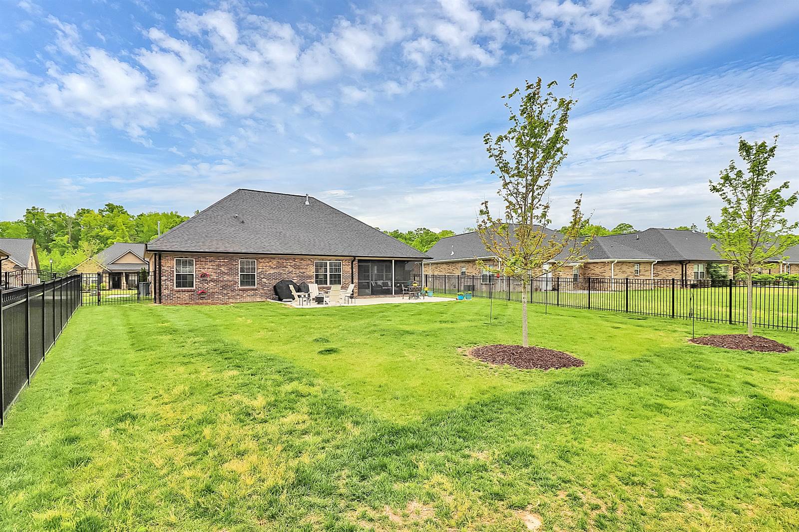 Uncover the allure of this charming brick ranch nestled in Crooked Creek Estates. Inside, the great room, kitchen, and dining area boast high ceilings that foster a welcoming ambiance, ideal for gatherings or unwinding. The kitchen is a delight, featuring a tiled backsplash, granite countertops, stainless steel appliances, and soft-close drawers. The primary bedroom suite ensures comfort and privacy with two spacious closets, double vanities, a separate shower and tub, a linen closet, and a water closet. The sought-after split-bedroom layout guarantees individual space for everyone. Don't overlook the impressive closet systems! The fenced backyard serves as a fantastic retreat, complete with a large patio and a screened porch, perfect for savoring summer evenings. The newly landscaped yard includes buried drainage systems, along with an extended driveway and sidewalk. The home is carpet-free and comes equipped with an HVAC air purifier (2024). The refrigerator is also included. Conveniently, Crooked Creek Park is just around the corner!