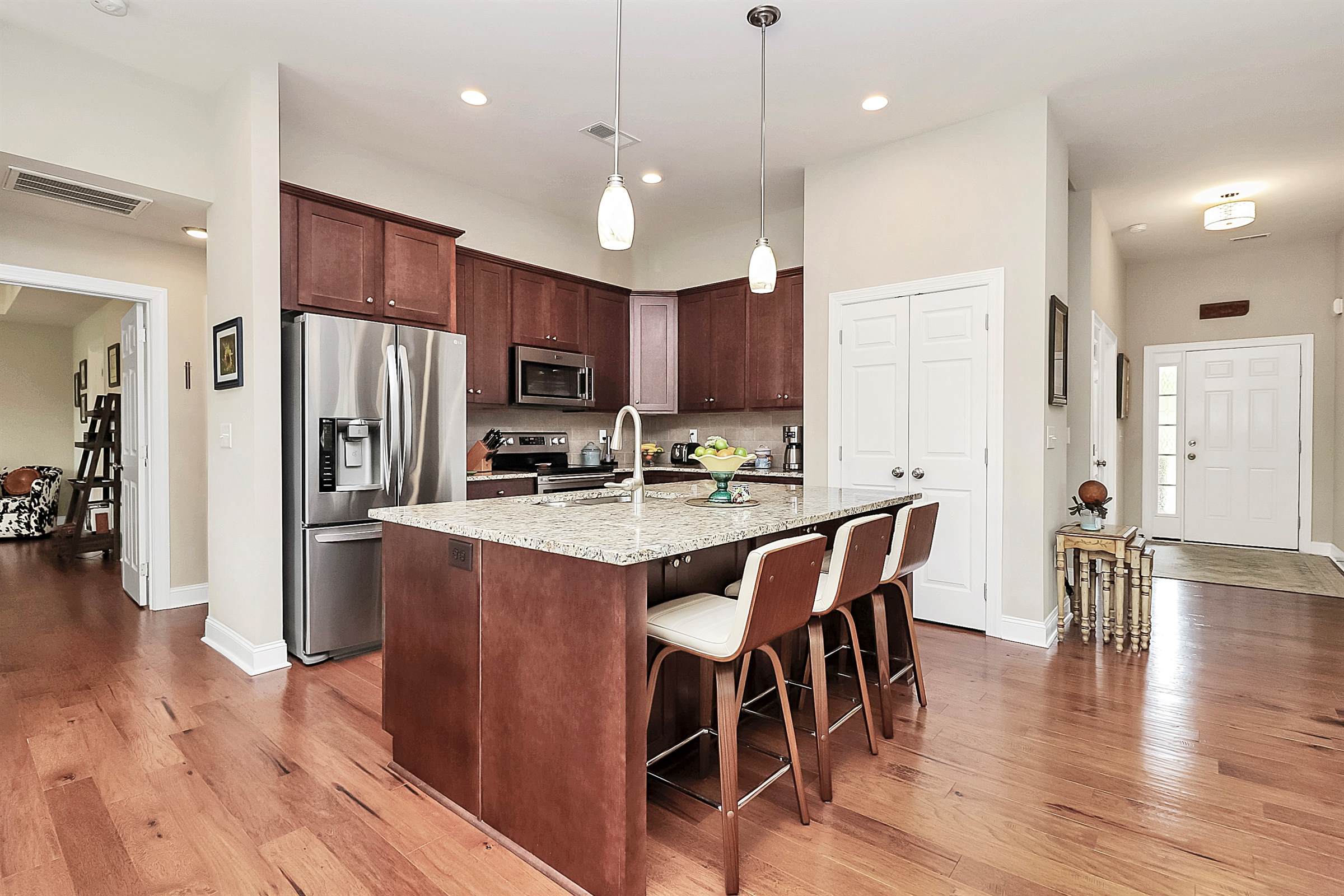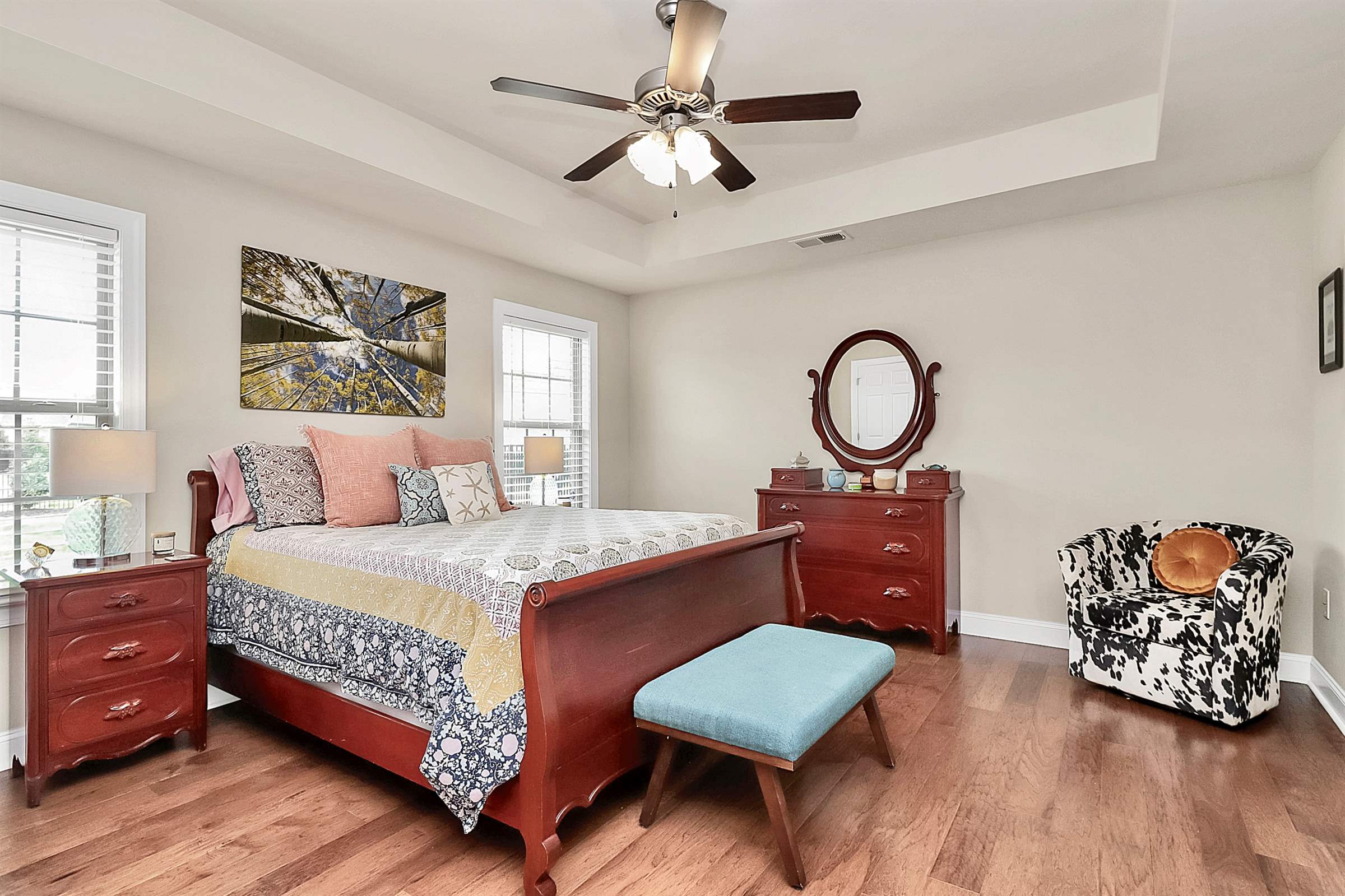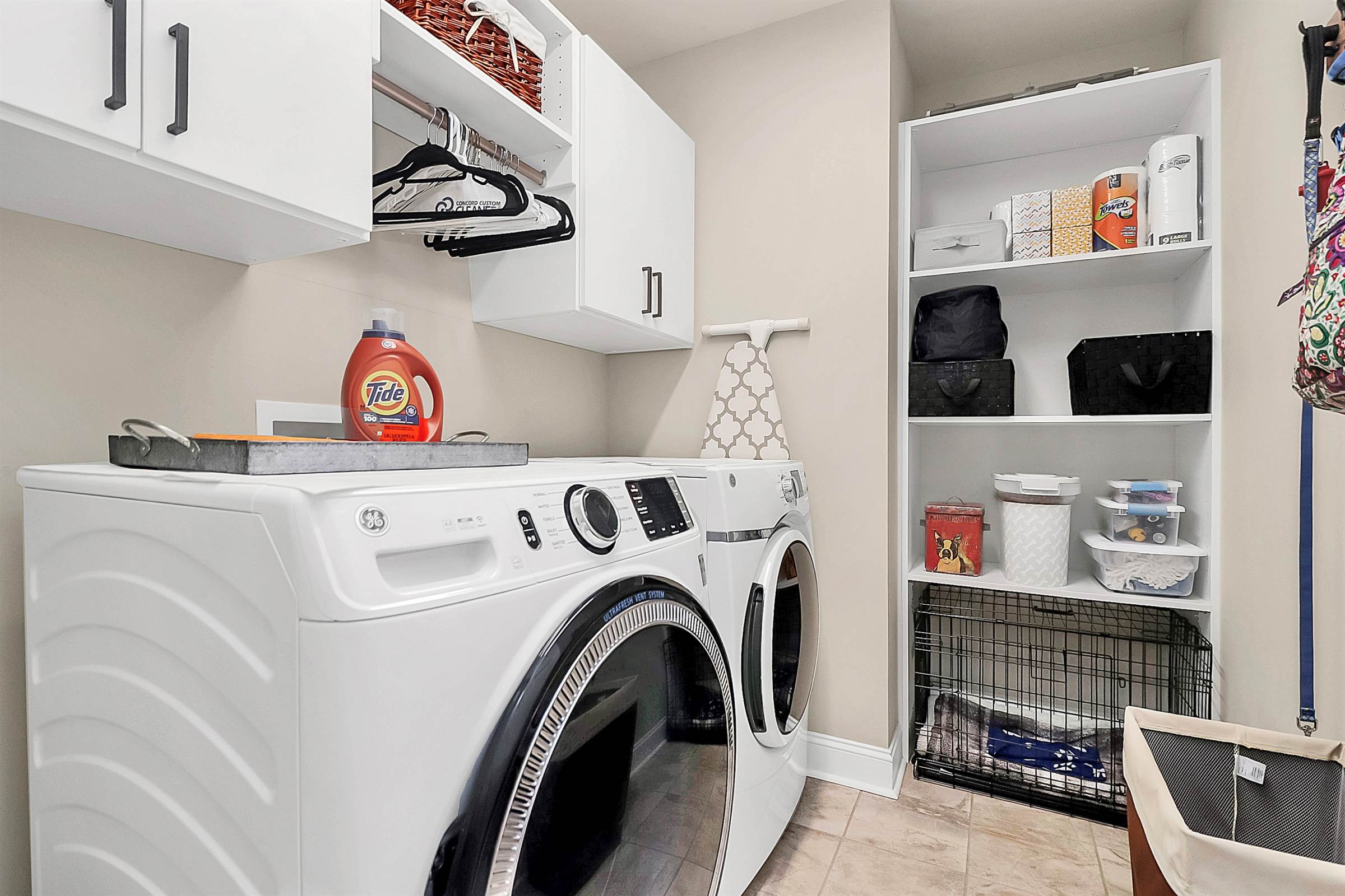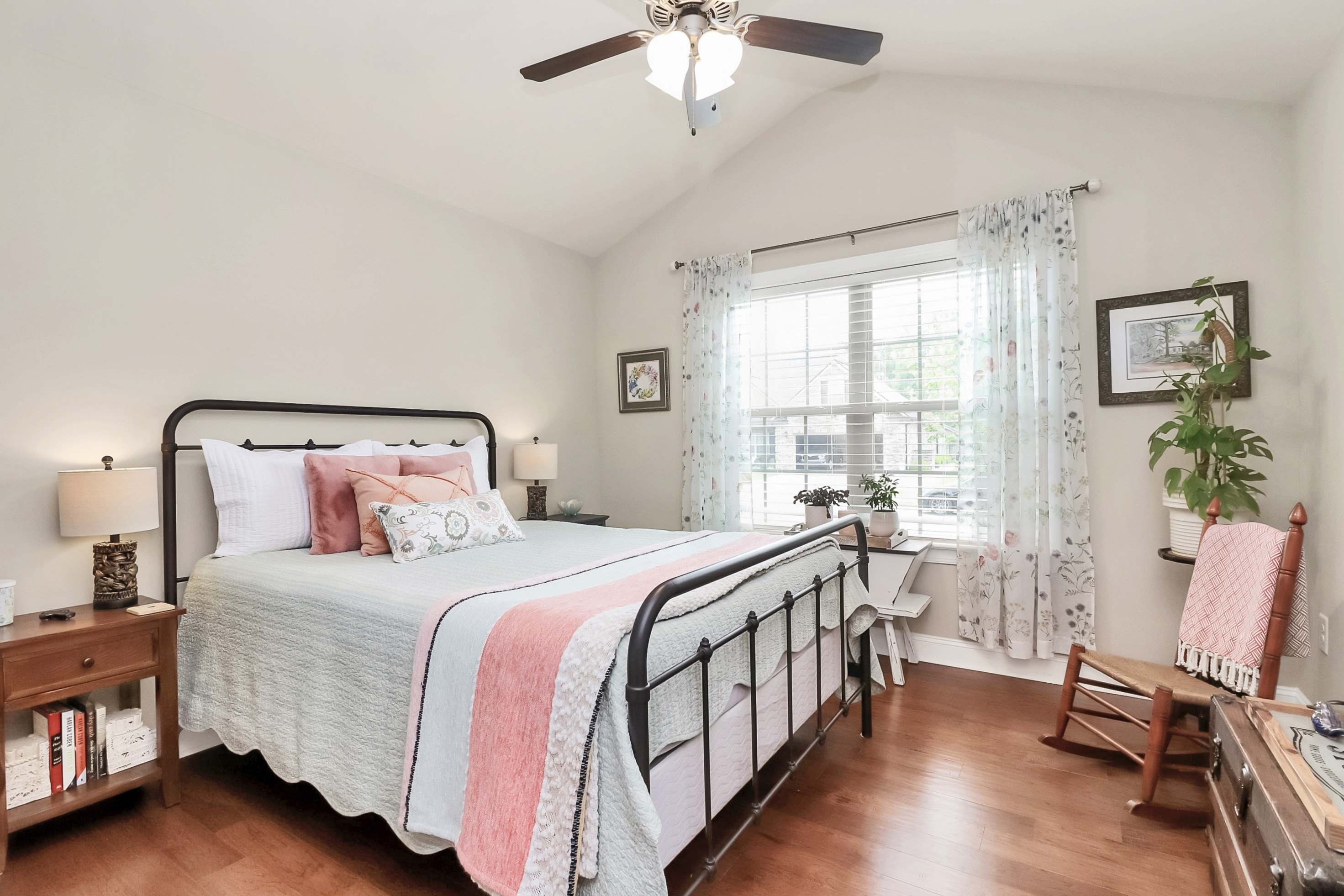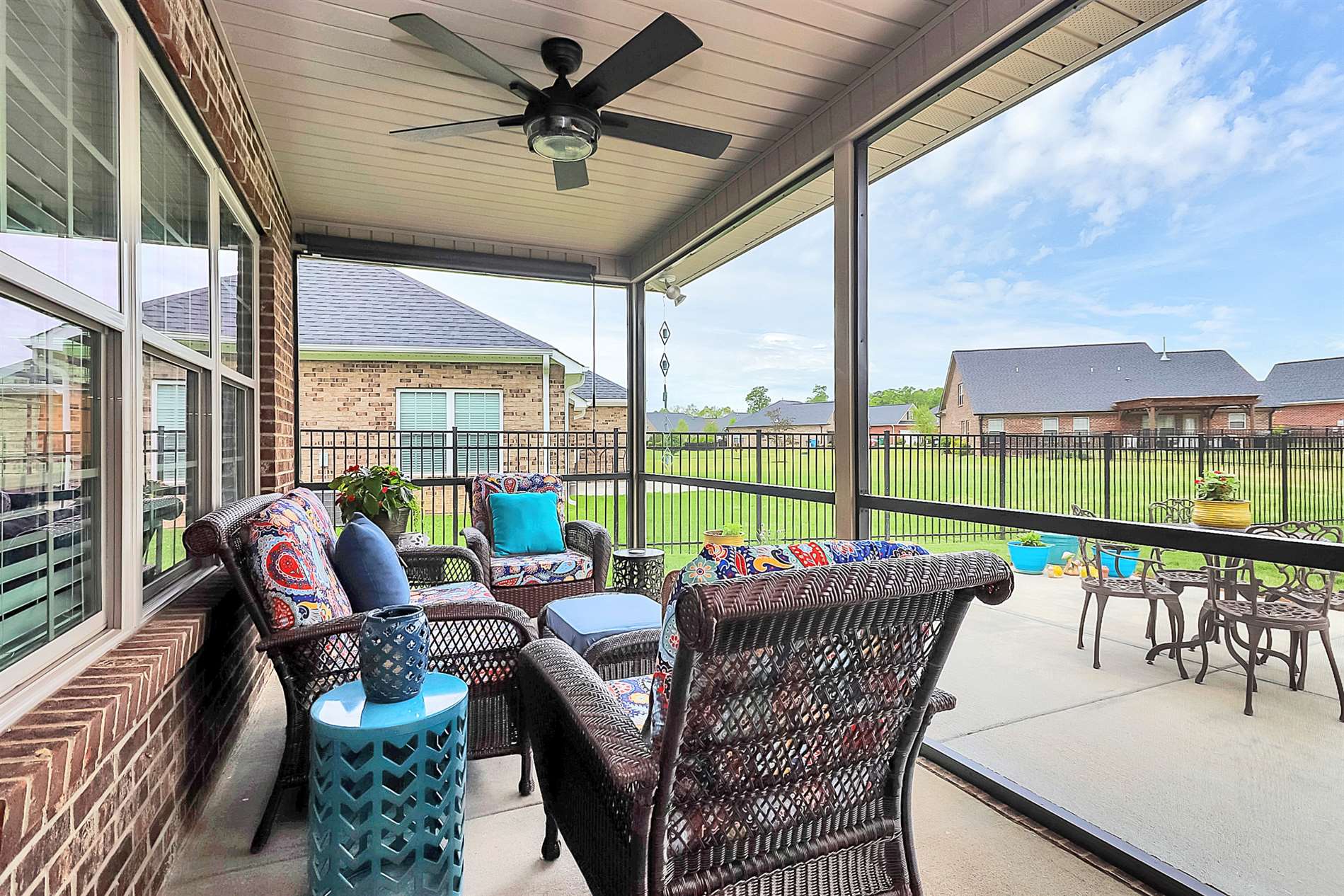 Uncover the allure of this charming brick ranch nestled in Crooked Creek Estates. Inside, the great room, kitchen, and dining area boast high ceilings that foster a welcoming ambiance, ideal for gatherings or unwinding. The kitchen is a delight, featuring a tiled backsplash, granite countertops, stainless steel appliances, and soft-close drawers. The primary bedroom suite ensures comfort and privacy with two spacious closets, double vanities, a separate shower and tub, a linen closet, and a water closet. The sought-after split-bedroom layout guarantees individual space for everyone. Don't overlook the impressive closet systems! The fenced backyard serves as a fantastic retreat, complete with a large patio and a screened porch, perfect for savoring summer evenings. The newly landscaped yard includes buried drainage systems, along with an extended driveway and sidewalk. The home is carpet-free and comes equipped with an HVAC air purifier (2024). The refrigerator is also included. Conveniently, Crooked Creek Park is just around the corner!