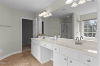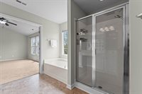 plus a large storage room with potential to be converted into a home theater or media room—ideal for guests, in-laws, or entertainment. Upstairs, the expansive primary suite offers dual vanities, a walk-in shower, and a soaking tub. Step out onto your newly