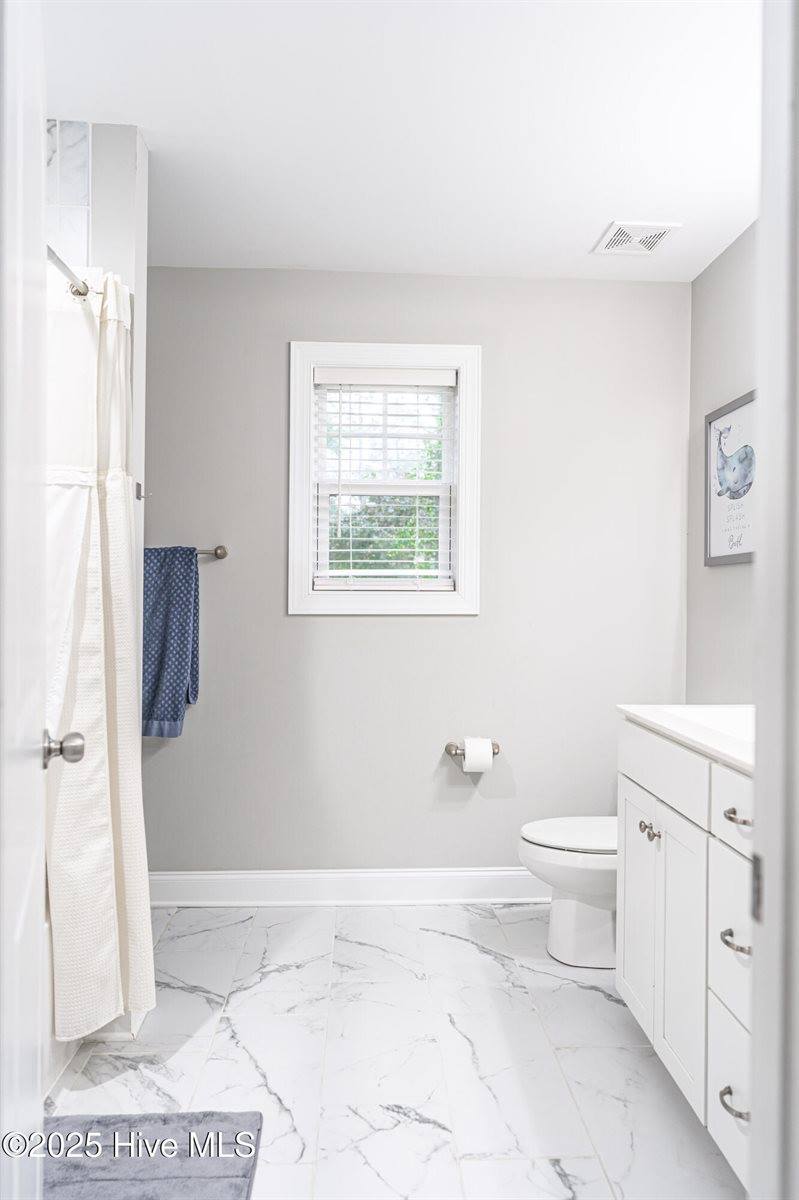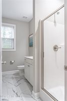 an oversized tiled shower and a garden tub. The backyard includes a fully fenced backyard with an inviting deck perfect for enjoying the Carolina sunshine.