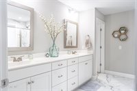 generously sized bedrooms. The two guest bedrooms share a well-appointed full bathroom. The spacious primary bedroom, also located on the second floor, is a true sanctuary. Its expansive layout provides a peaceful escape, leading to a large bathroom featuring