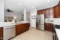 Don't miss out on this updated townhome in coveted gated community of Draymoor Manor! Excellent North Raleigh location & schools. 3 minutes to I-540 & Leesville schools, walk to shopping center & restaurants. Hardwood flooring throughout main living area & ceramic tiled kitchen area. Updated backsplash and quartz counters, kitchen Island w/Breakfast Bar as well as eat in area. 1st floor office with custom built in and desk along with french doors for privacy. Primary Suite w/Vaulted ceiling & large WIC. Dual vanities, Garden Tub w/separate shower. 2 additional bedrooms, one with terrace access! Don't miss the 3rd floor Bonus area! Perfect for extra living area/bedroom, nice and bright with skylights and electronic shades! Relax in the private outdoor living space w/patio & fenced backyard!