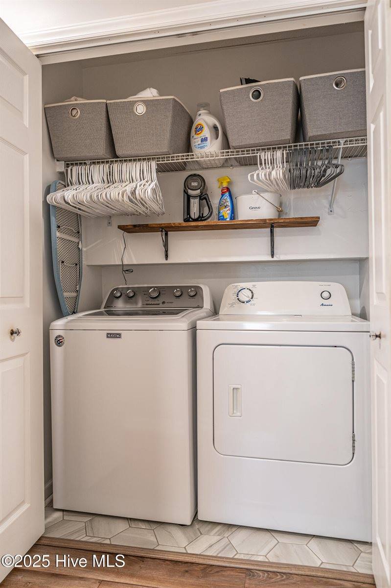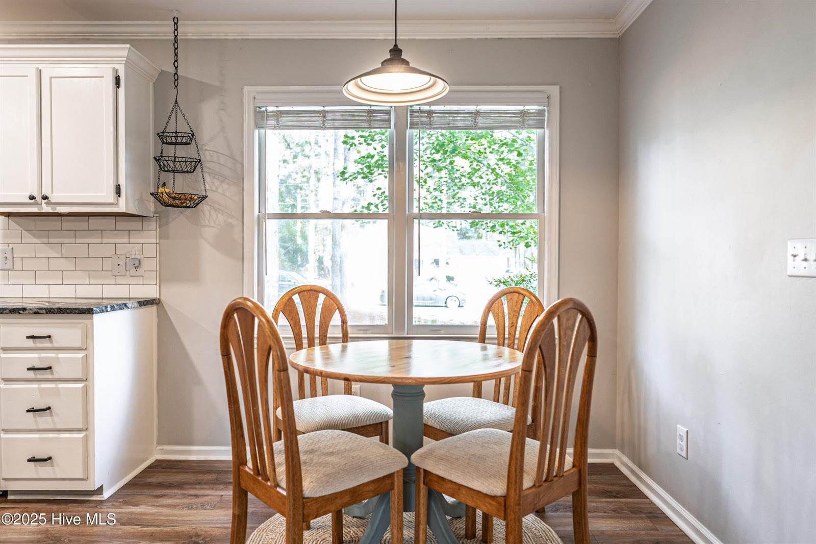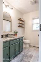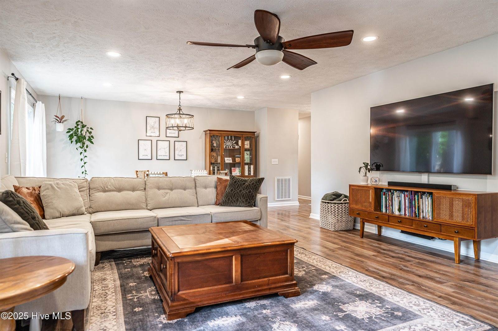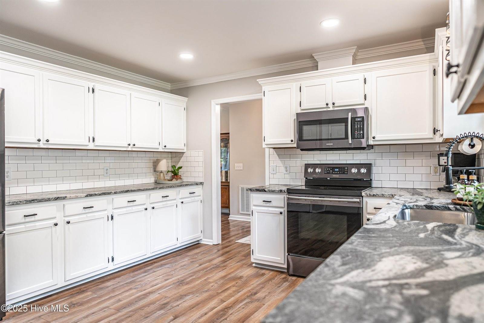 boasts ample counter space, crisp cabinetry, and an eat-in dining area-ideal for everyday meals or entertaining.Both bathrooms have been tastefully renovated with modern finishes, creating fresh and stylish spaces. Luxury vinyl plank (LVP) flooring flows seamlessly
