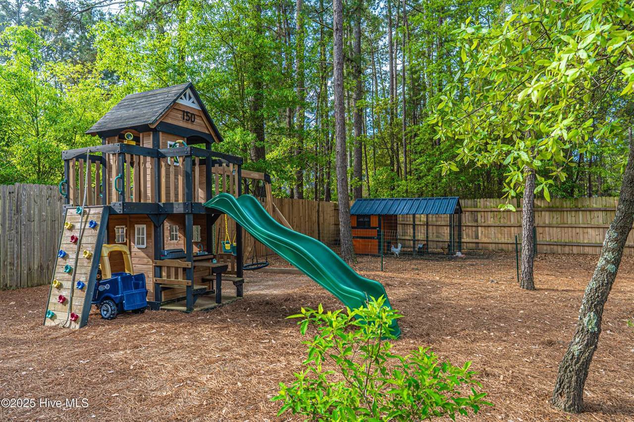 throughout the home, offering durability and a cohesive aesthetic.Step outside to enjoy a fully fenced backyard designed for both relaxation and utility. Features include a spacious chicken coop, a cozy fire pit area, beautifully landscaped gardens, and a