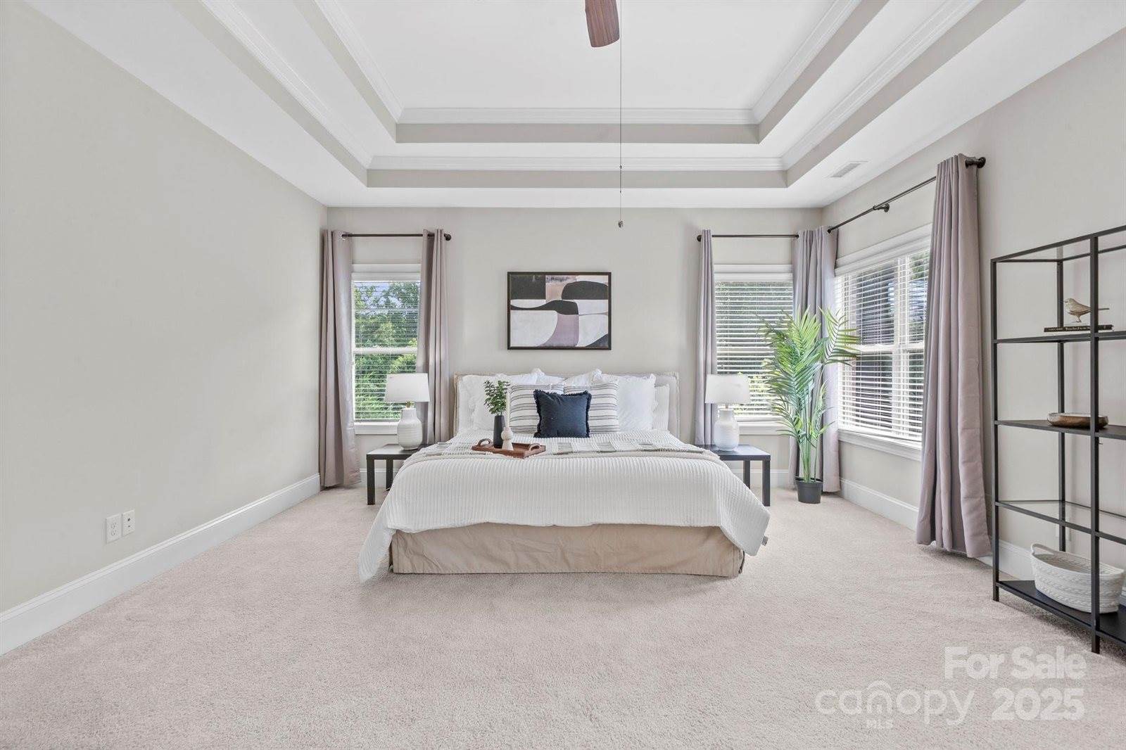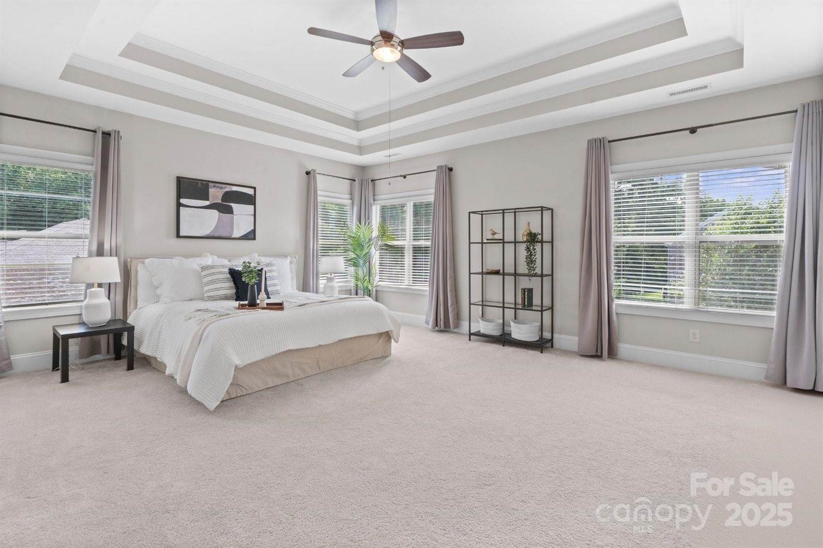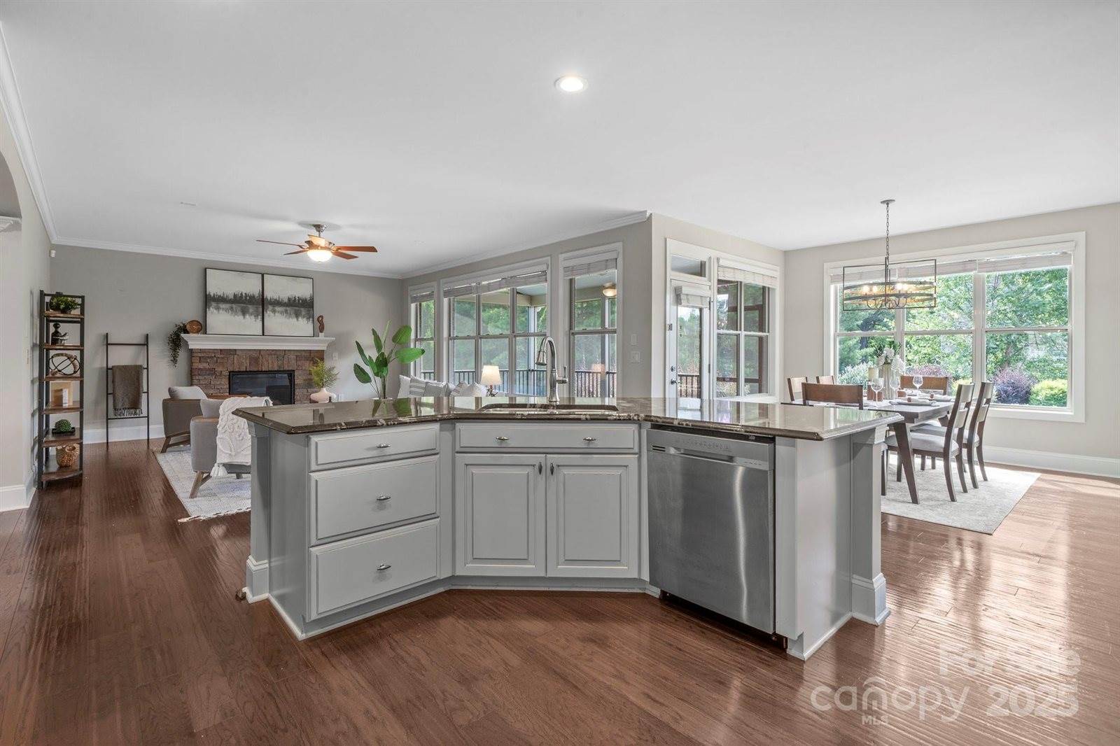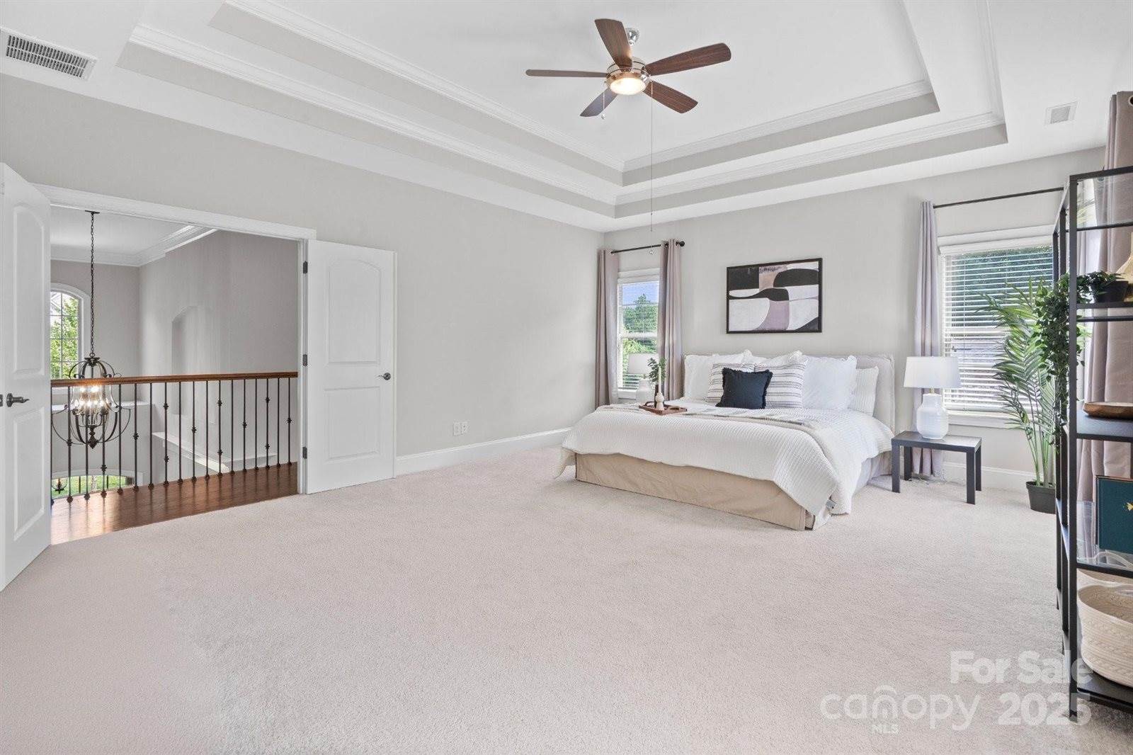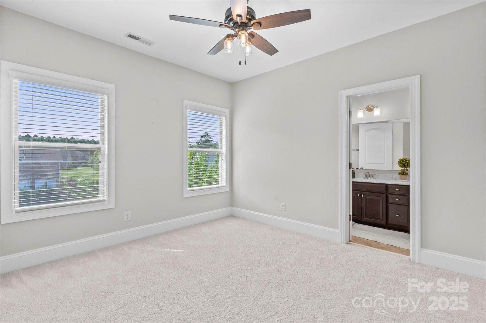 cabinetry w/great storage, large island w/seating, & upgraded granite. A main-floor bedroom & bath adds convenience. The primary suite is appointed w/double tray ceiling, lavish spa bath, & walk-in closet w/built-ins. All bedrooms are spacious & have direct