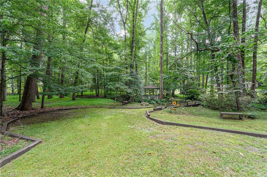 city. The property features a creek, multiple walking paths, foot bridges, a gazebo and areas gardening. A quiet retreat on a dead end street! Step inside to discover the spacious layout featuring a vaulted ceiling, stone fireplace, and custom built-in shelving