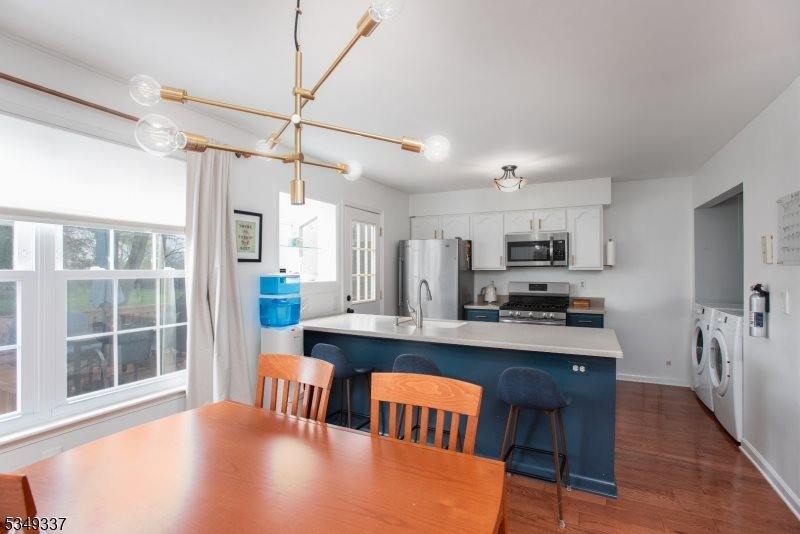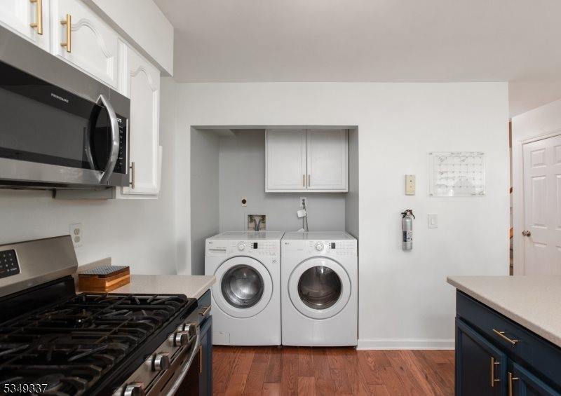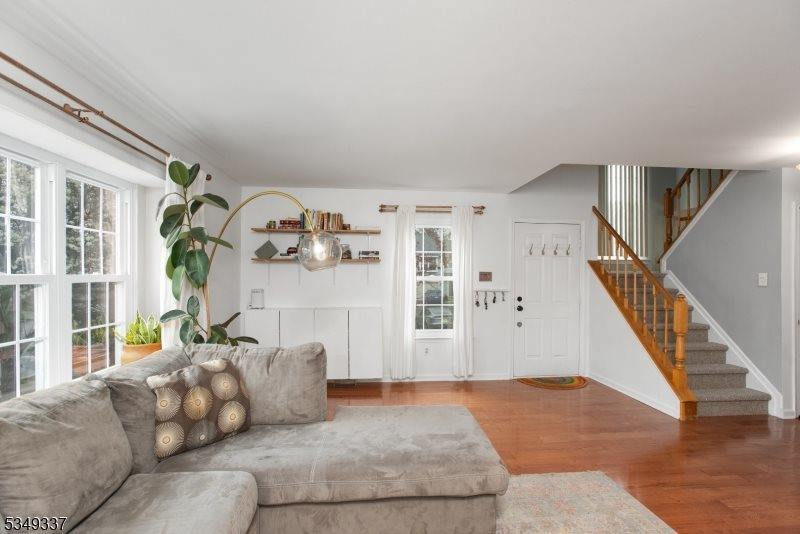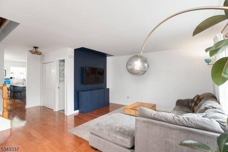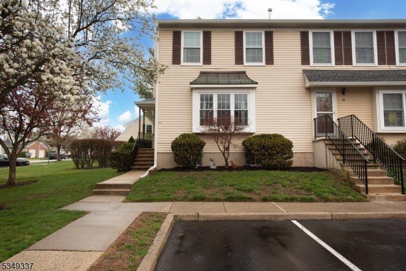 This stunning end-unit townhouse is a true gem with views of the golf course. Gleaming hardwood floors throughout 1st floor. Spacious living room has an abundance of natural light and built-in cabinet. Updated kitchen w/SS appliances, huge breakfast bar seats 4 and access to deck. Adjoining dining room has new built-in cabinetry and open shelving perfect for all your entertaining needs. Powder room renovated 2021. Upper level features all new carpet 2023. Primary bedroom has 2 double closets & ensuite bath w/stall shower. Bedrooms 2 and 3 are sun-filled and offer views of golf course. Finished basement features a spacious rec room that can be used as a media room (currently used as a playroom) and the versatility of the Office/Gym has plenty of space for work and for working out. Basement has separate electric baseboard heat. Enjoy the outdoors on your private deck and resident access to Association pool and tennis courts. Clubhouse is available for additional fee. 2 dedicated parking spots in front of your home. Minutes to golf, retail & grocery shopping and close to NJ Transit and Hospitals.