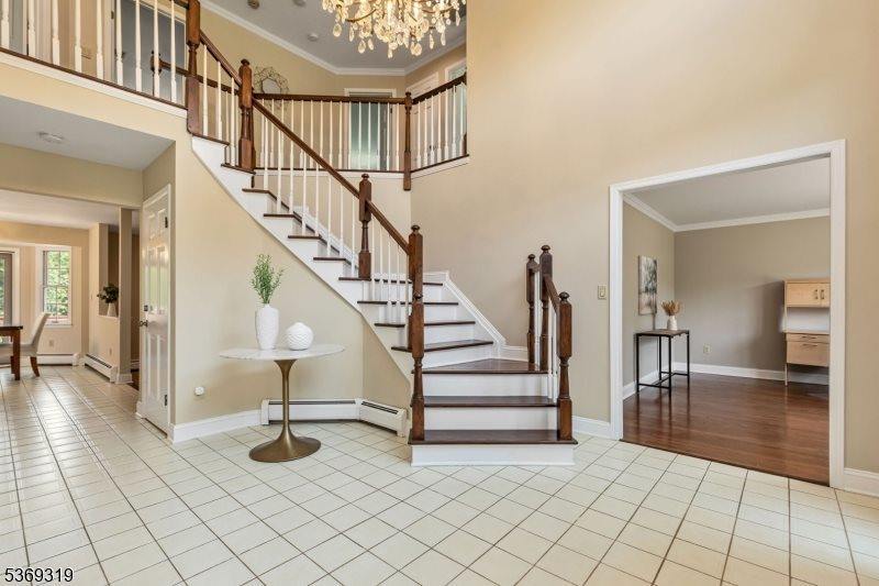 Beautiful Colonial home nestled on a peaceful cul-de-sac in a desirable neighborhood just 1.5 miles from the Millington Train Station perfect for NYC commuters. This spacious home features 4/5 bedrooms and 3.5 baths, including a stunning new primary bathroom and an updated hall bath. The freshly painted interior welcomes you with a large, bright two-story foyer and an open floor plan ideal for entertaining. A bright first-floor office provides the perfect work-from-home space. The living room boasts a gorgeous vaulted ceiling that adds an airy, elegant feel, while the family room offers a cozy gas fireplace. The spacious kitchen features freshly painted cabinets and new stainless steel appliances. The finished walk-out basement expands your living space with a wet bar, full bath, cedar room, entertainment area, rec room, and more great for relaxing or hosting guests. Additional highlights include a multi-zone HVAC system, central vacuum, gas fireplace, and an underground sprinkler system to keep your yard looking its best. Enjoy the large deck and spacious backyard for the best in outdoor living. This inviting Colonial blends comfort, style, and convenience ready for you to move in and make it your own!