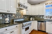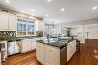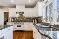 floods the space with light. The kitchen boasts pristine white cabinetry, stainless steel appliances, and stone countertops. The main level is thoughtfully completed with a powder room, a convenient laundry room, and a first-floor bedroom with nearby full