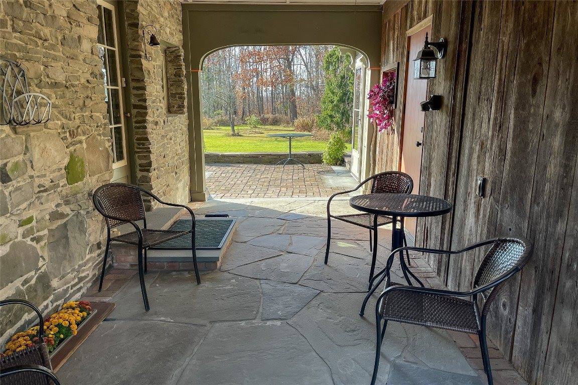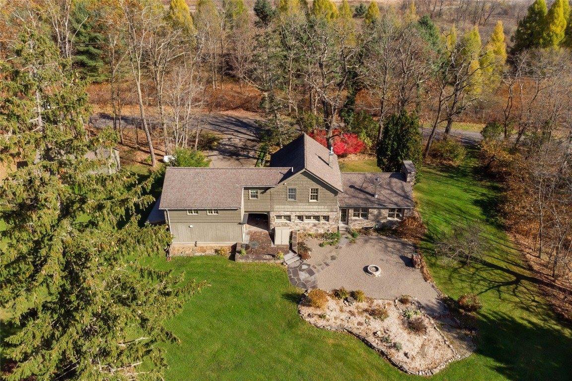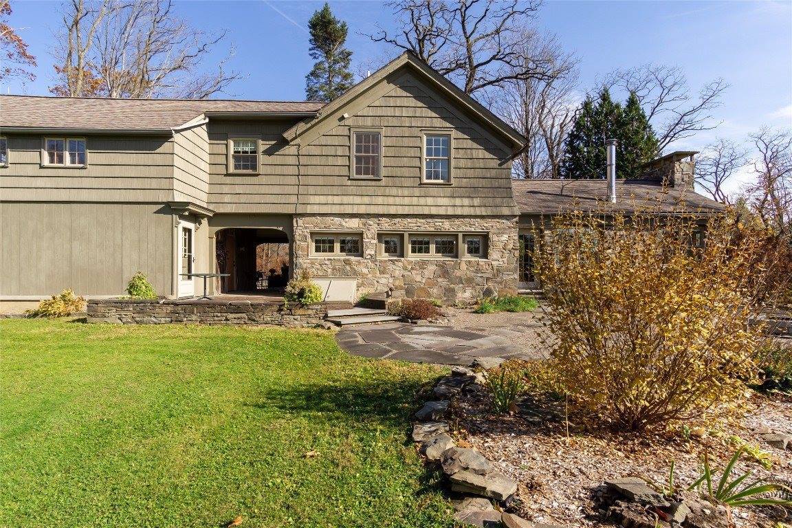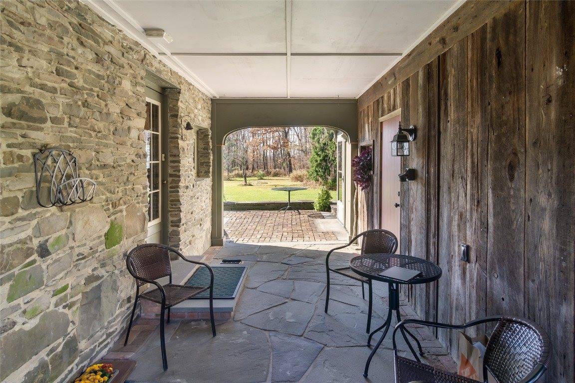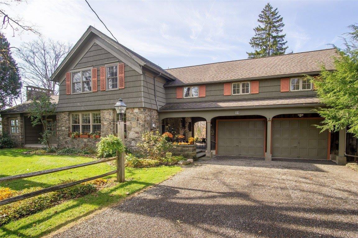 This French-inspired country farmhouse with charming stone and cedar shingle exterior has been tastefully restored to echo the era of the original home. Meaningful and energy efficient upgrades are added values. The galley kitchen boasts custom, solid pine cabinets with a wall of windows overlooking the oversized backyard. A large primary bedroom with a dressing room enjoys a private stairway to the patios. There is an attached two-car garage with a breezeway that leads to brick and stone terraces with a fire pit where you're invited to enjoy sunsets and make memories. Perennial gardens keep the colors of a painter's palette blooming throughout each season. A small outbuilding completes the features of this country setting. Come appreciate the quality and attention to detail that add to the aesthetics of this unique home. Do not delay, call for a private showing today.