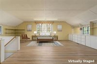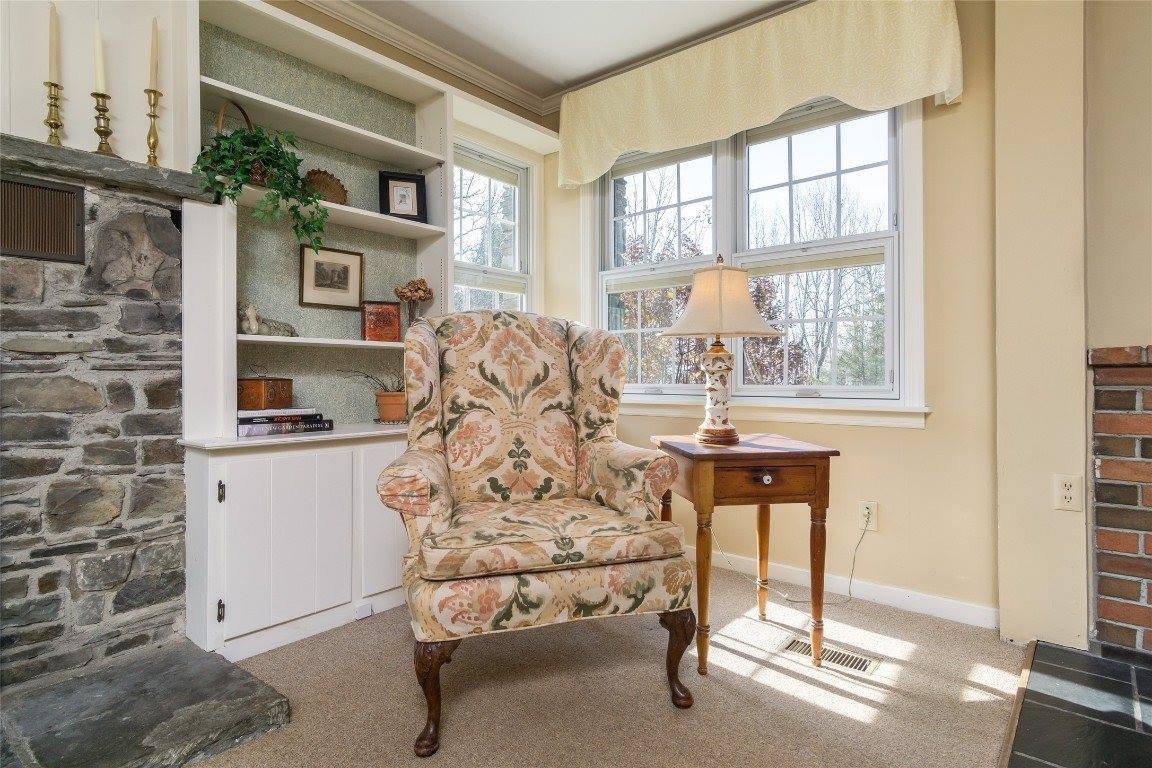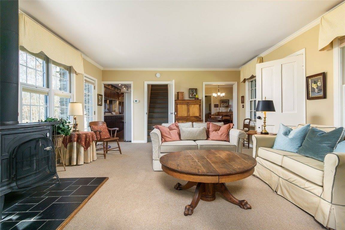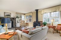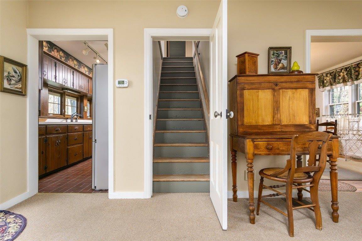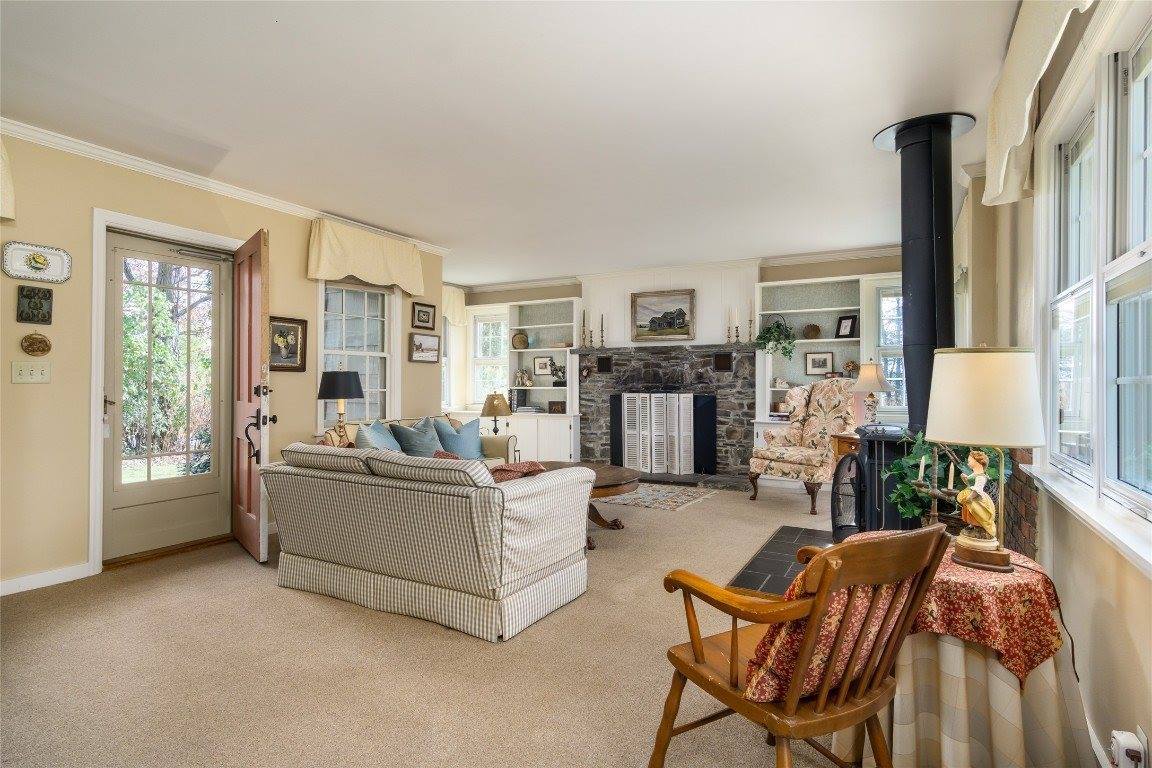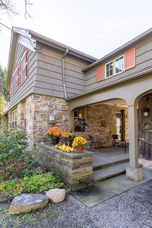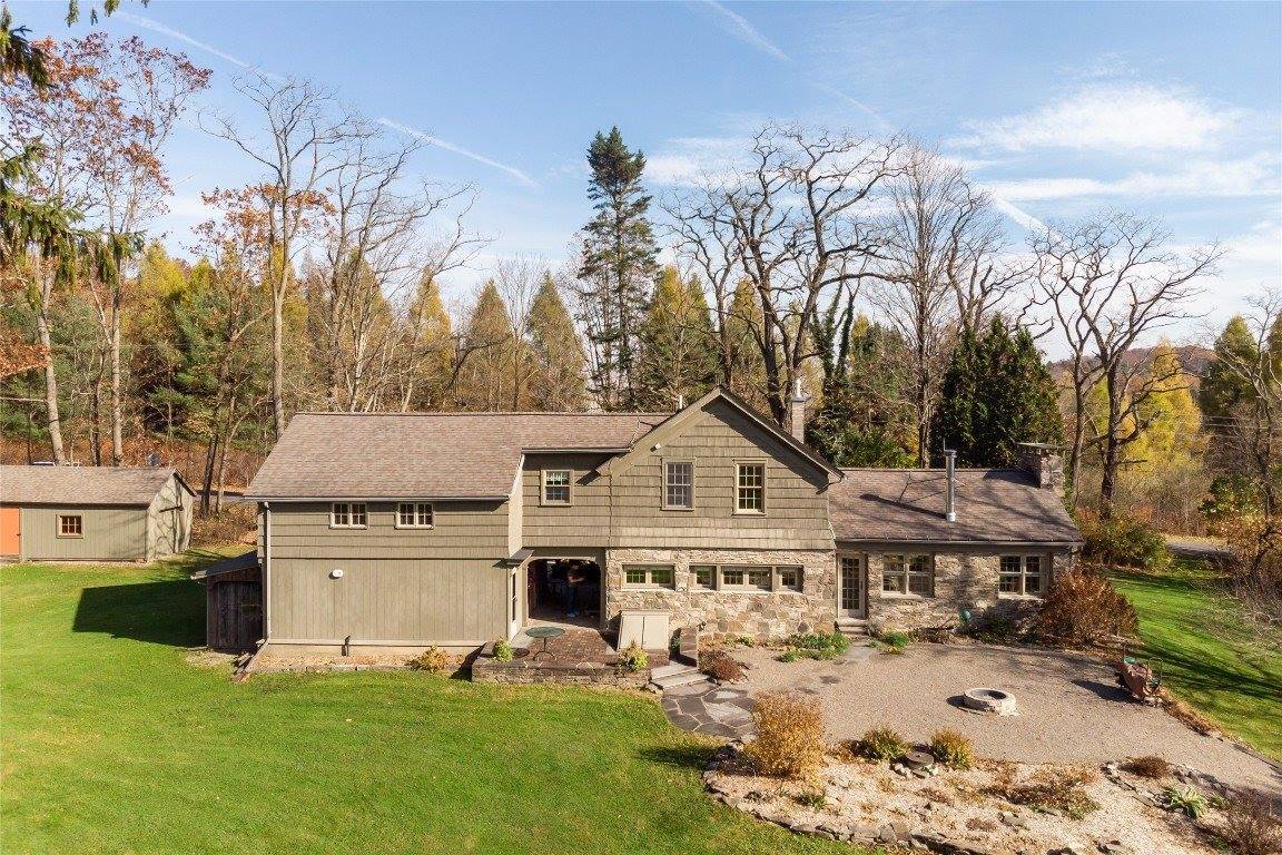 This French-inspired country farmhouse with charming stone and cedar shingle exterior has been tastefully restored to echo the era of the original home. Meaningful and energy efficient upgrades are added values. The galley kitchen boasts custom, solid pine cabinets with a wall of windows overlooking the oversized backyard. A large primary bedroom with a dressing room enjoys a private stairway to the patios. There is an attached two-car garage with a breezeway that leads to brick and stone terraces with a fire pit where you're invited to enjoy sunsets and make memories. Perennial gardens keep the colors of a painter's palette blooming throughout each season. A small outbuilding completes the features of this country setting. Come appreciate the quality and attention to detail that add to the aesthetics of this unique home. Do not delay, call for a private showing today.