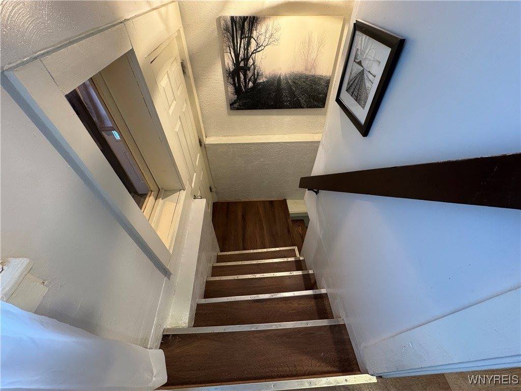 all newer appliances included, 1/2 bath. ~ Spacious front foyer leads up to the 2nd floor. 3 bedrooms, shiny wood floors and full bath with newer walk-in tiled shower. Walk up stairs to attic. ~ Super finished basement with laundry room, huge living space