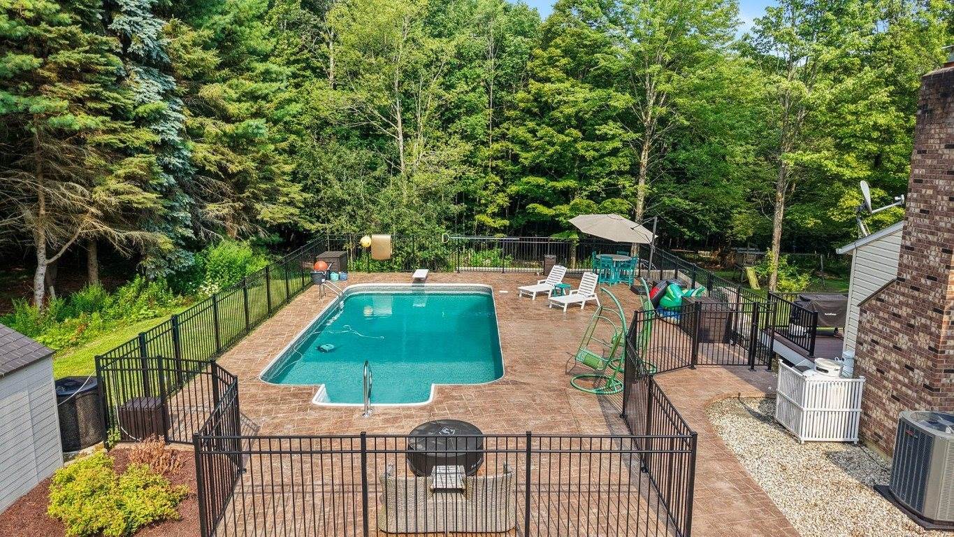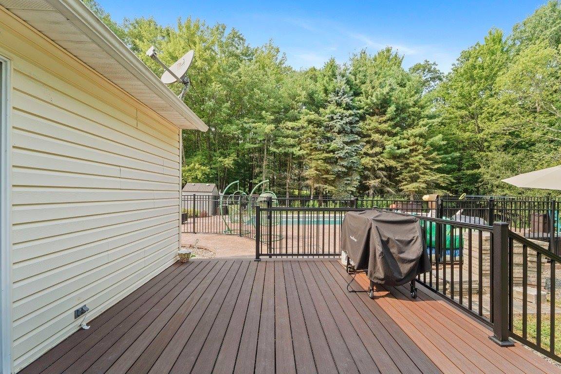 The newly finished lower level is perfect for entertaining, complete with ample space for gatherings. Step outside to enjoy your brand-new Trex deck, ideal for relaxation and outdoor entertaining, overlooking your private 2-acre lot. Cool off and unwind in