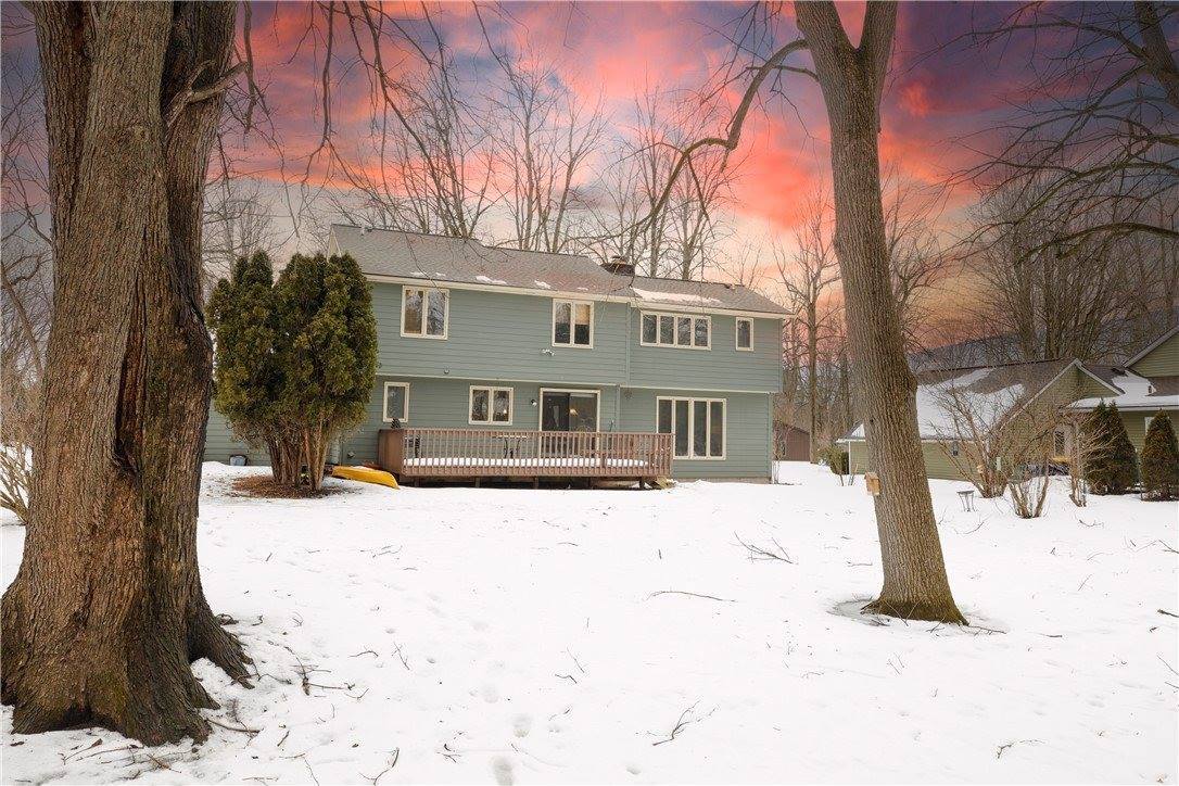Discover this fabulous 4-bedroom, 2.5-bath home offering the perfect blend of charm, space, and convenience! Nestled on a quiet cul-de-sac with beautiful homes and mature trees, this property is just minutes from the canal, village, and expressway—making it an unbeatable location! Step inside to a striking 2-story foyer that sets the tone for this thoughtfully designed home. Unlike the typical center entrance Colonial, this layout offers a refreshing and functional flow. Enjoy cozy evenings by the double-sided fireplace. Vaulted ceilings and tall windows enhance the living space. Storage is never an issue with ample closets throughout. The roof was a tear-off in 2019 and adds peace of mind, while Fairport Electric provides incredible savings! A 2-car garage and inviting outdoor setting with beautiful perennials complete the package! This home has been incredibly well maintained and can't wait for you to call it home! Showings begin Thursday February 27th. Open House Sunday March 2, 1:00-3:00. Negotiations begin Monday March 3 at 4:30pm.