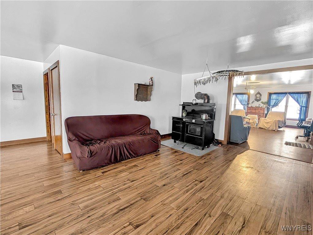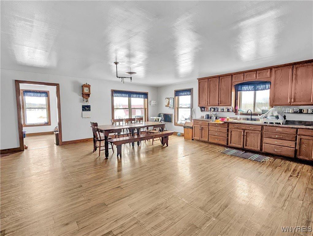 for livestock or equestrian use. At the heart of the property sits a 4,496 sq. ft. farmhouse featuring seven bedrooms and two bathrooms, offering ample space for various living arrangements. The home boasts a spacious living room, a dedicated office, and a