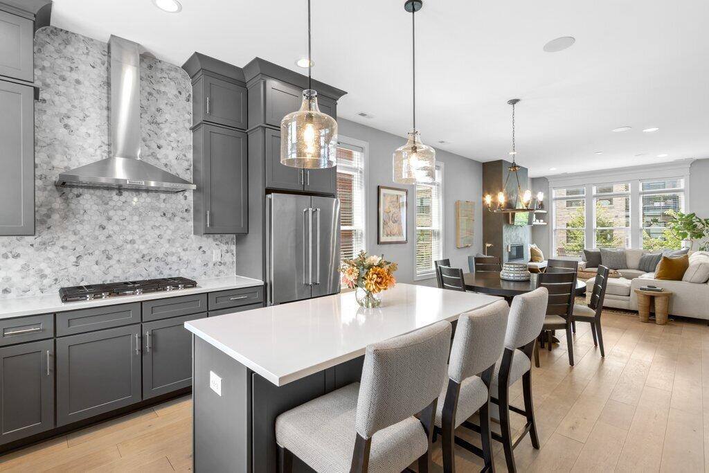 experience in one of the city's most sought-after neighborhoods. Step inside and be immediately greeted by a spacious, light-filled open-concept living area with a stunning floor to ceiling custom fireplace. The kitchen is a true chef's dream, featuring a