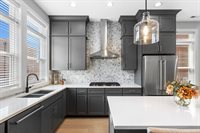 striking quartz waterfall island, top-of-the-line appliances, a walk-in pantry, and a stunning marble backsplash. Whether you're entertaining guests or enjoying a quiet evening, this kitchen is a focal point that will impress every time. Each of the bedrooms