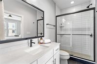 are generously sized and boasts its own dedicated full bathroom, offering comfort and privacy. The contemporary finishes and thoughtful design details are present throughout, from the sleek flooring to the modern fixtures. A standout feature of this home is