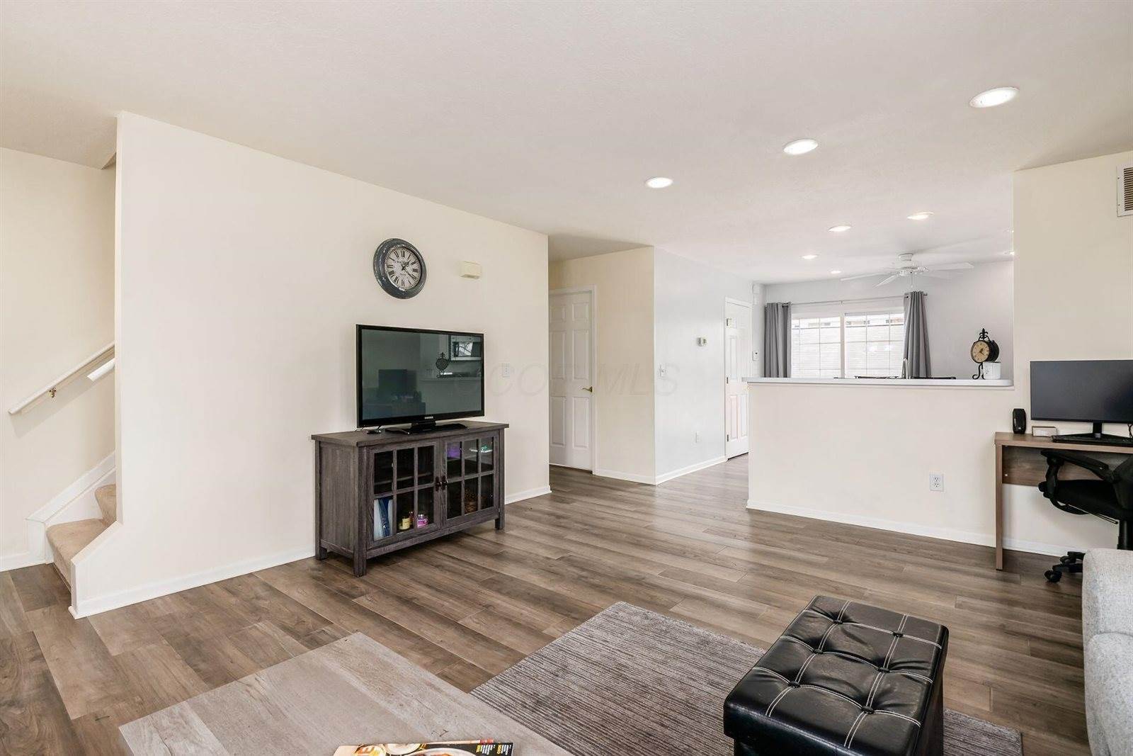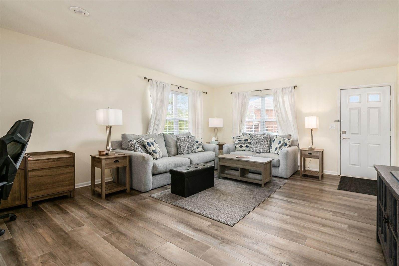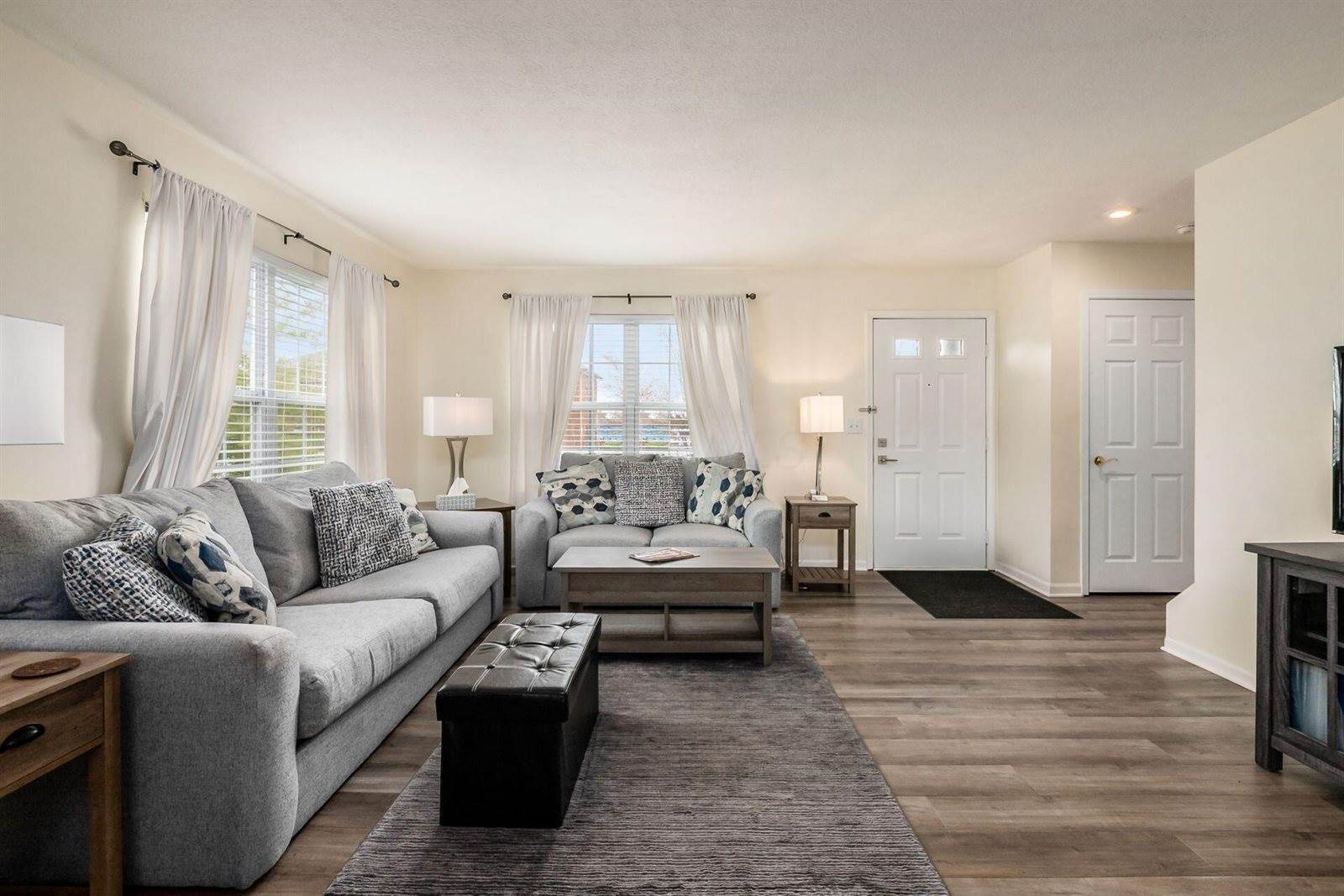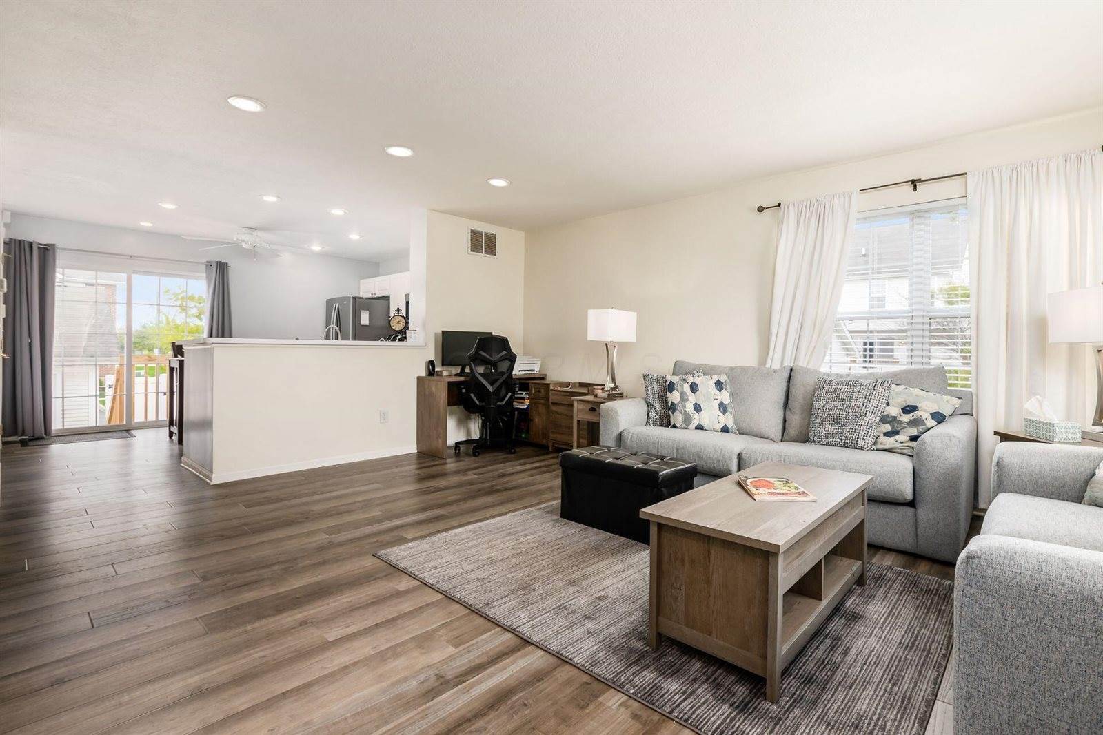 Step into this spacious, open-floor condo in Hartford Village! Once inside you feel light & airy from the flood of natural light & neutral paint & brand new LVP 100% waterproof flooring. The open concept entry level flows nicely into the bright white kitchen with walk-in pantry. The kitchen features all new Whirlpool & Maytag appliances. Reverse Osmosis Water filtratation. The enclosed back patio, a perfect spot to entertain this summer. Upstairs, both bedrooms offer updated, spa-like bathrooms & walk-in closets. A finished basement is the perfect spot for cozy couches TV & a table to play board games. Guest bath on this level, some hidden storage under steps & a nice sized laundry/storage room. Newer On-Demand water heater (2022) Includes a one-car garage plus an off-street parking spo