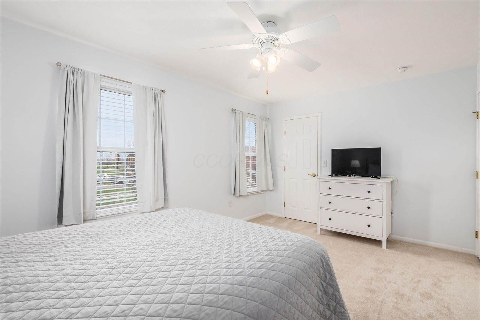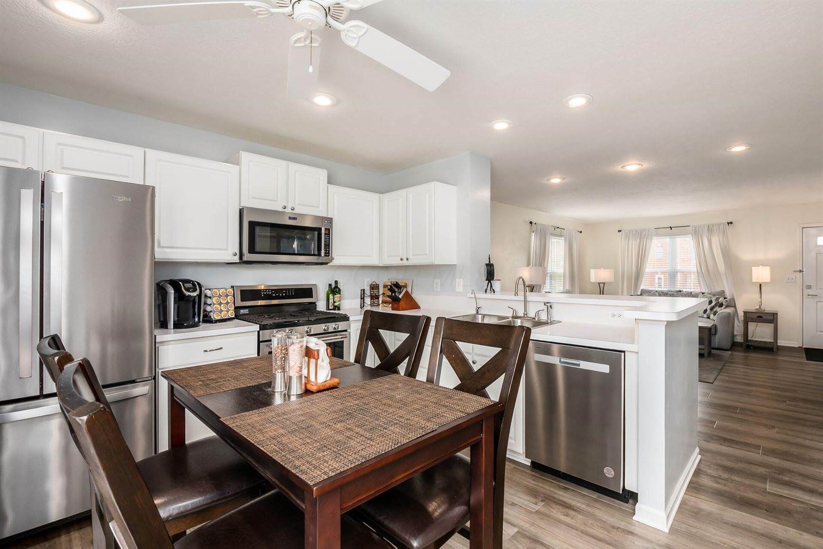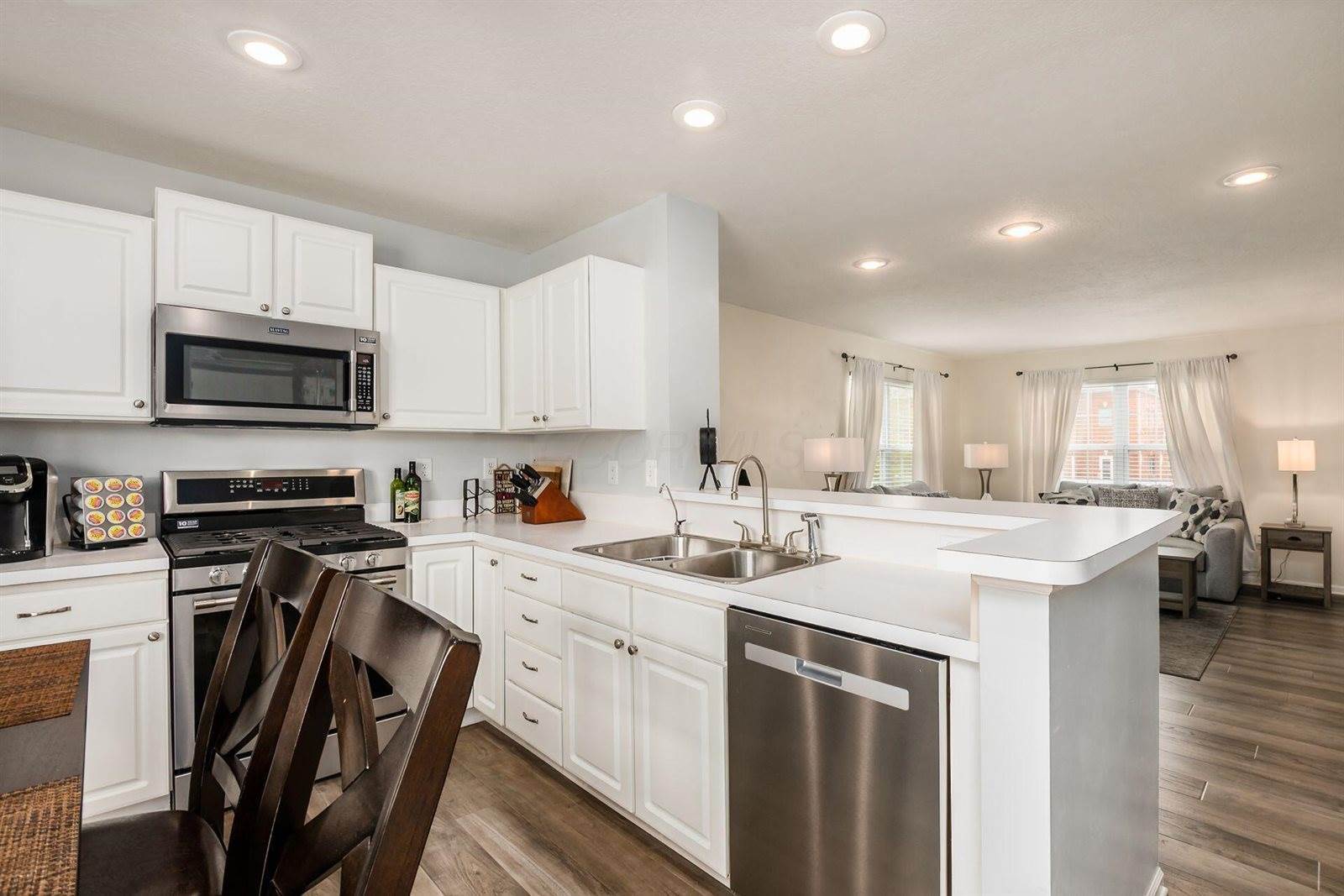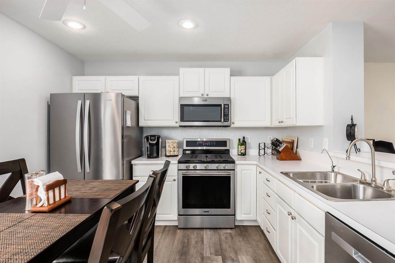 Step into this spacious, open-floor condo in Hartford Village! Once inside you feel light & airy from the flood of natural light & neutral paint & brand new LVP 100% waterproof flooring. The open concept entry level flows nicely into the bright white kitchen with walk-in pantry. The kitchen features all new Whirlpool & Maytag appliances. Reverse Osmosis Water filtratation. The enclosed back patio, a perfect spot to entertain this summer. Upstairs, both bedrooms offer updated, spa-like bathrooms & walk-in closets. A finished basement is the perfect spot for cozy couches TV & a table to play board games. Guest bath on this level, some hidden storage under steps & a nice sized laundry/storage room. Newer On-Demand water heater (2022) Includes a one-car garage plus an off-street parking spo