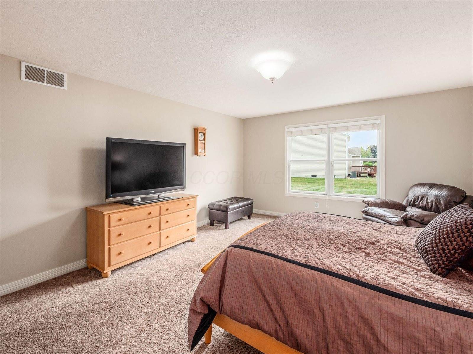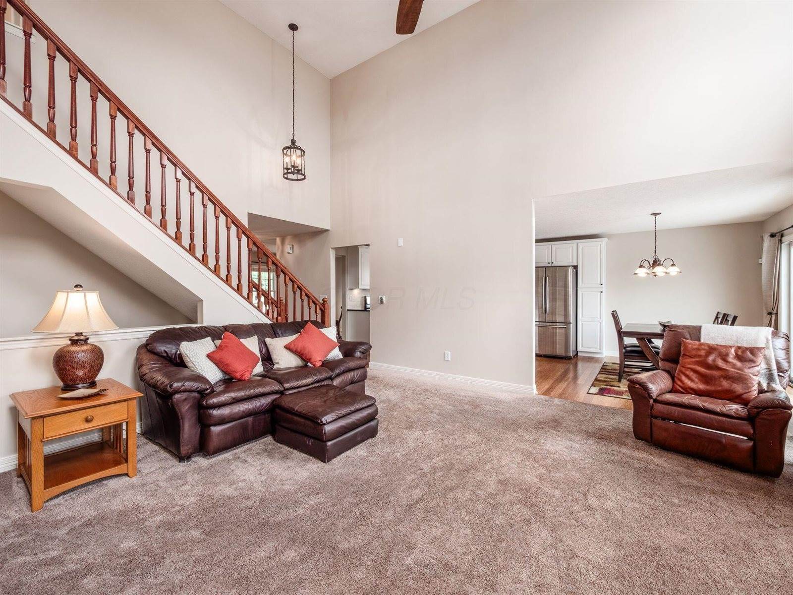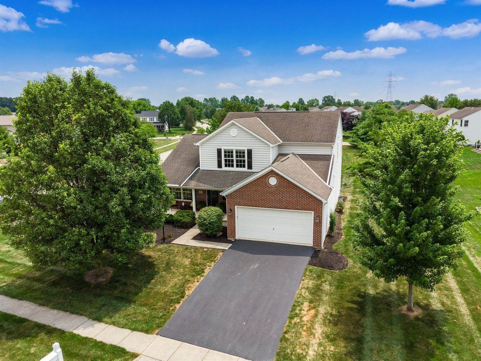 This beautifully updated home has it all—fresh paint throughout, granite countertops, and stylish bathrooms with modern finishes. The main level features an open-concept design with a stunning two-story great room, gas fireplace, and abundant natural light. The kitchen includes stainless steel appliances, a ceramic tile backsplash, a breakfast nook, and a separate formal dining room—ideal for both casual meals and entertaining. The spacious owner's suite is conveniently located on the main floor and includes a large walk-in closet and a private bath with double sinks, a jetted tub, and a separate shower. You'll also find a half bath and laundry room on the first floor for added convenience. Upstairs offers a flexible loft space that can be used as an office or easily converted into a fourth bedroom. Two additional bedrooms and a full bath complete the upper level. Need more space? The full basement includes a rough-in for a future bathroom and is ready to finish to your needs. Enjoy the outdoors on a large composite deck overlooking a huge backyard—perfect for relaxing or entertaining. Located directly across from Glen Oak Elementary and just minutes from Polaris Fashion Place, Alum Creek State Park, North Orange Park, and more. Whether you're looking for single-level living with bonus space or room to grow, this home checks every box. Truly move-in ready—just unpack and enjoy!