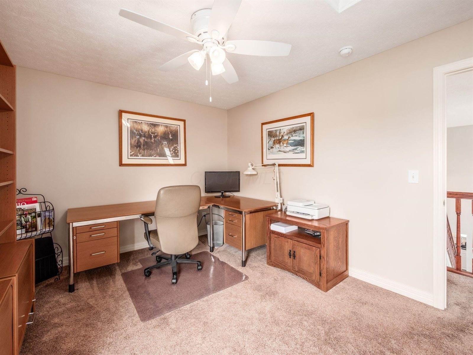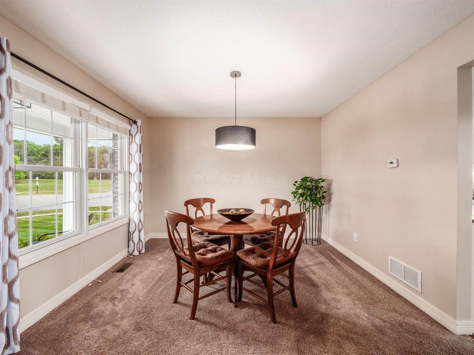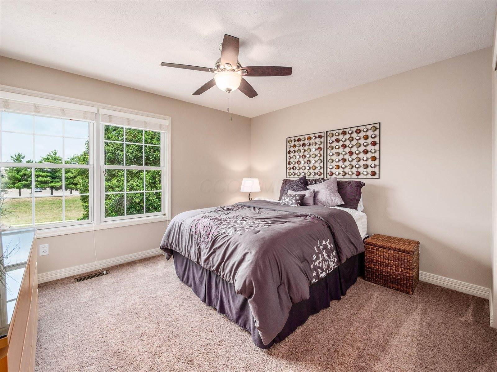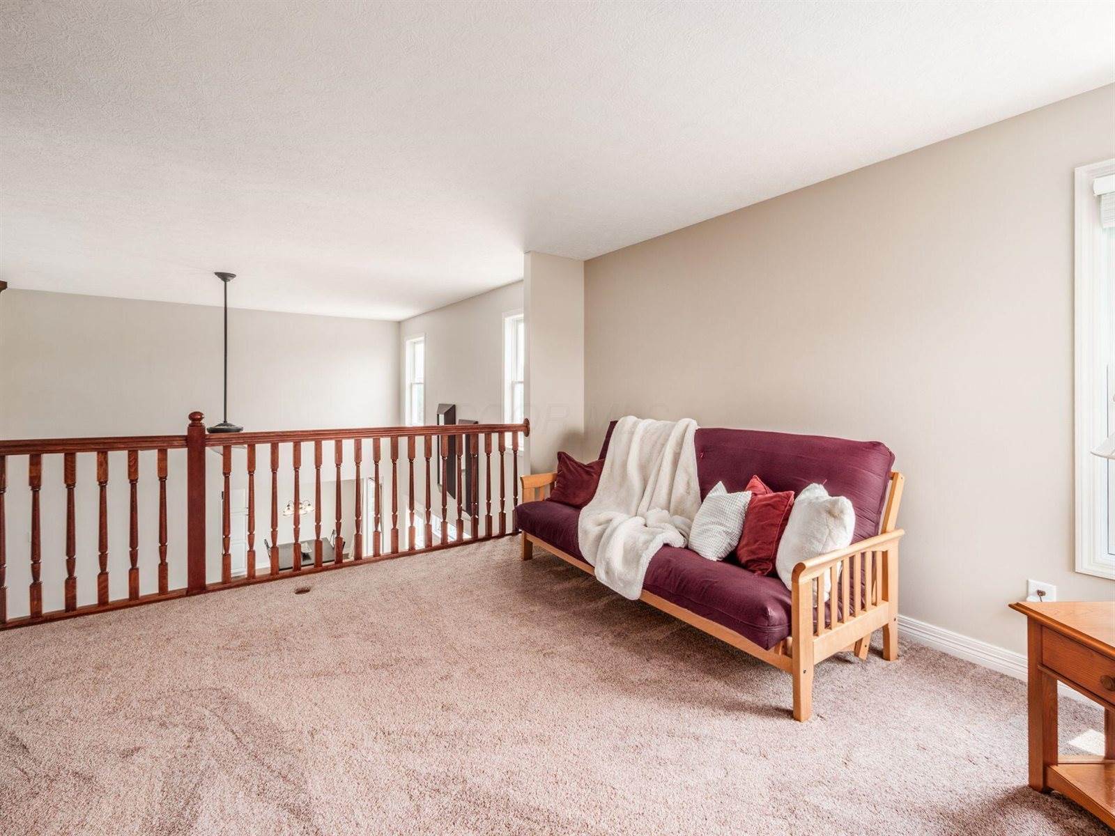 This beautifully updated home has it all—fresh paint throughout, granite countertops, and stylish bathrooms with modern finishes. The main level features an open-concept design with a stunning two-story great room, gas fireplace, and abundant natural light. The kitchen includes stainless steel appliances, a ceramic tile backsplash, a breakfast nook, and a separate formal dining room—ideal for both casual meals and entertaining. The spacious owner's suite is conveniently located on the main floor and includes a large walk-in closet and a private bath with double sinks, a jetted tub, and a separate shower. You'll also find a half bath and laundry room on the first floor for added convenience. Upstairs offers a flexible loft space that can be used as an office or easily converted into a fourth bedroom. Two additional bedrooms and a full bath complete the upper level. Need more space? The full basement includes a rough-in for a future bathroom and is ready to finish to your needs. Enjoy the outdoors on a large composite deck overlooking a huge backyard—perfect for relaxing or entertaining. Located directly across from Glen Oak Elementary and just minutes from Polaris Fashion Place, Alum Creek State Park, North Orange Park, and more. Whether you're looking for single-level living with bonus space or room to grow, this home checks every box. Truly move-in ready—just unpack and enjoy!