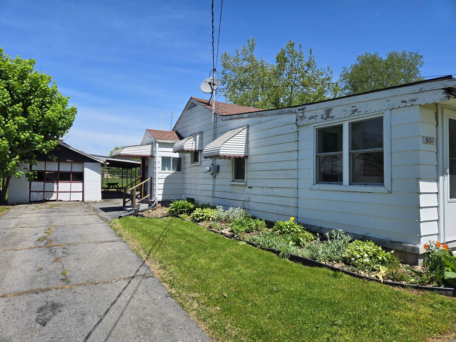This home features 2 bedrooms and 2 functional bathrooms with 1 on main floor and 1 in basement, property located near PA border. Opportunity awaits as an investment or if you are looking for a new renovation/remodeling project while residing in it. The home features an enclosed front porch, small mud room from side entrance, central air, and a detached garage with attached carport. Bedroom and dining room features vintage cabinetry. Ceiling fan in kitchen, dining room, and bedrooms. The basement has potential for additional living space and was waterproofed in 2019. Updates or replacement of roof, furnace, electric and water heater are unknown. Windows have been replaced from original windows, date unknown. This home offers a great opportunity to explore your creativity and add your personal touch! Schedule your showing now!