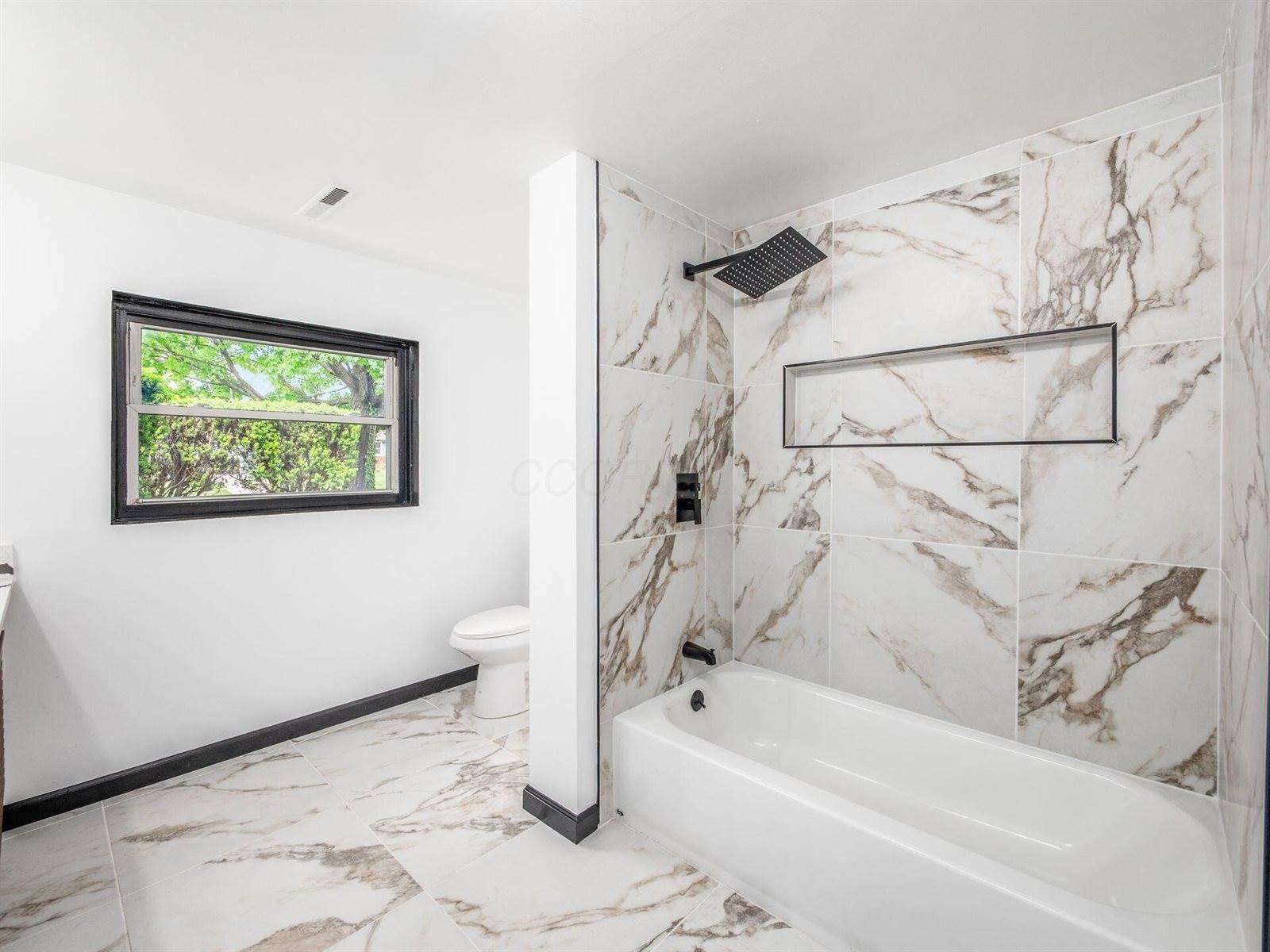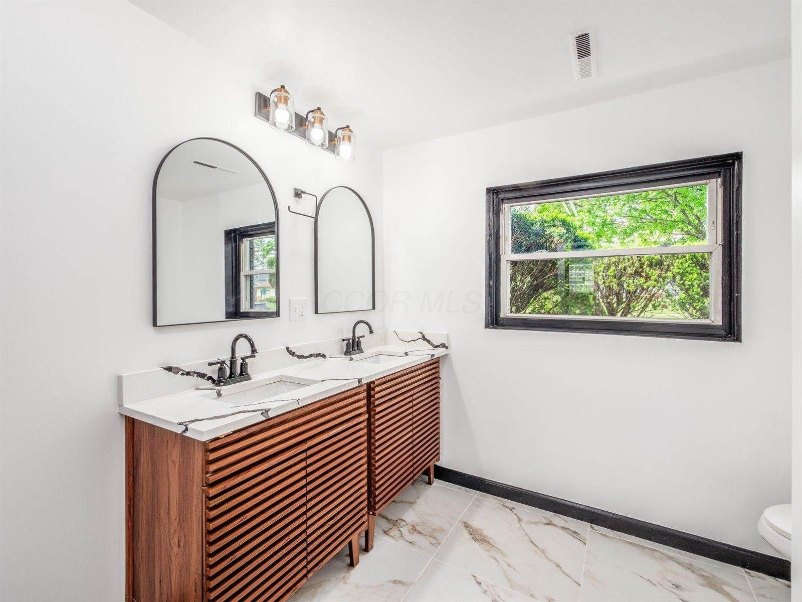 This remodeled home in Reynoldsburg is a must see! Offering 3 levels of finished living space, 1 car garage and a fenced yard. Tastefully updated throughout with fresh paint, new flooring, new kitchen with stainless steel appliances and quartz counter