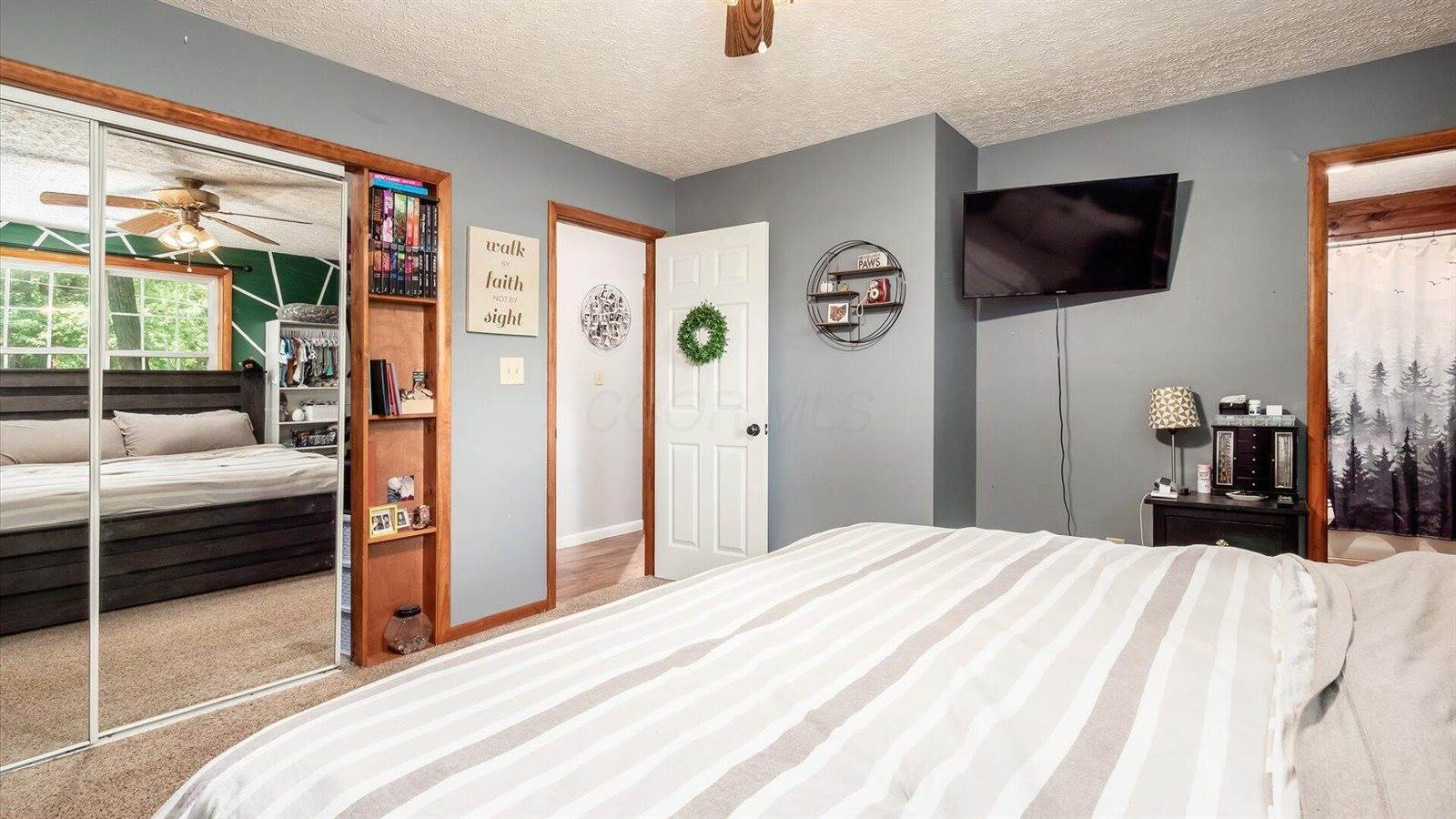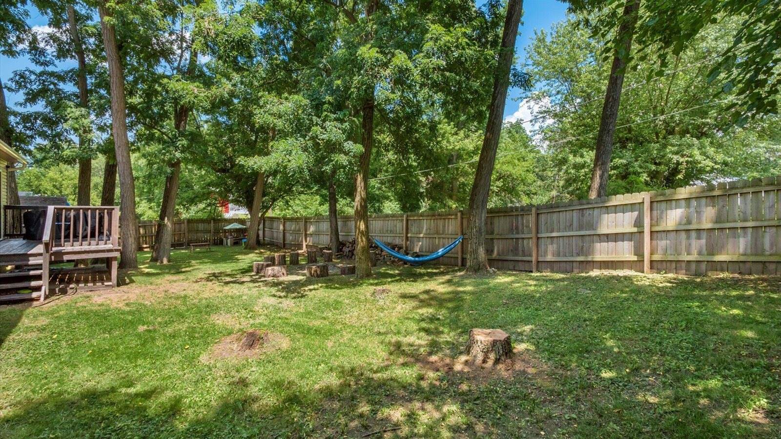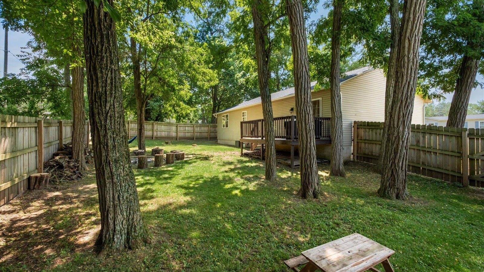 suite with its own full bath. Outside, unwind on the full deck shaded by mature trees or gather around the extra-large fire pit for s'mores and stories. Quick access to I-70 means Columbus is just a short drive away. Whether you're in the market for a year-round