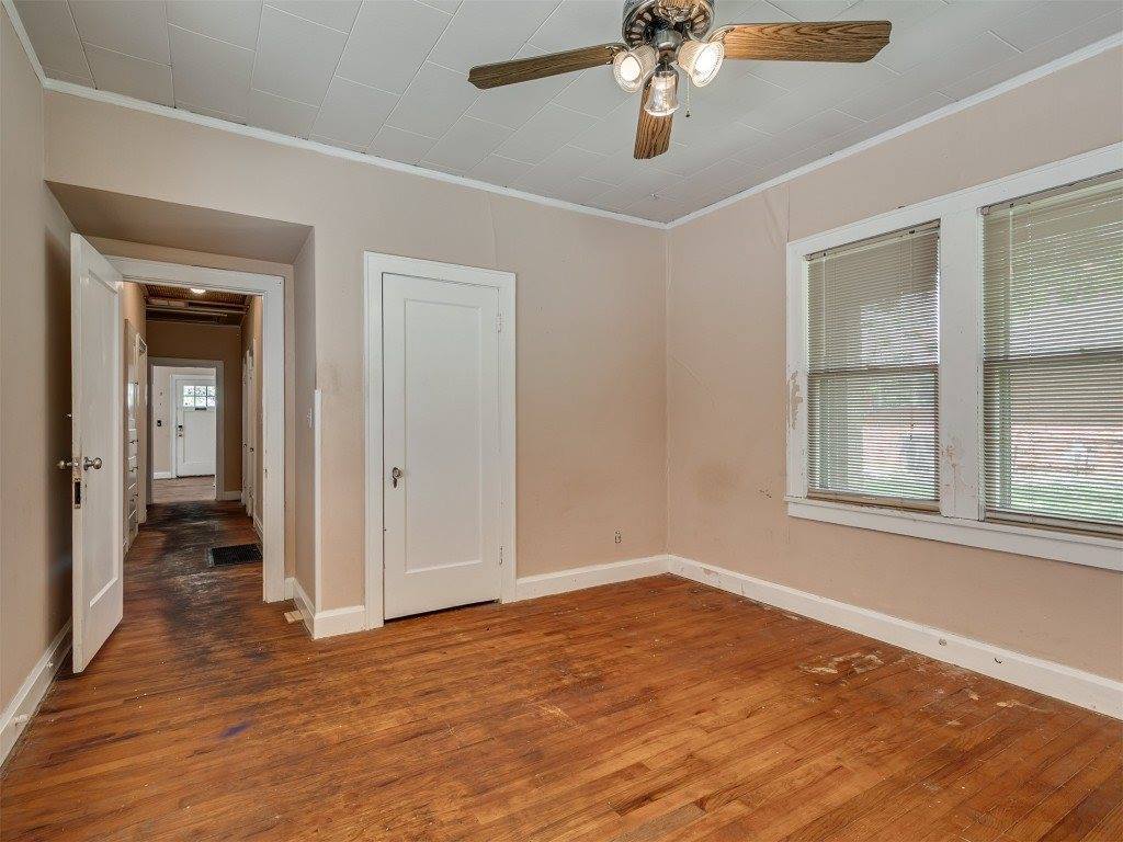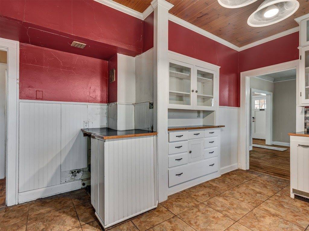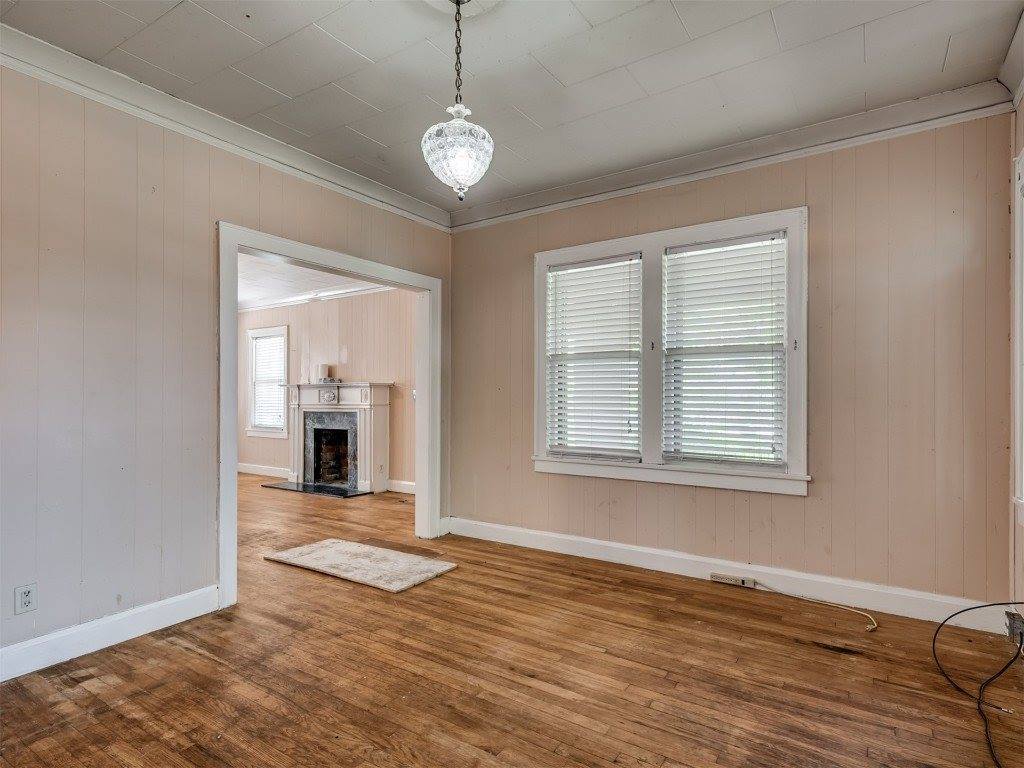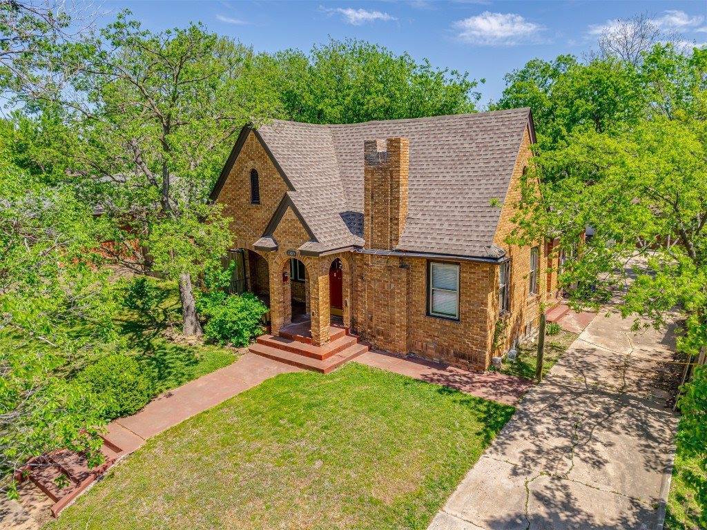 Step into timeless charm with this classic Tudor-style home. The arched front porch, gracefully supported by brick columns, offers a warm welcome and the perfect spot to enjoy peaceful front porch sitting. With a bit of TLC, this gem can be brought back to its original glory—boasting all the enduring character and craftsmanship of its era. Inside, the potential is just waiting to be rediscovered. Restore the original hardwood floors and you'll be transported to a cozy, storybook setting that once defined this beloved town. The detached garage is full of possibilities—it includes space for a bathroom and can easily be transformed into a workshop, studio, or creative retreat. It also houses the storm cellar, which, with some thoughtful upgrades, could serve as a secure and comfortable haven during Oklahoma’s unpredictable weather. Come explore the charm, imagine the possibilities, and see if this property could be your next chapter.