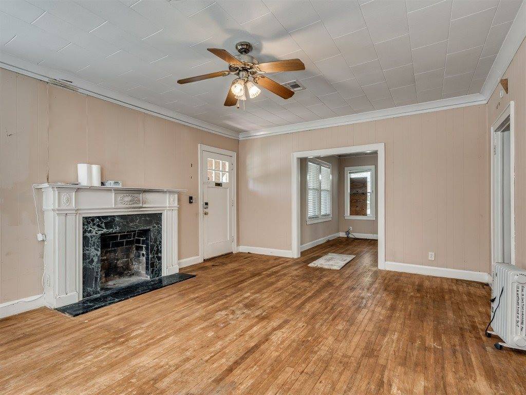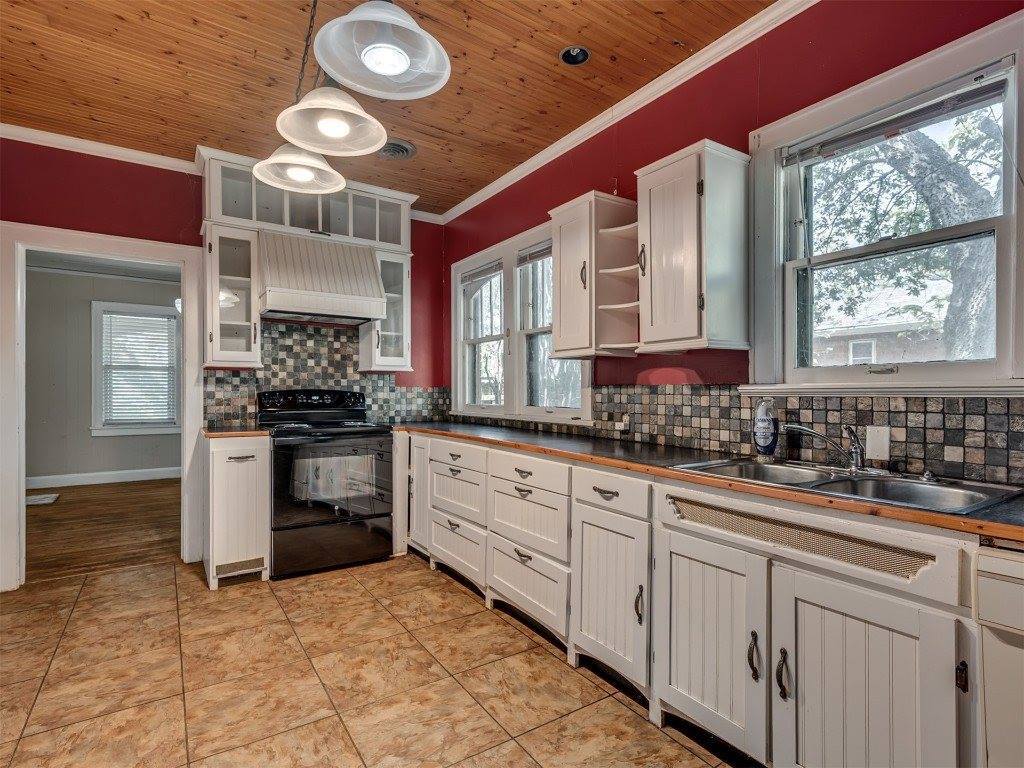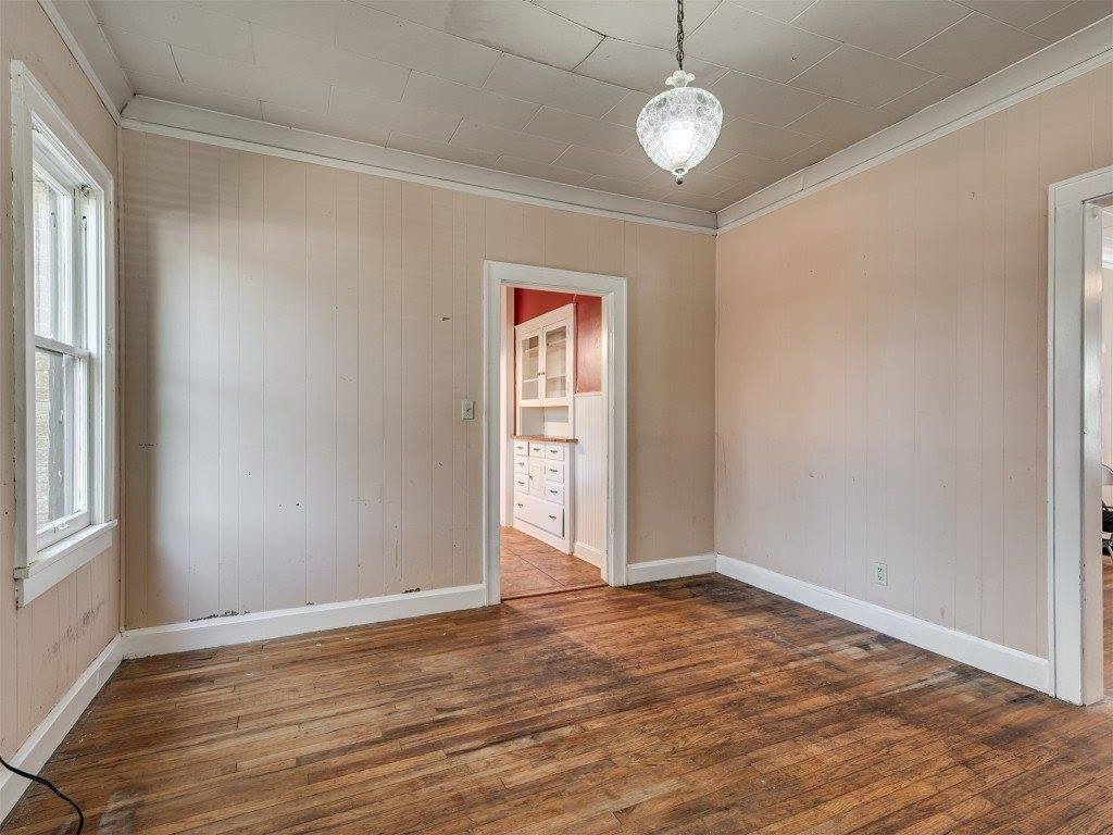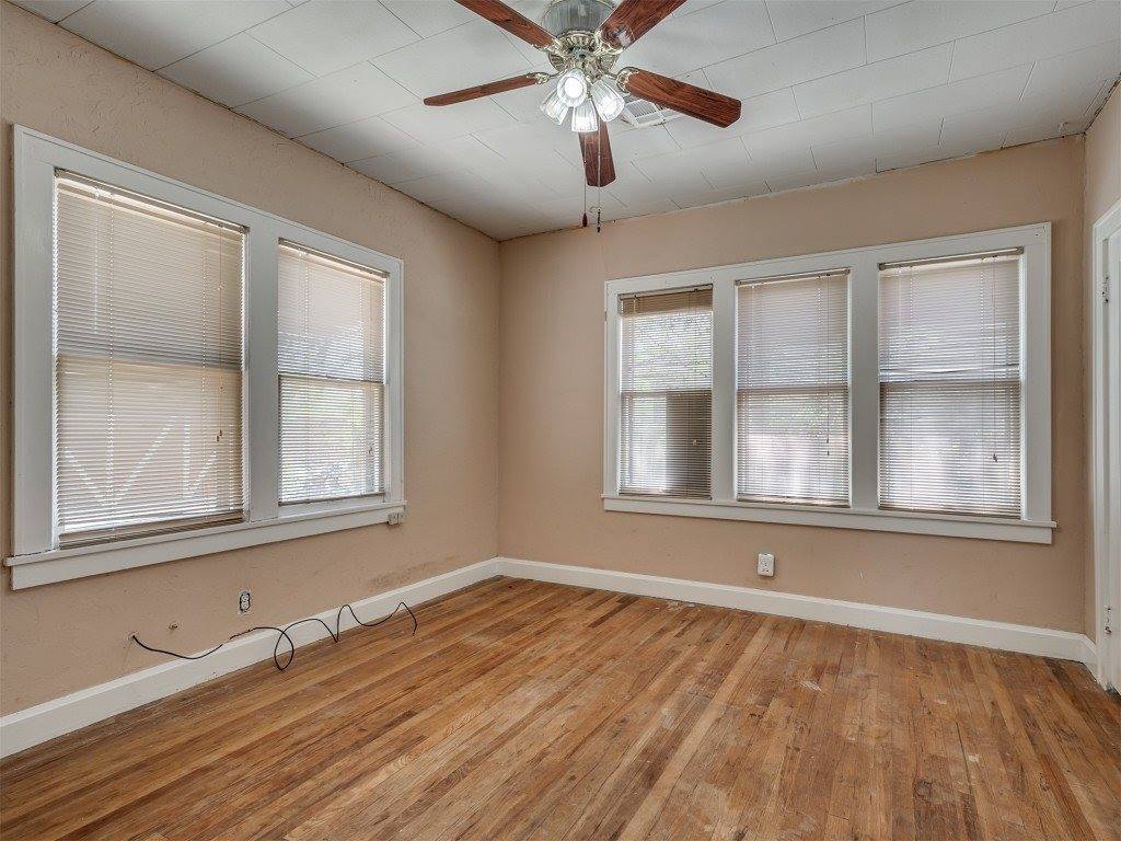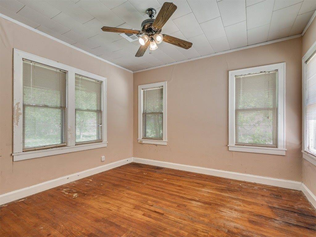 Step into timeless charm with this classic Tudor-style home. The arched front porch, gracefully supported by brick columns, offers a warm welcome and the perfect spot to enjoy peaceful front porch sitting. With a bit of TLC, this gem can be brought back to its original glory—boasting all the enduring character and craftsmanship of its era. Inside, the potential is just waiting to be rediscovered. Restore the original hardwood floors and you'll be transported to a cozy, storybook setting that once defined this beloved town. The detached garage is full of possibilities—it includes space for a bathroom and can easily be transformed into a workshop, studio, or creative retreat. It also houses the storm cellar, which, with some thoughtful upgrades, could serve as a secure and comfortable haven during Oklahoma’s unpredictable weather. Come explore the charm, imagine the possibilities, and see if this property could be your next chapter.